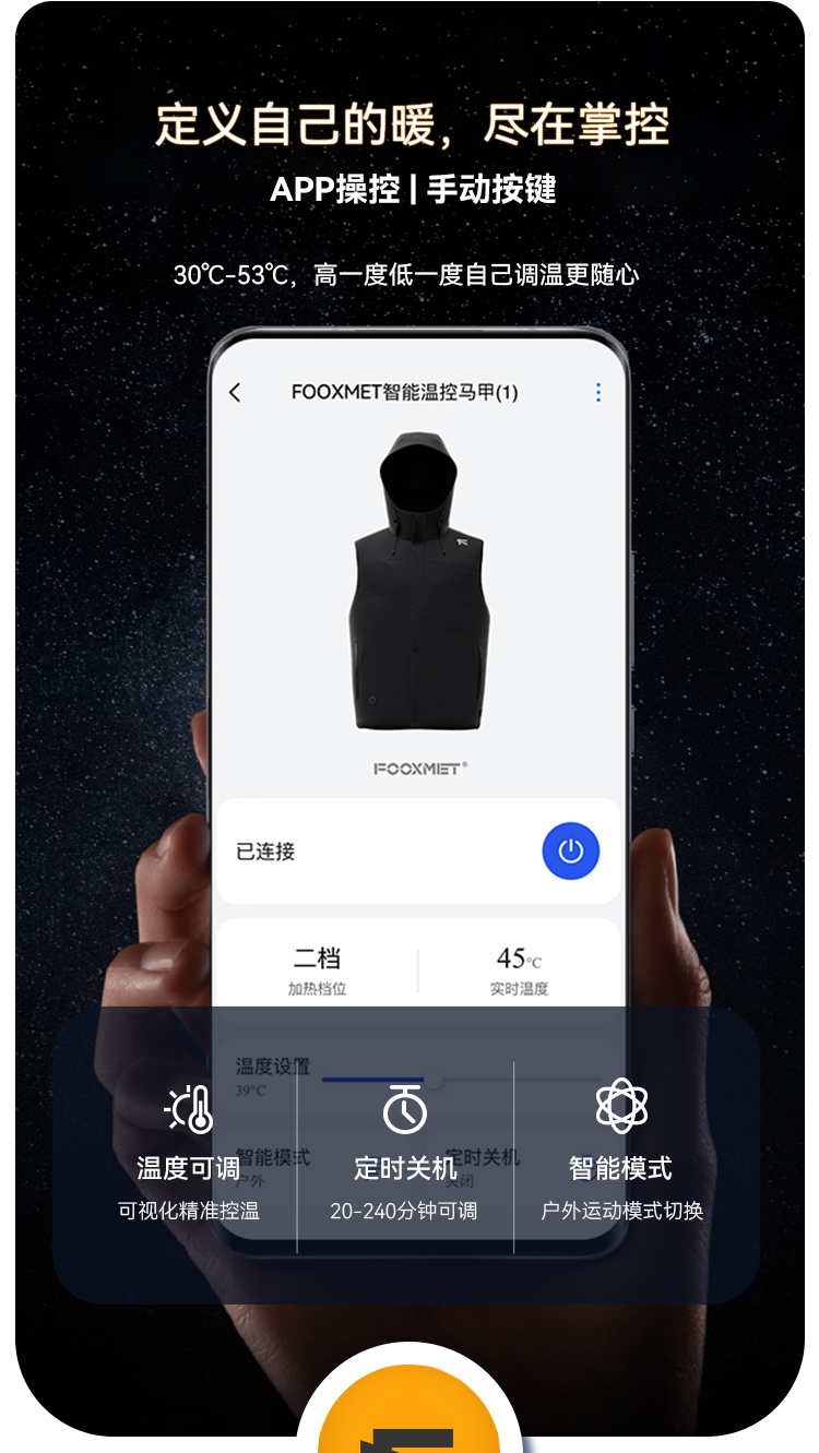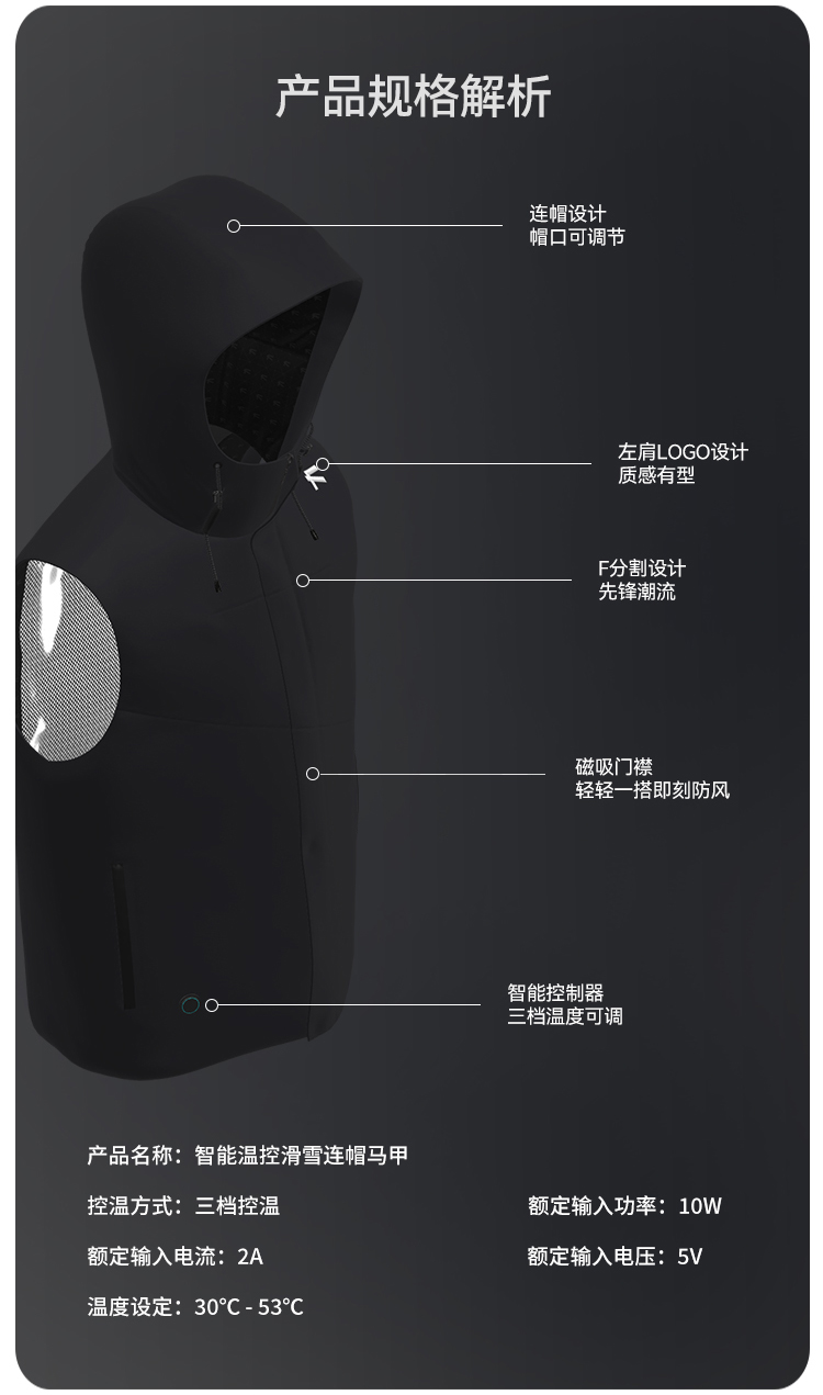 智能温控连帽马甲