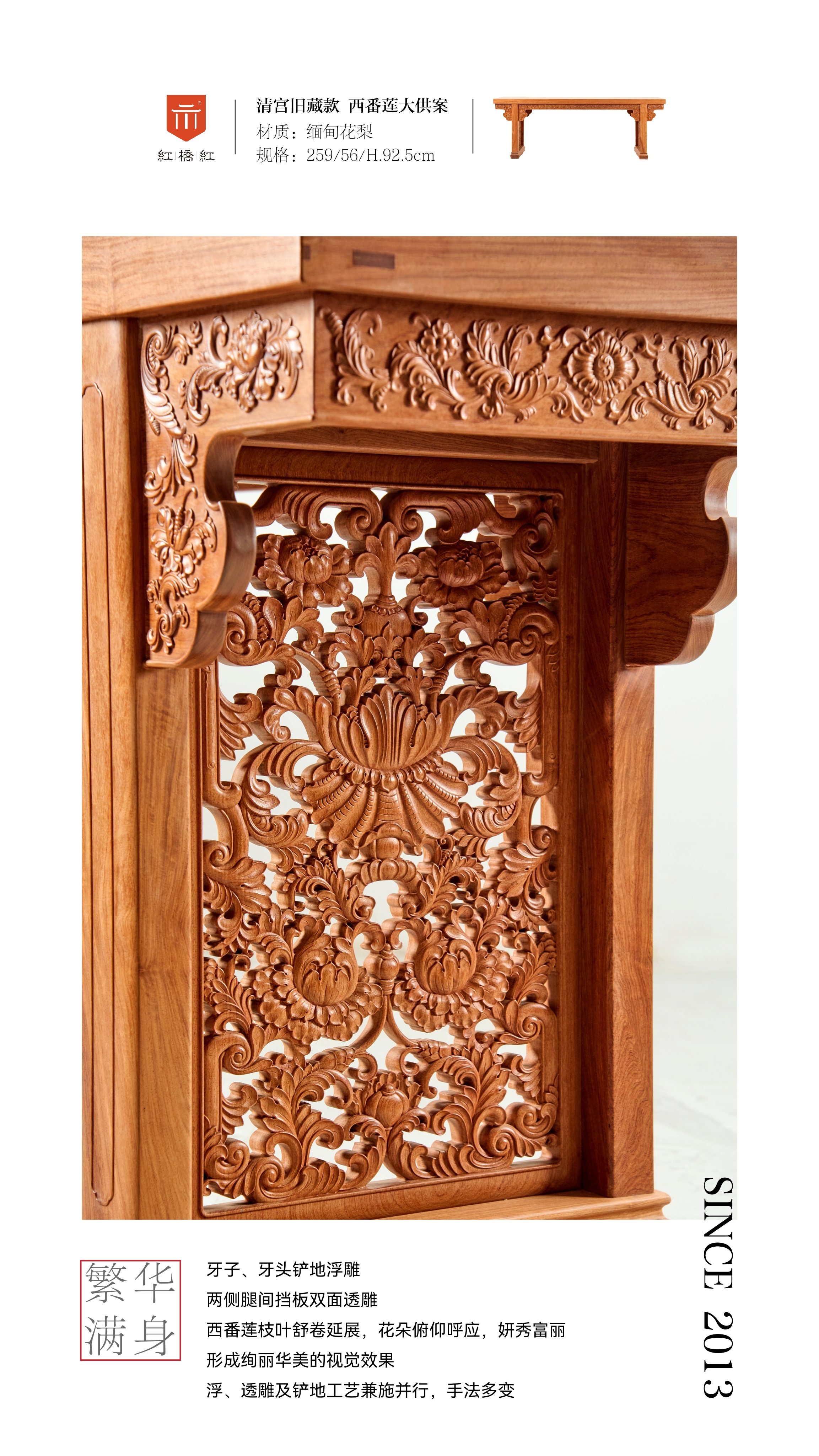 正宗缅甸花梨(大果紫檀)制作,传统榫卯工艺,零白皮零拼补,烘干严谨。