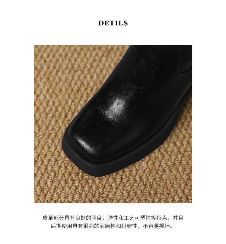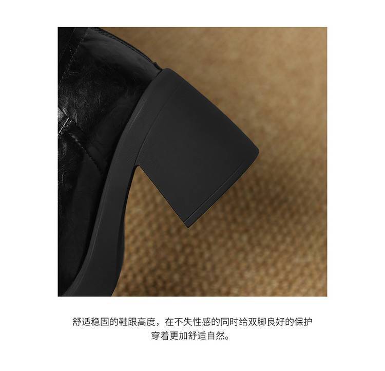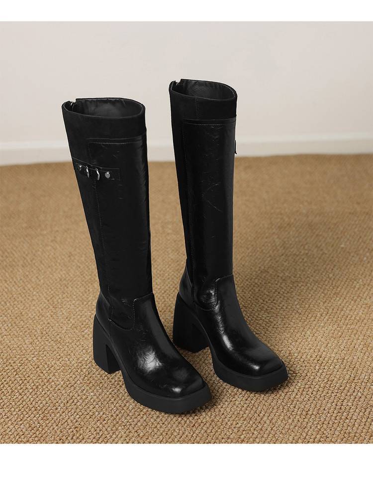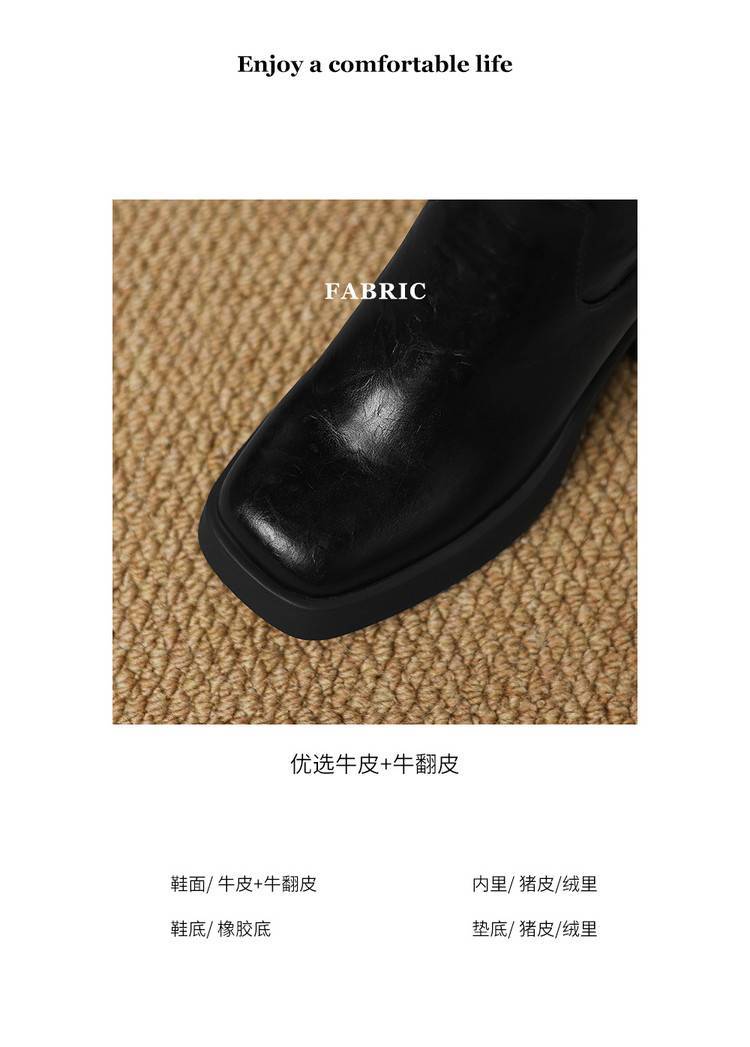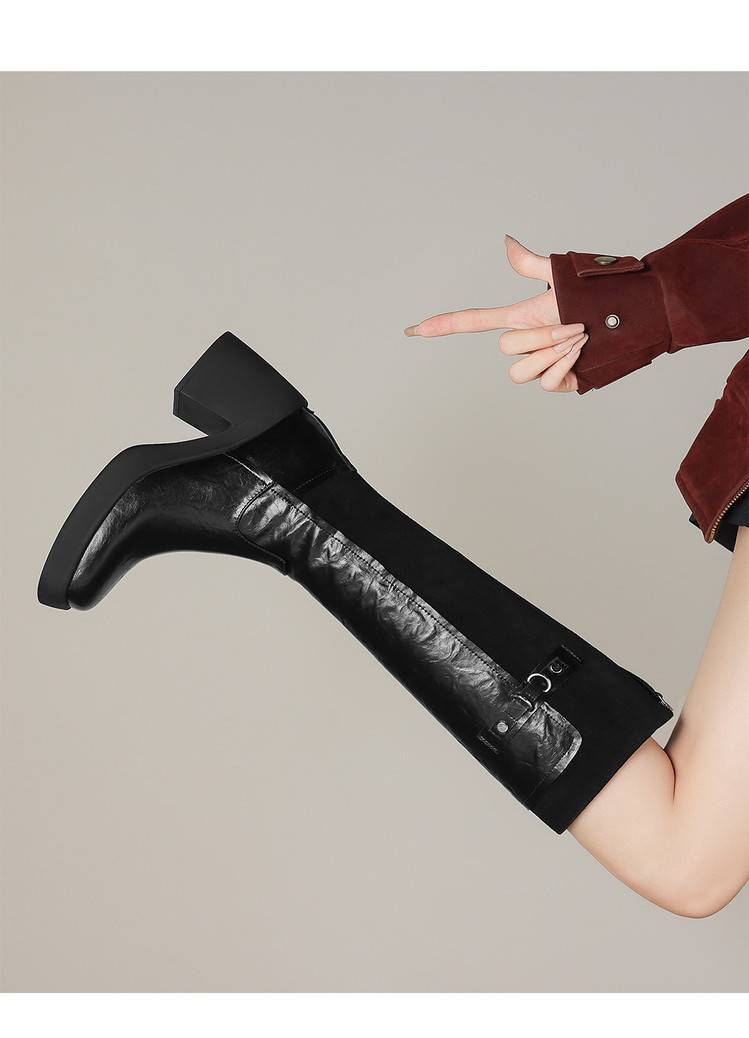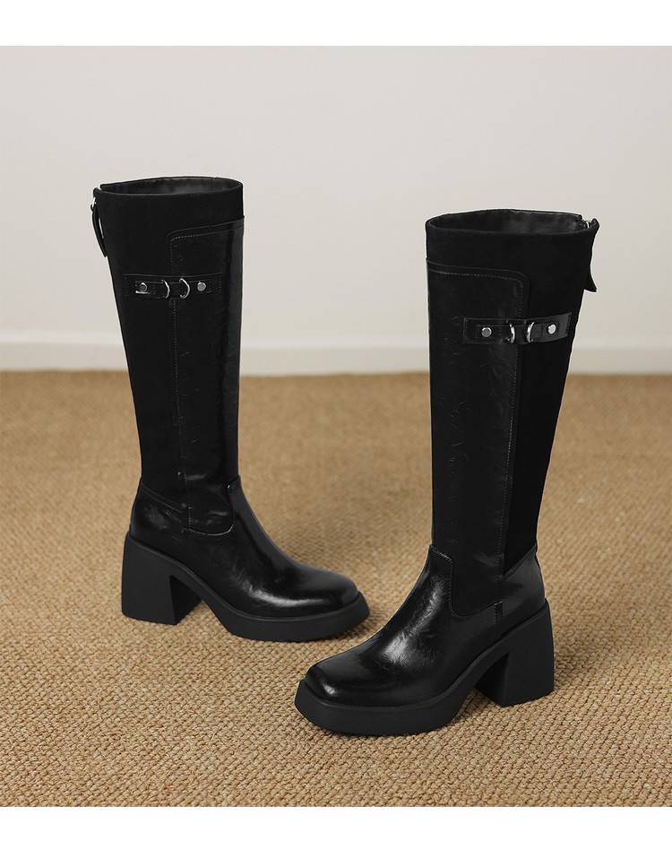 【预售5天】软厚底时装靴真皮圆头骑士靴女棕色百搭粗跟长筒靴CFE&C6500