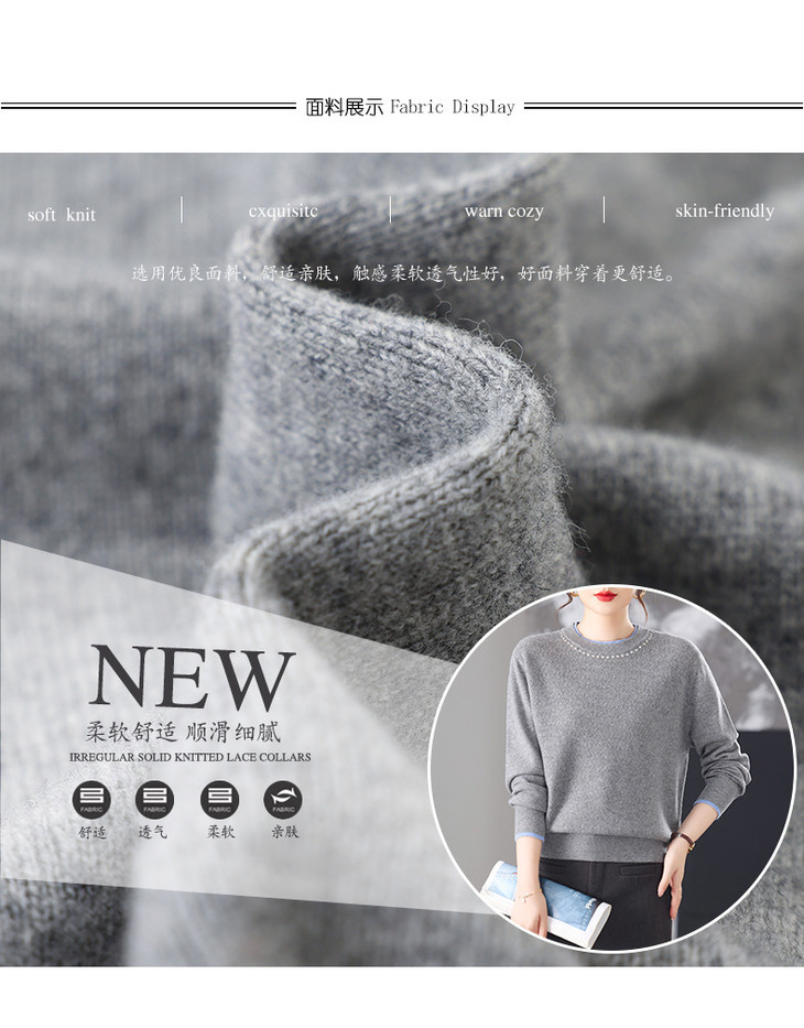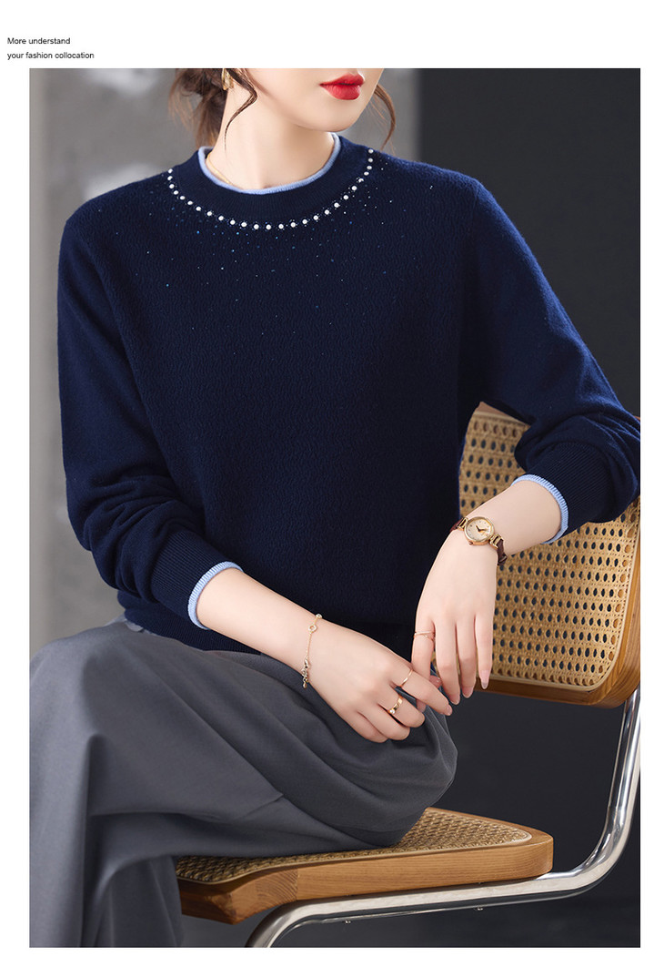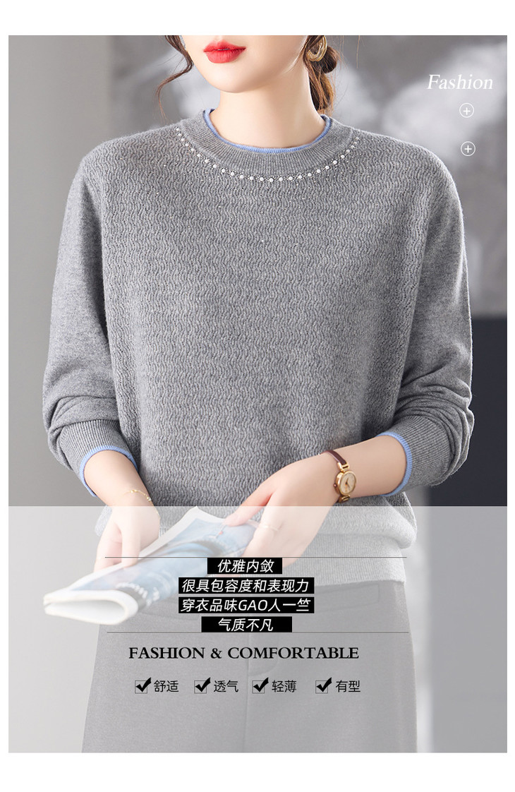 高级感100纯羊毛衫,钉珠短款绵羊毛打底衫上衣服CC-10-6903
