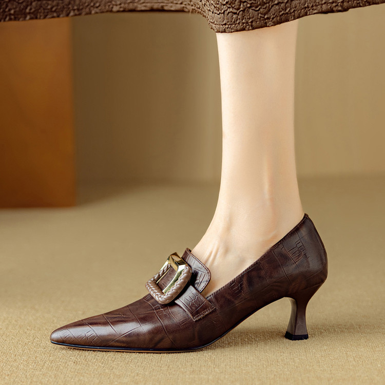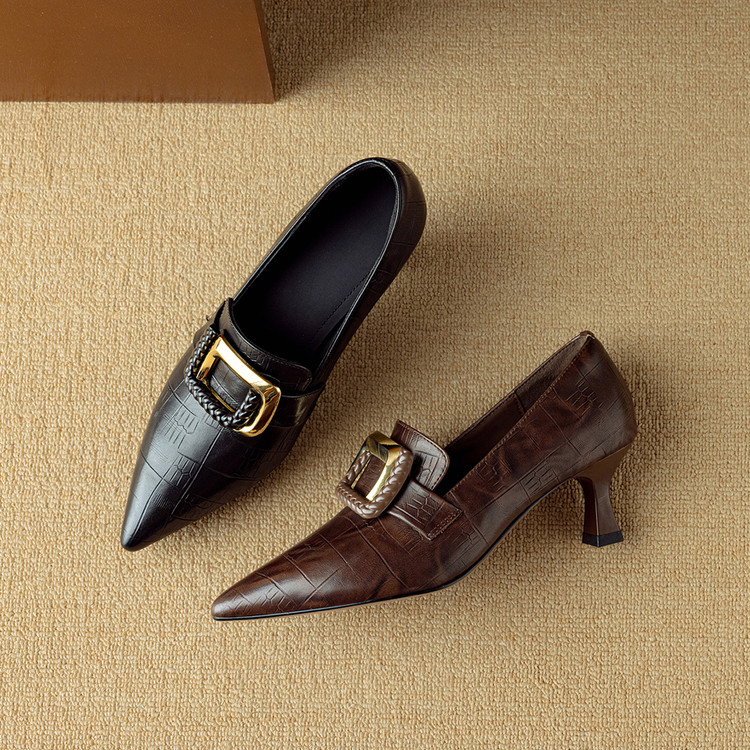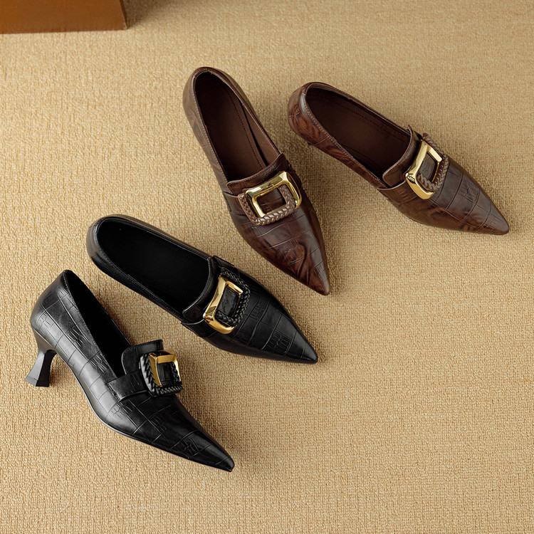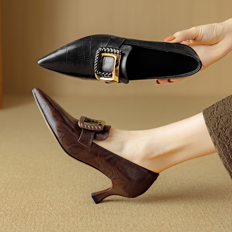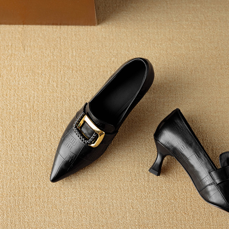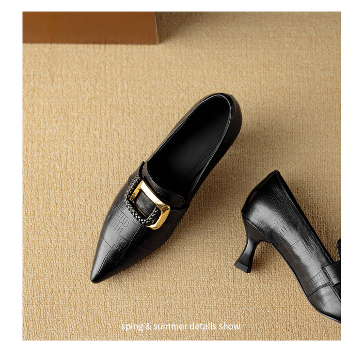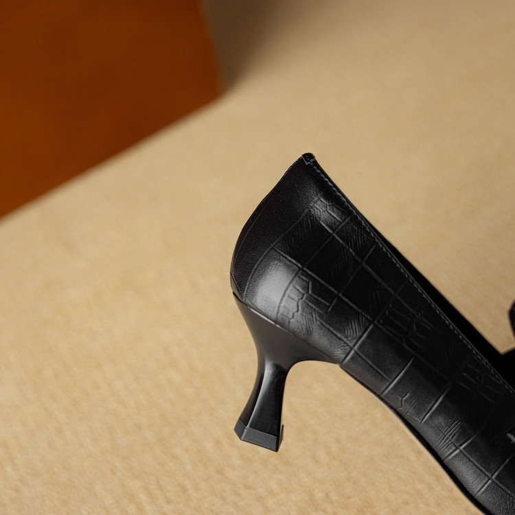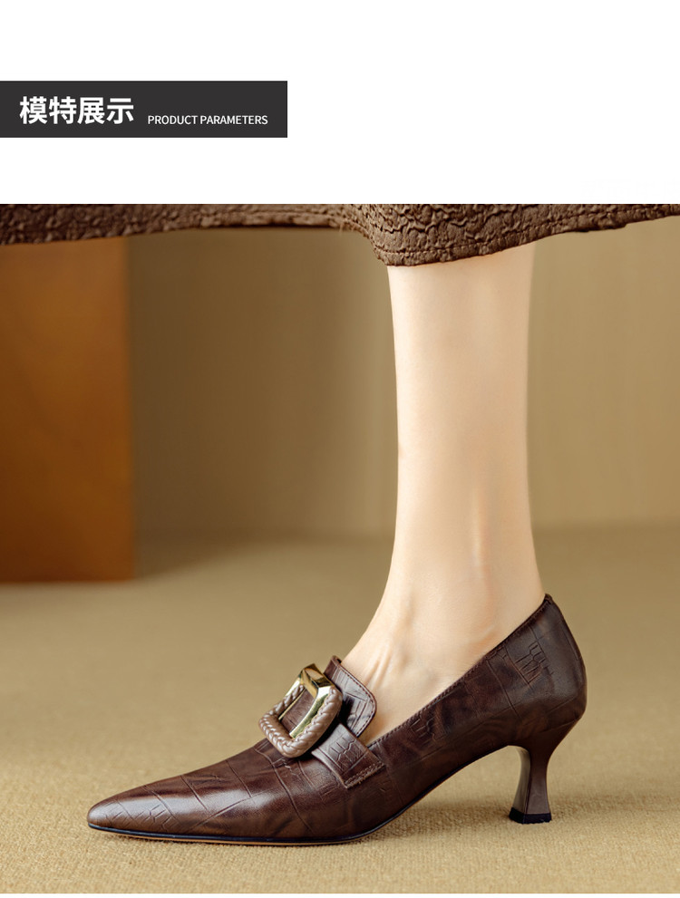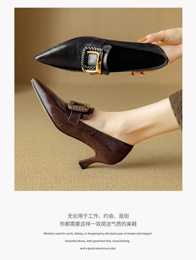 【预售5天】法式尖头细跟时装单鞋女秋冬新款真皮压花气质高跟深口鞋DB&M6562