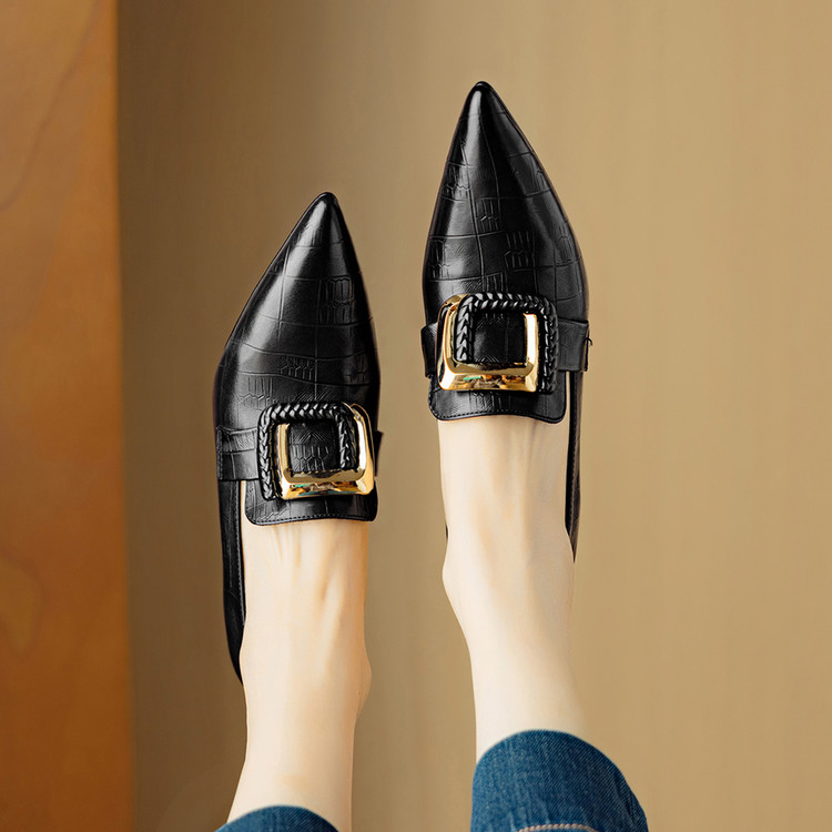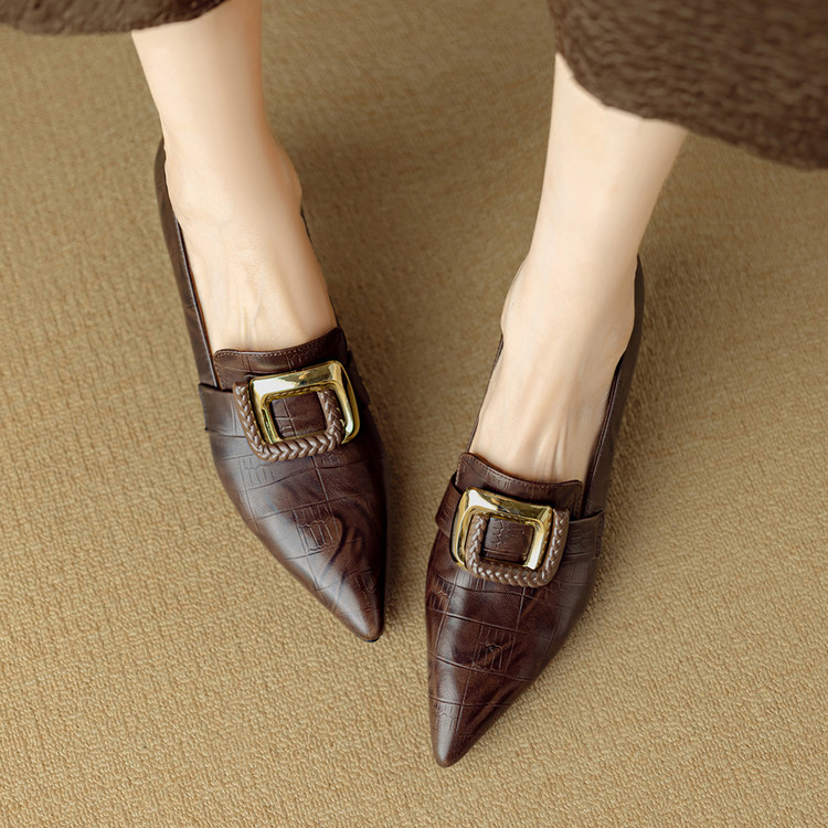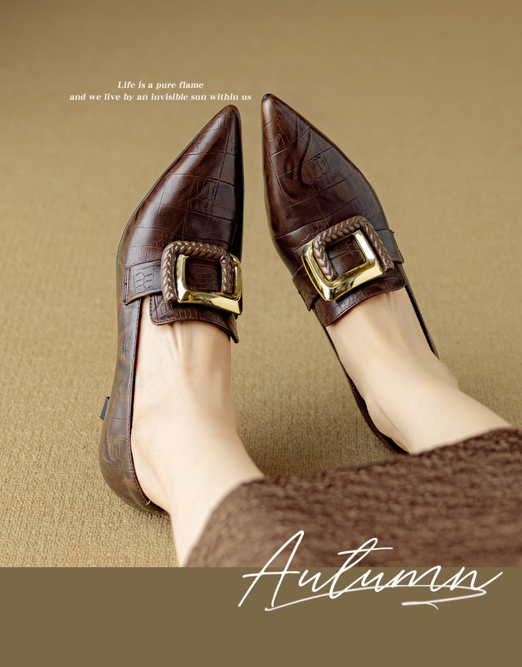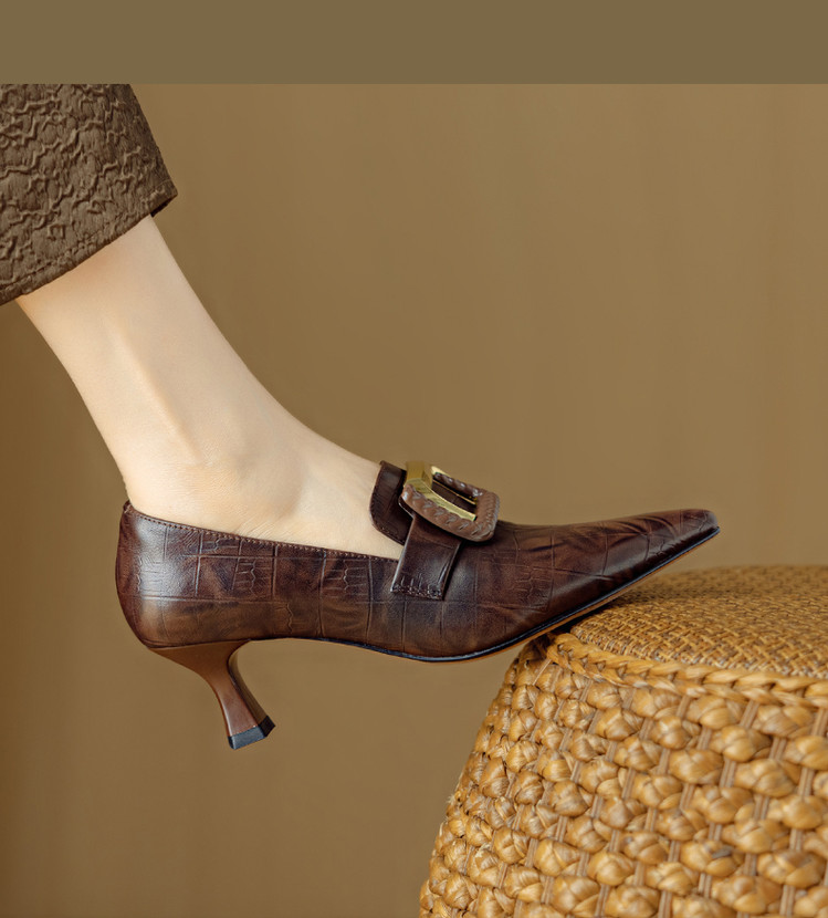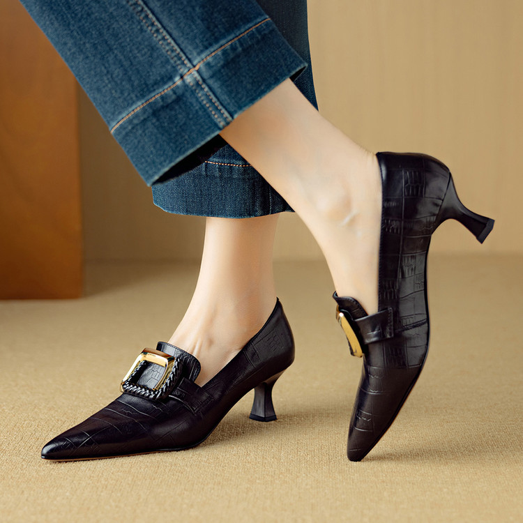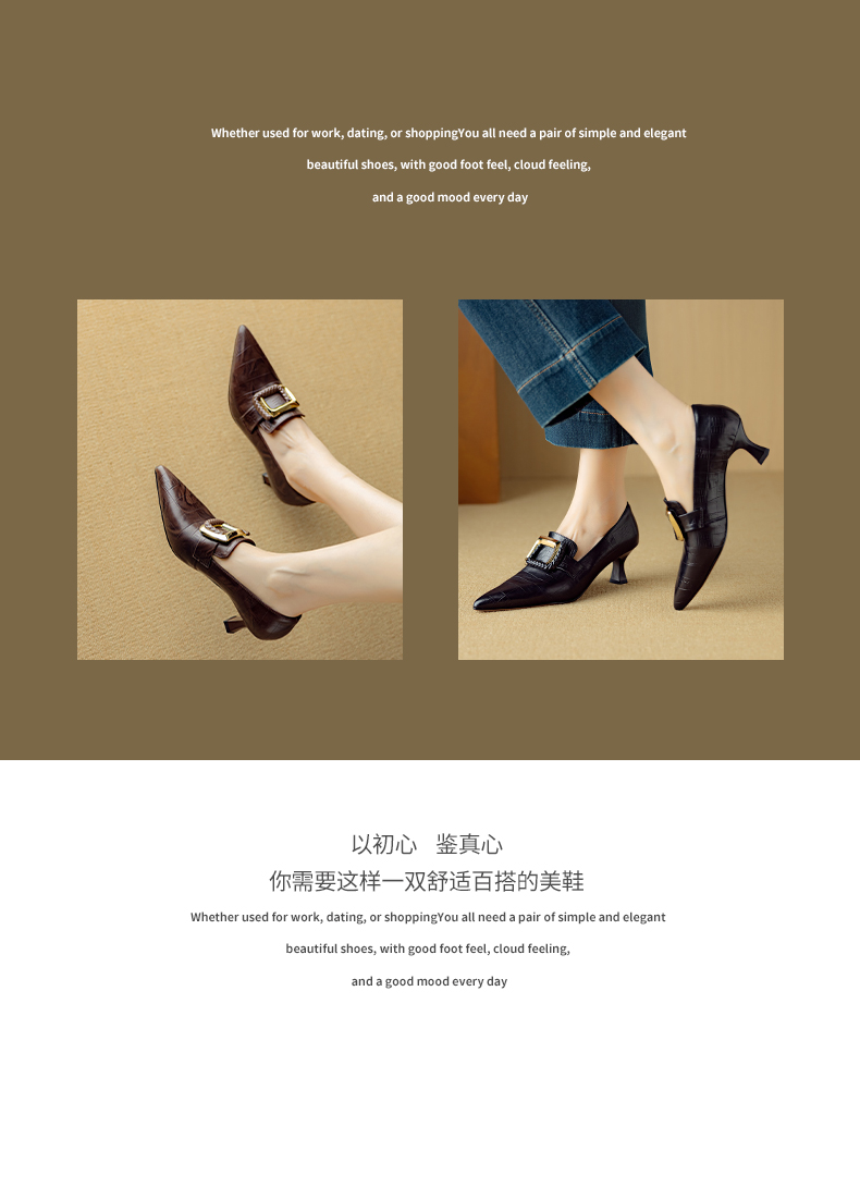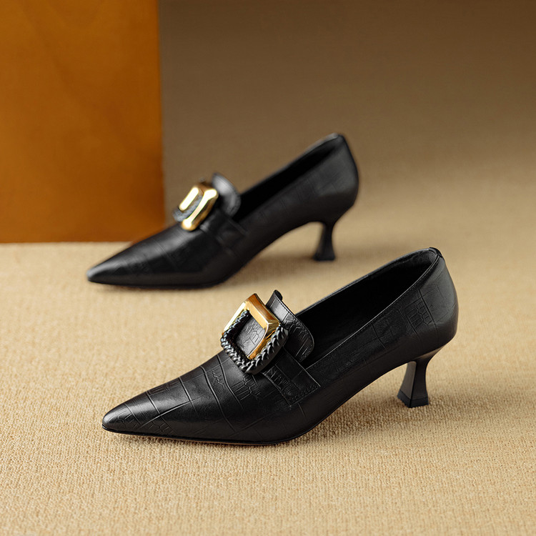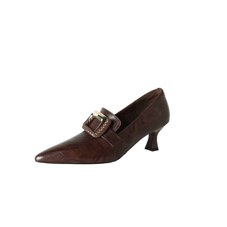 【预售5天】法式尖头细跟时装单鞋女秋冬新款真皮压花气质高跟深口鞋DB&M6562
