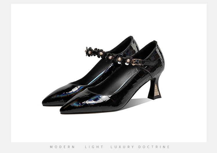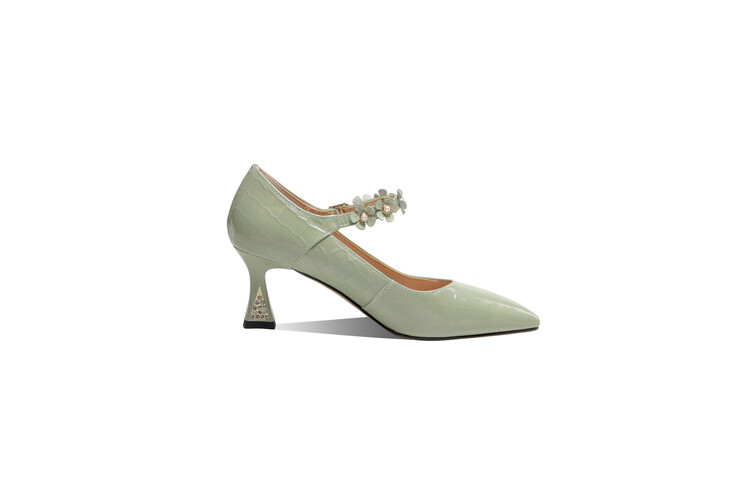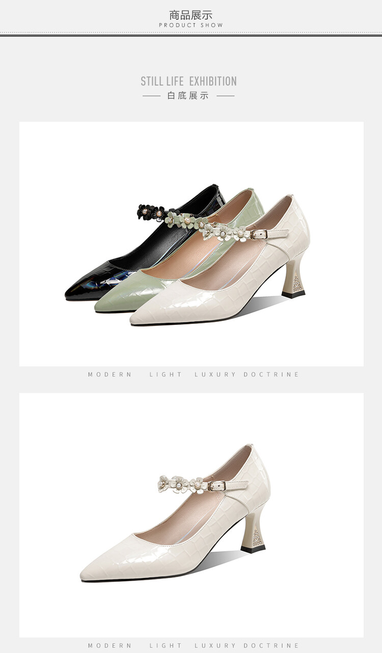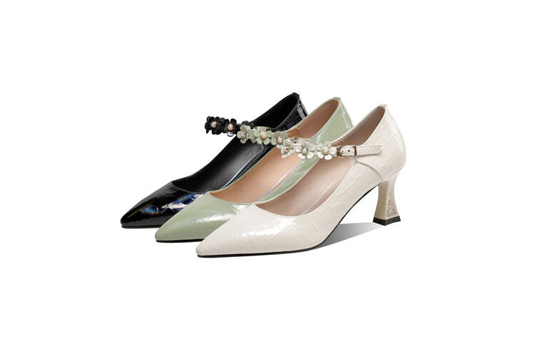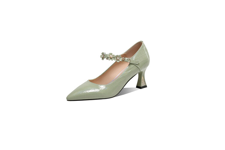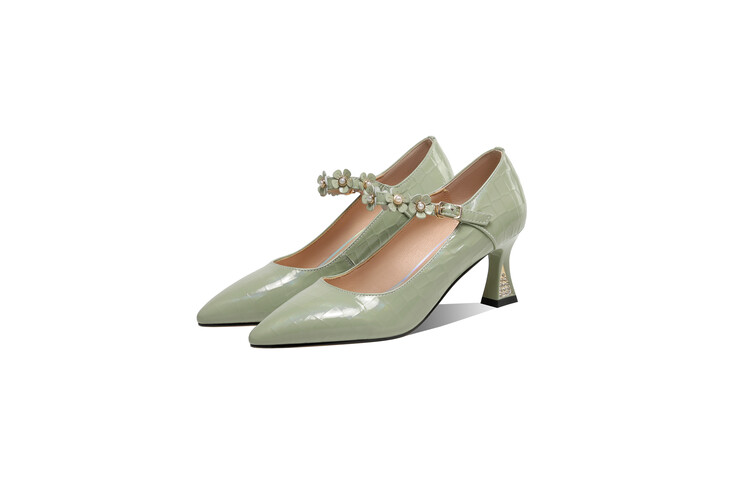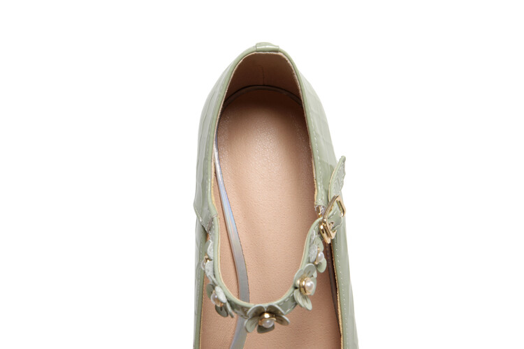 【货 号】016【鞋面材质】牛漆皮【内里材质】超细纤维【跟 高】6.5cm【鞋 底】橡胶底【颜 色】米白色、绿色、黑色【尺 码】33-40 (大小定制不退换)