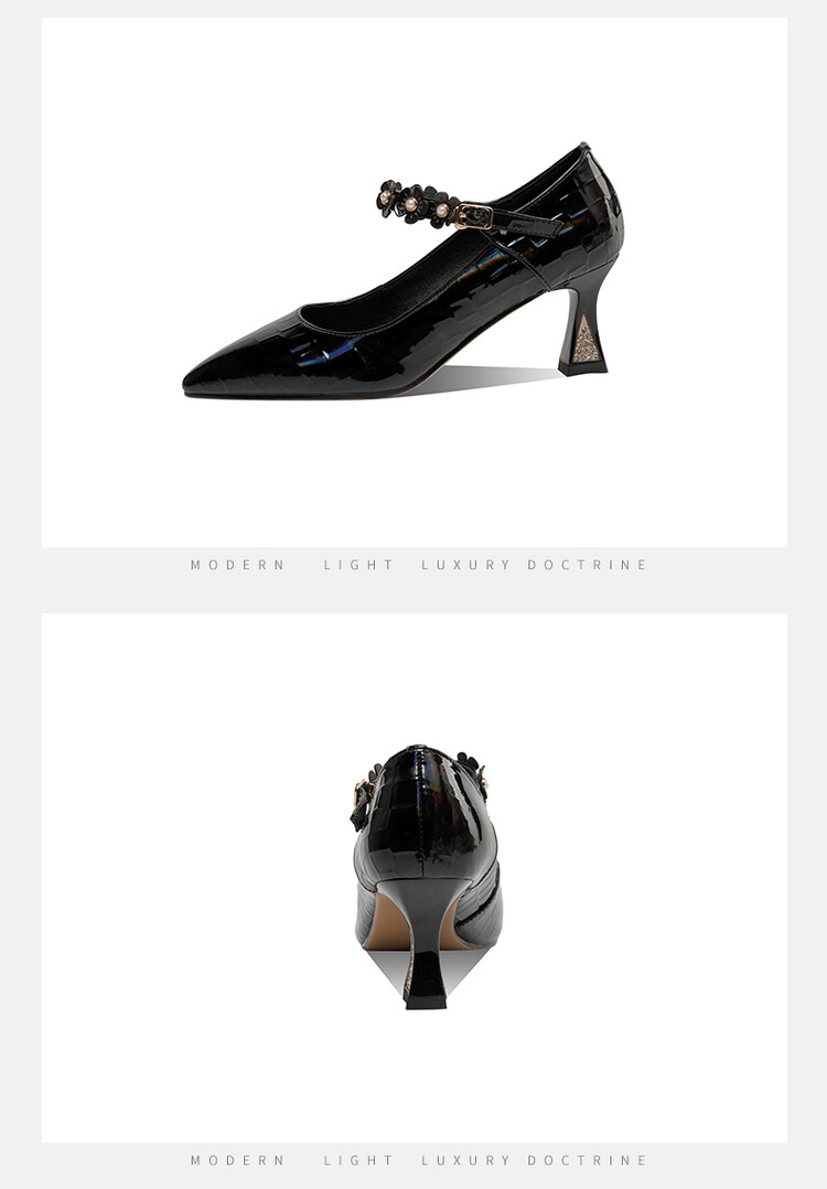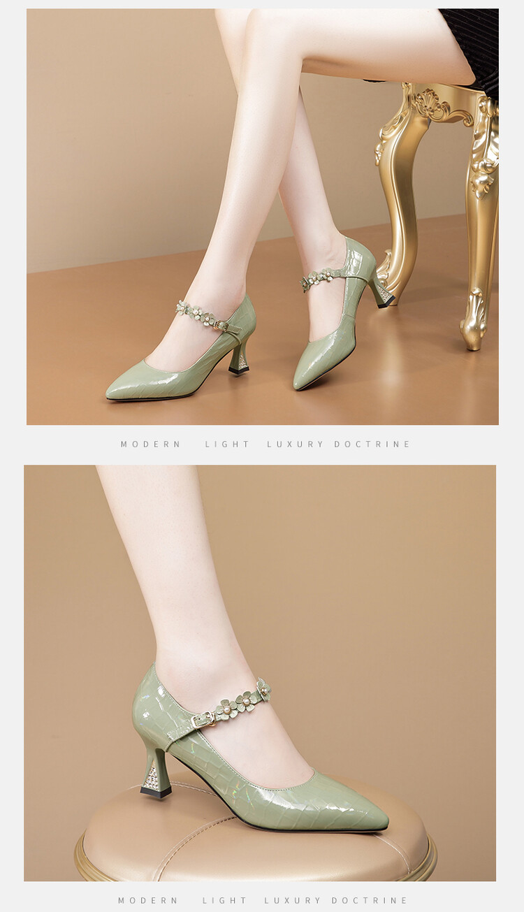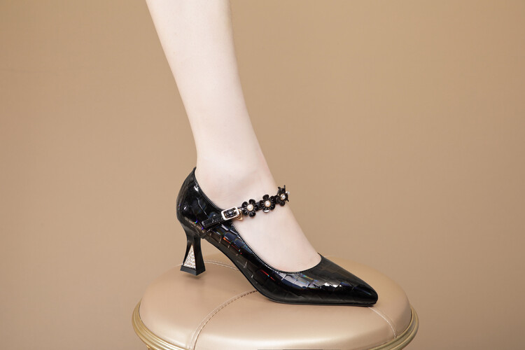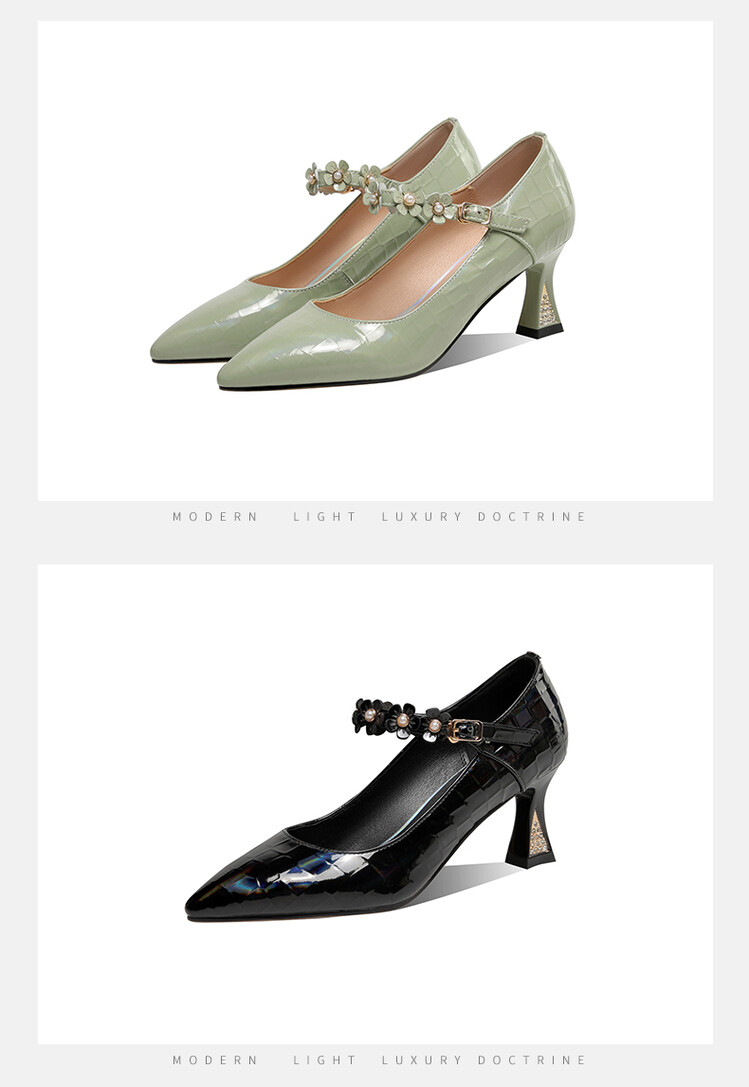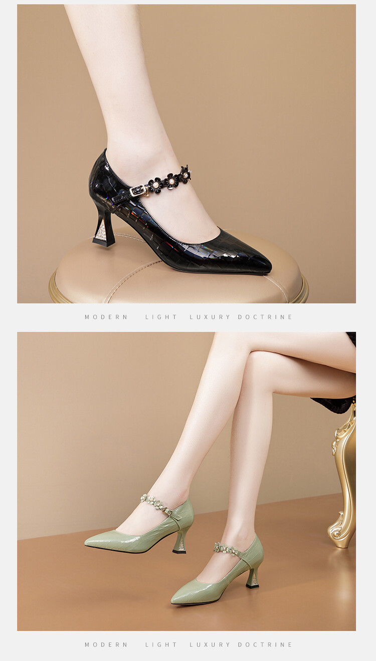 【货 号】016【鞋面材质】牛漆皮【内里材质】超细纤维【跟 高】6.5cm【鞋 底】橡胶底【颜 色】米白色、绿色、黑色【尺 码】33-40 (大小定制不退换)