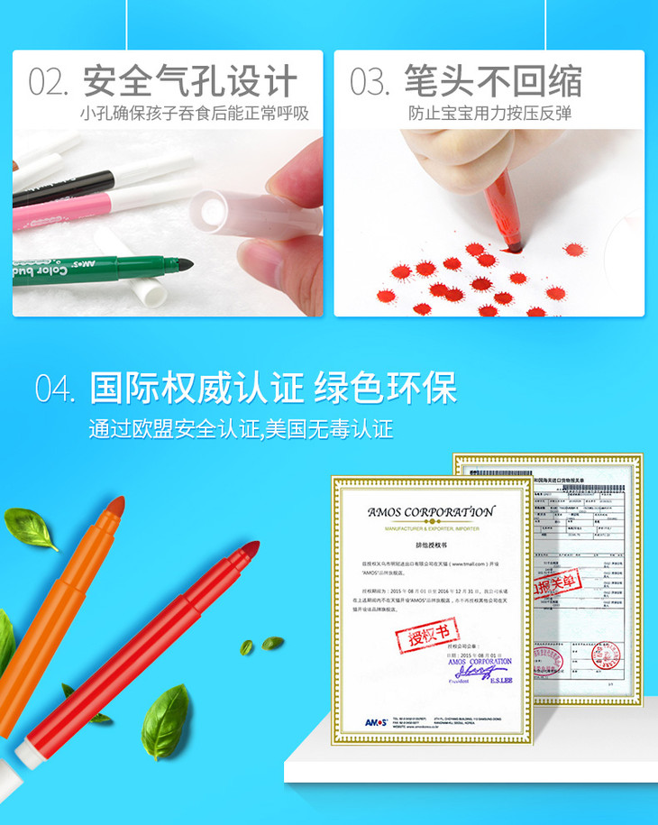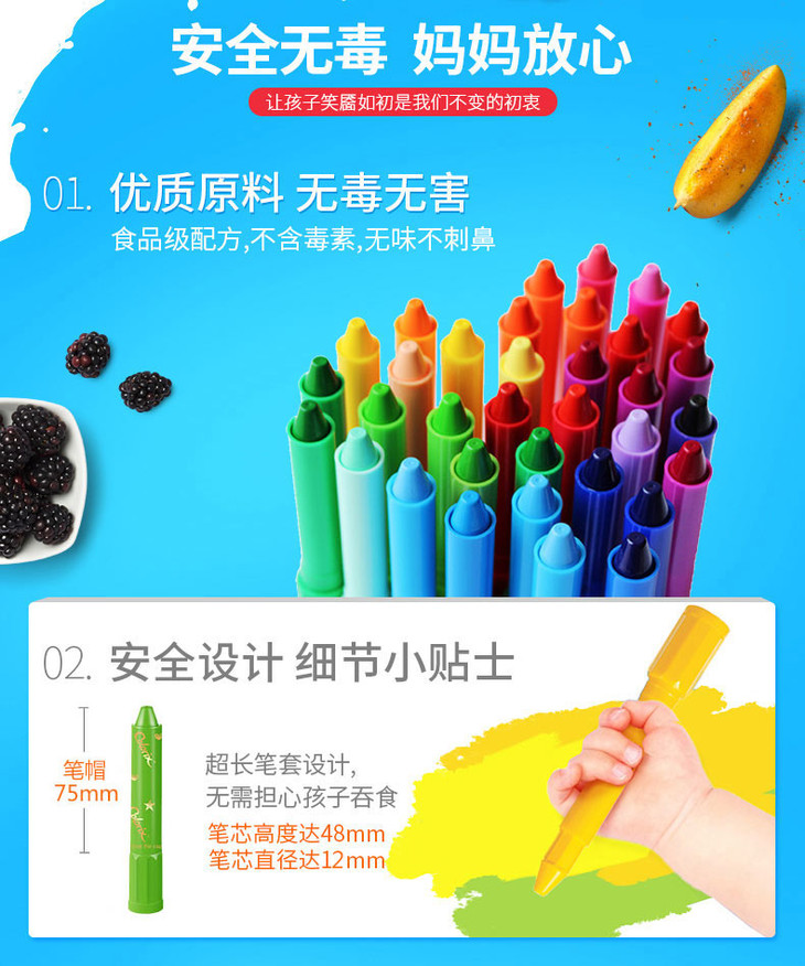 韩国进口AMOS24色粗杆蜡笔+12色水彩笔赠送填图册