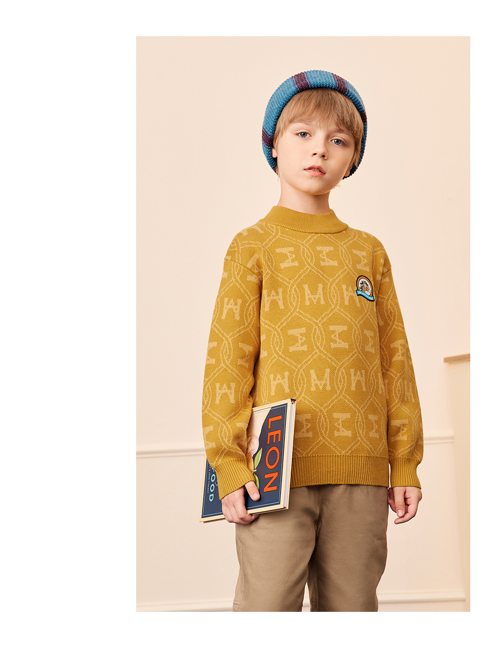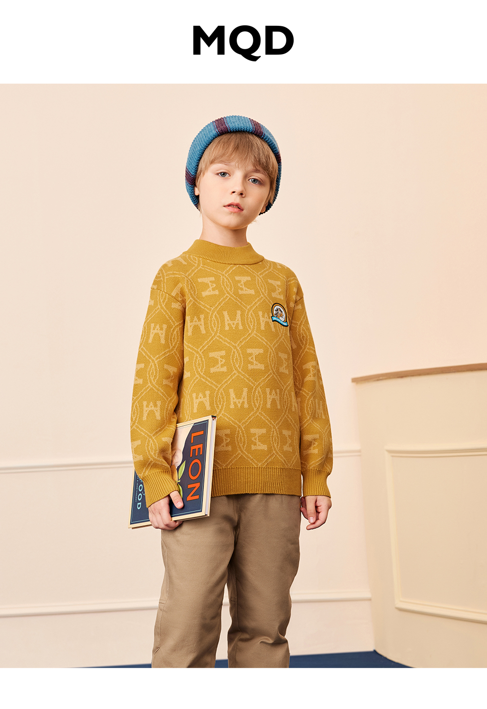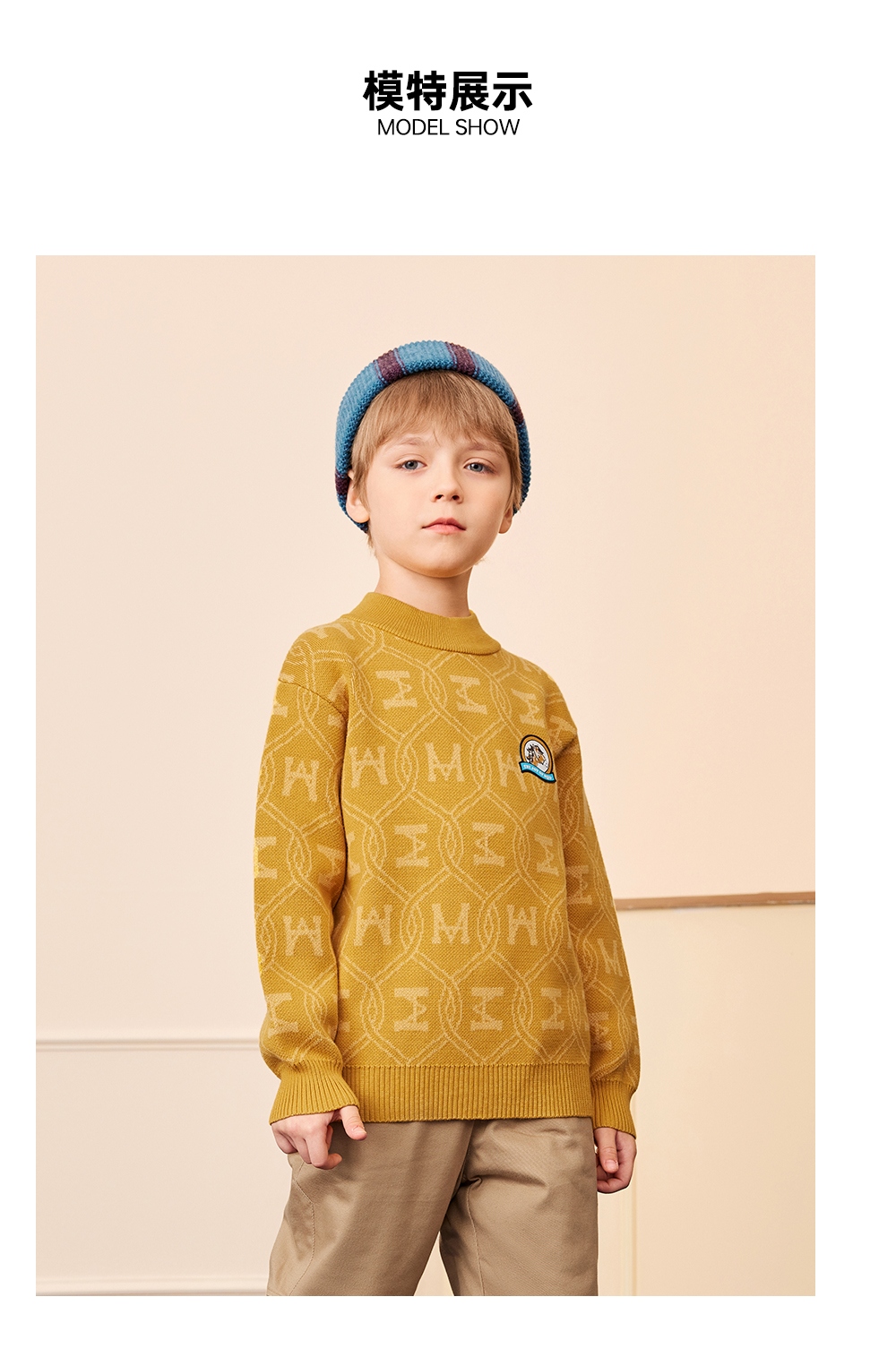 【秒2】【MQD】男童时尚满版印花休闲半高领针织衫