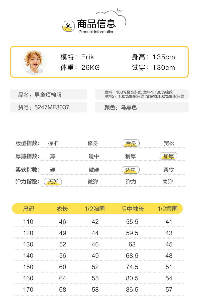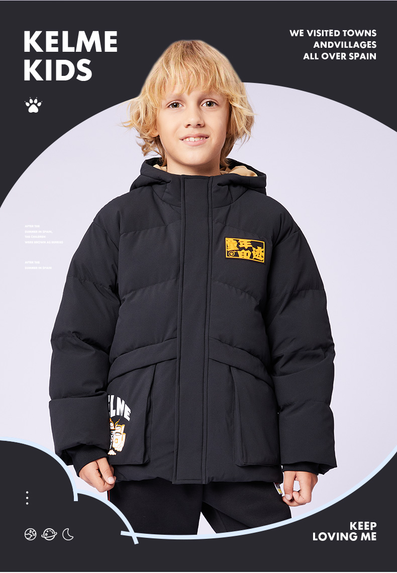 KIDS卡尔美冬新款男童棉袄棉服加厚运动休闲外套