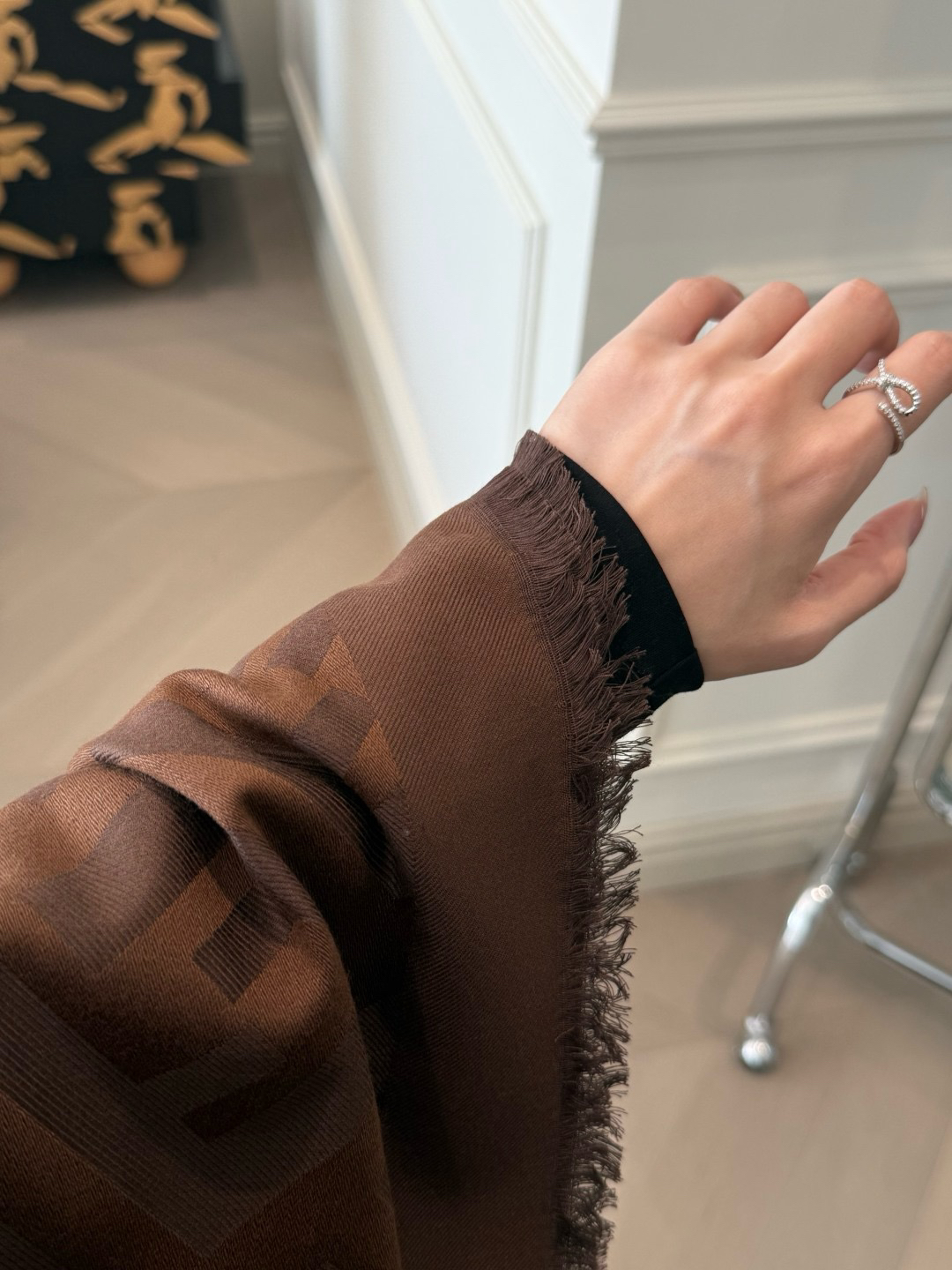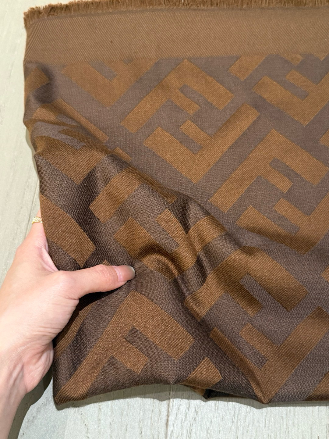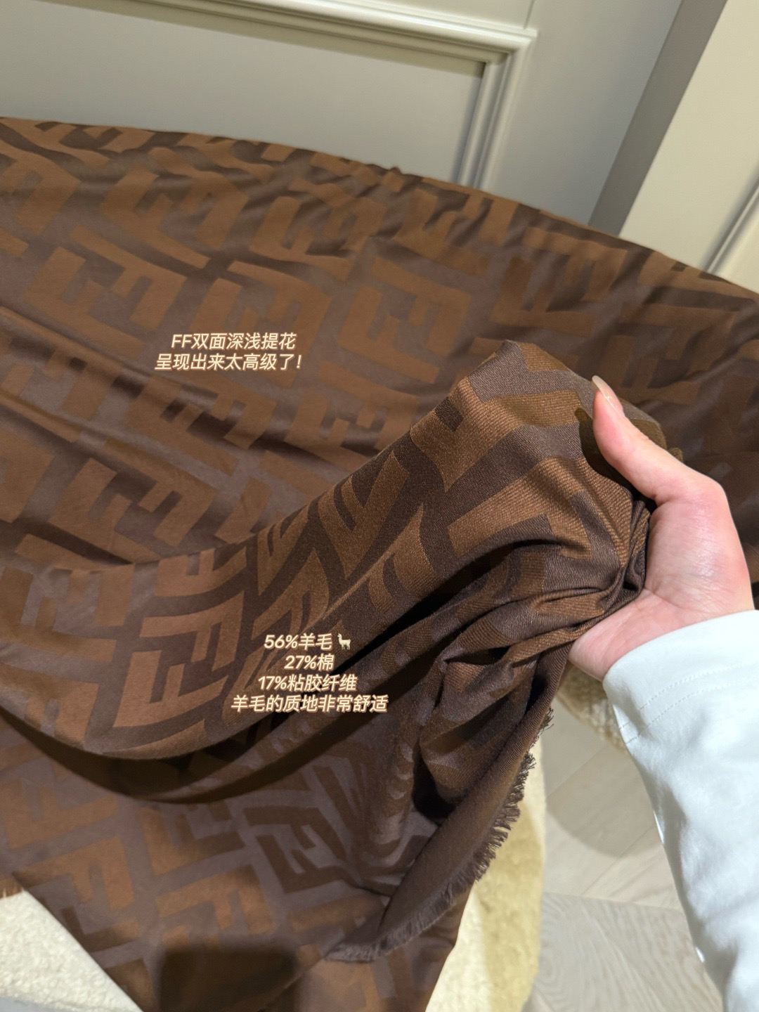 边缘流苏 底部有logo 若隐若现字母 一眼就是fendi!