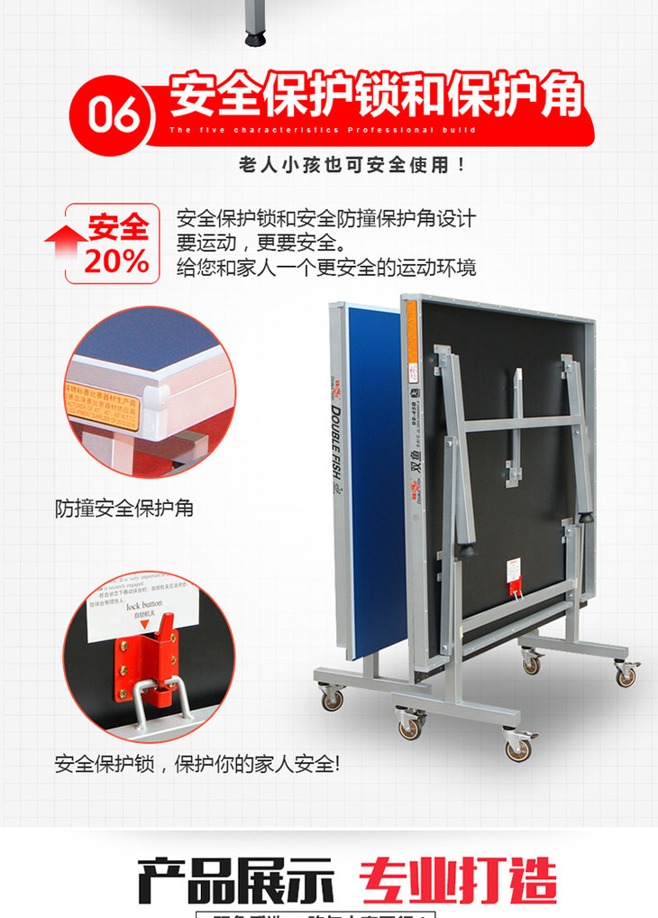 | 产品说明: | 台脚使用单折式钢管支架,边框为高强度钢框,适用于国际比赛使用,是45届世界乒乓球比赛用台 |