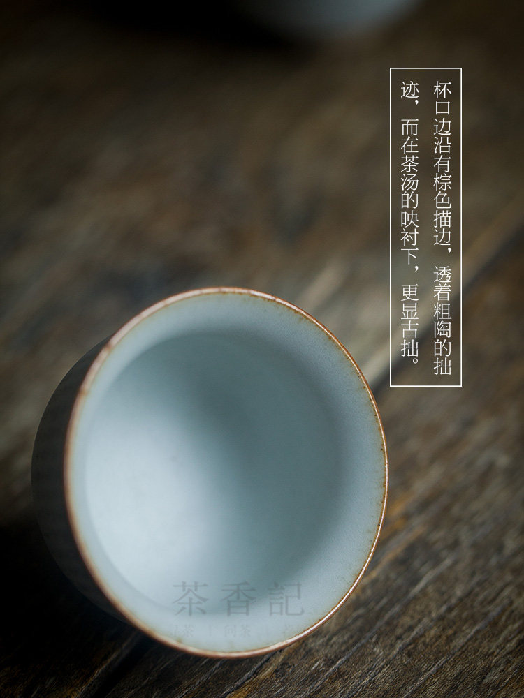 杯口边沿有棕色描边,透着粗陶的拙迹,