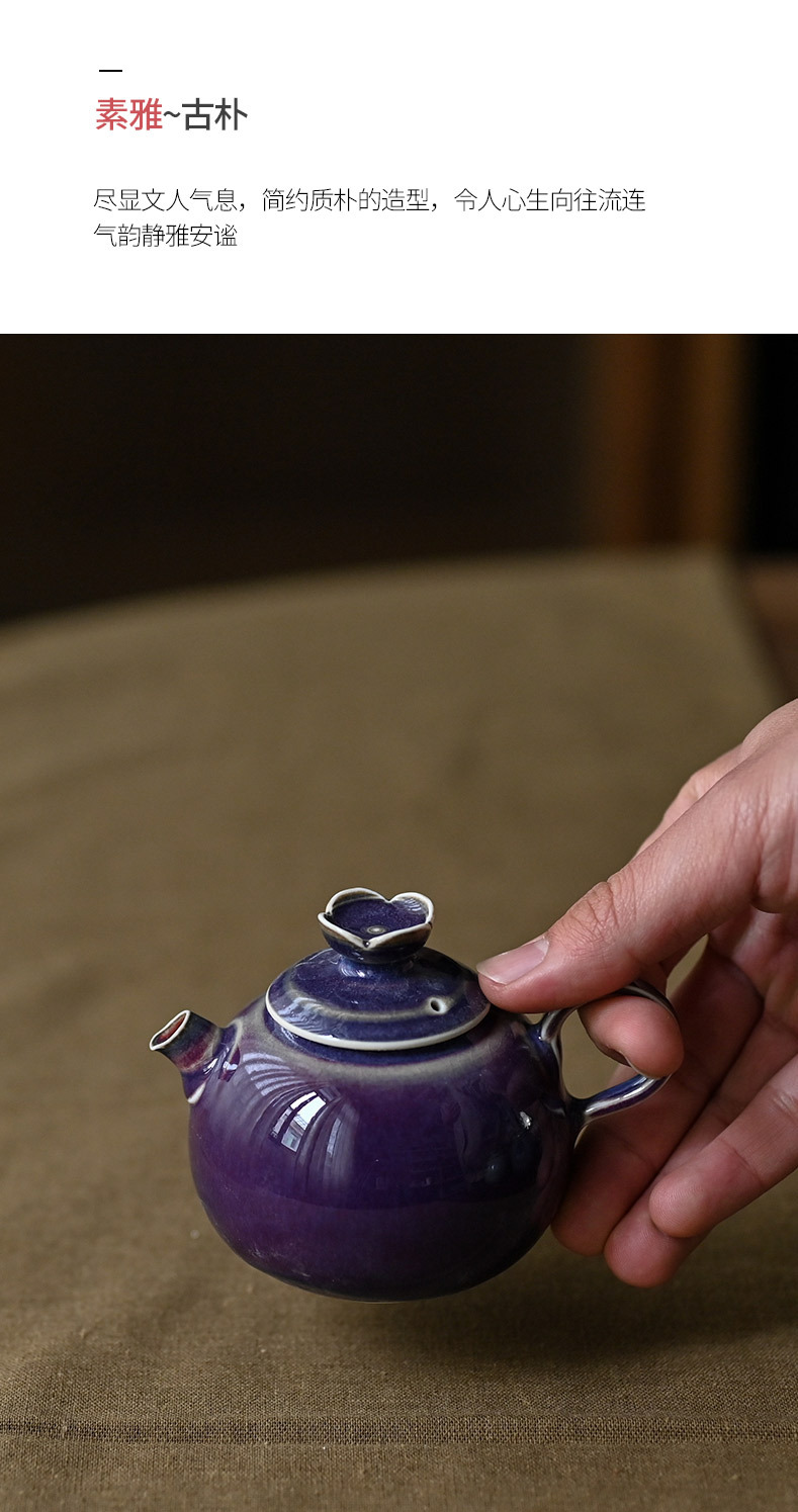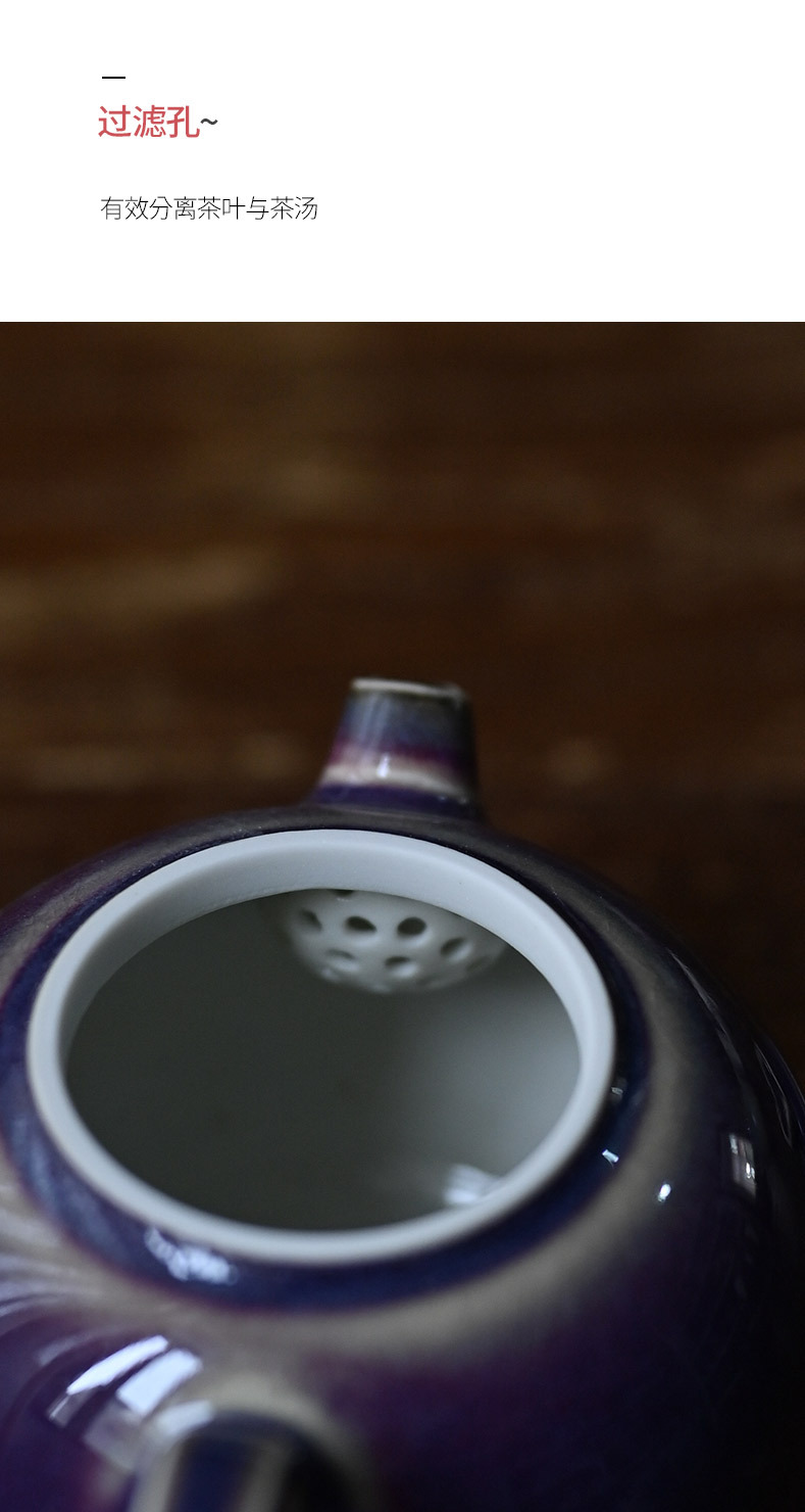 「景德镇手工钧瓷小茶壶」高温原矿窑变釉 白瓷球孔茶壶 家用陶瓷泡茶小壶