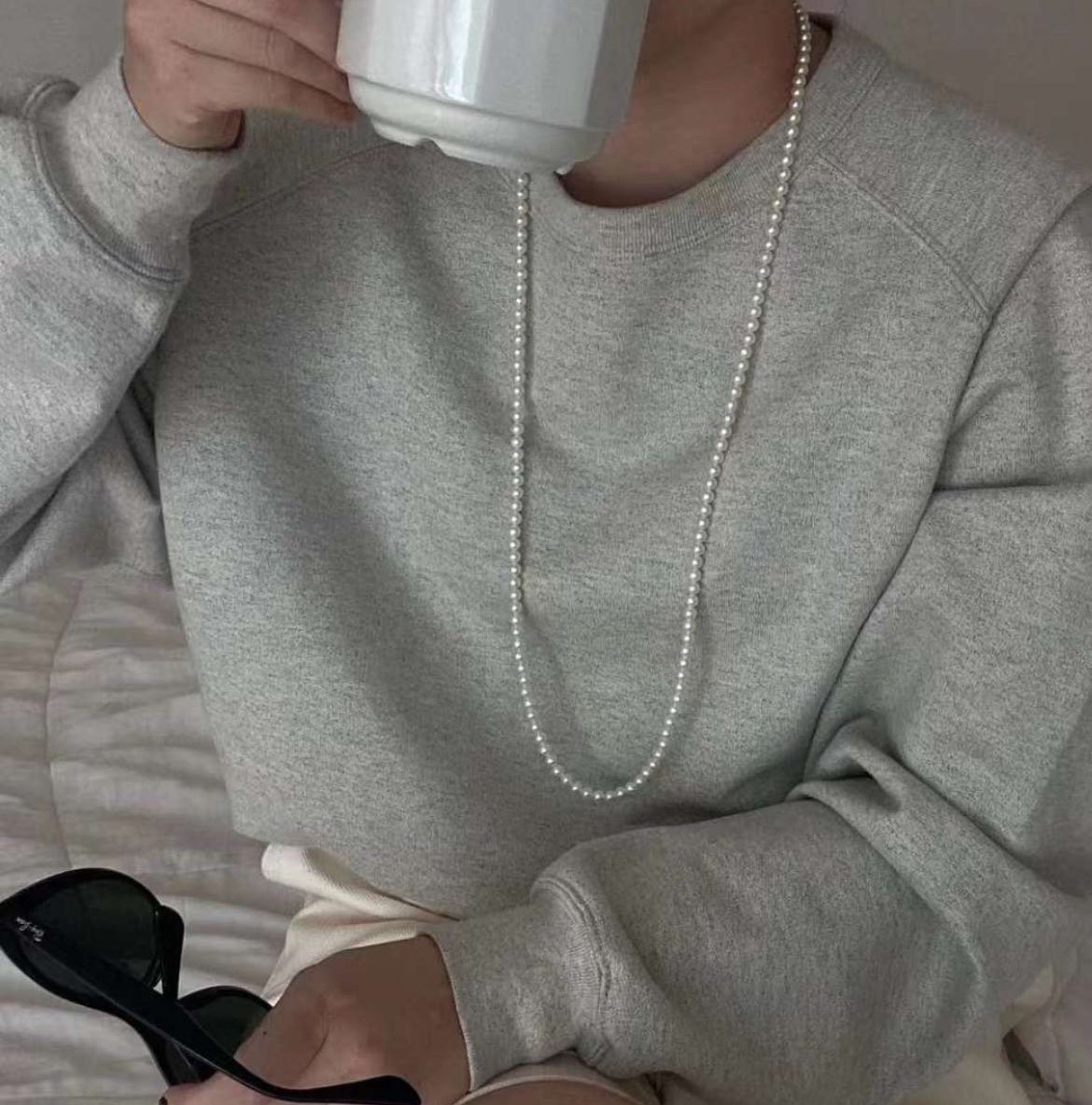 80cm的,4-5mm长款毛衣链,基本正圆无暇,品质很好,强光。是比较高档的配置了。卫衣搭配神器,扣子也可以任意扣。