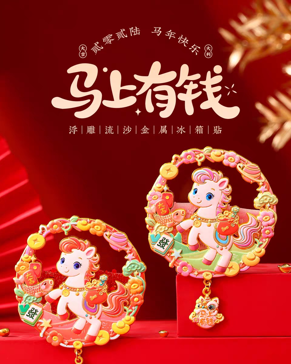 【马上有钱冰箱贴】新年国潮创意招财马年装饰贴