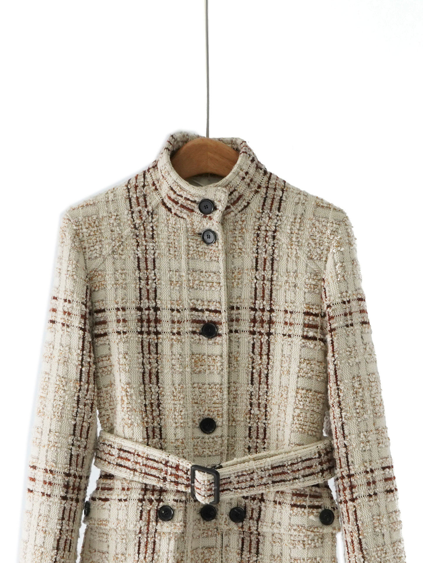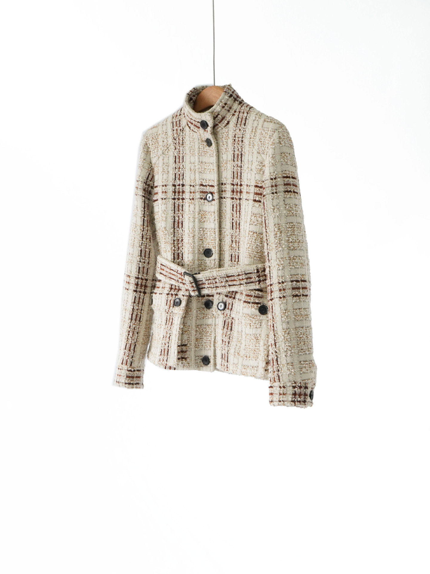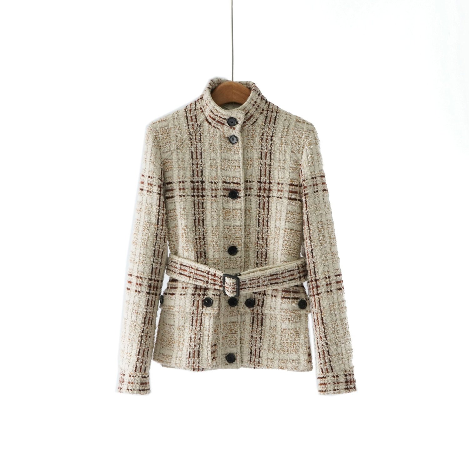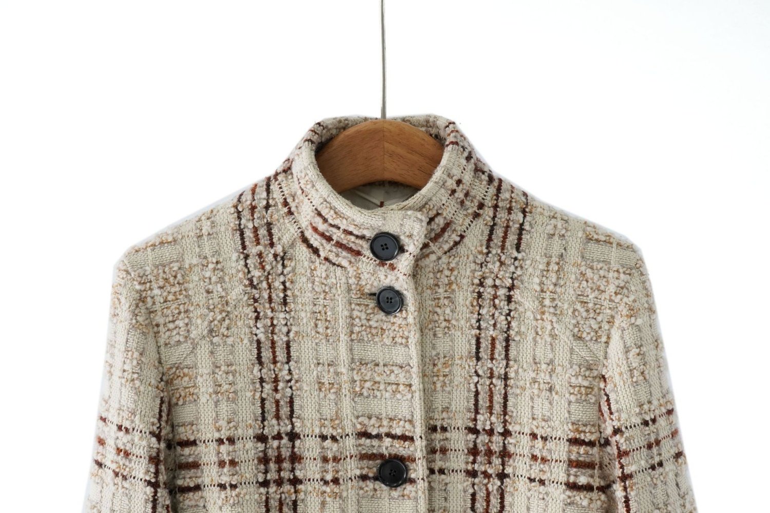 「自」全新升级【铂金会员717/天猫969/差价252】(34638)洛诗琳2025秋冬高级感羊毛桑蚕丝气质粗花呢编织立领外套女