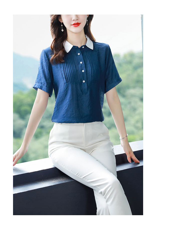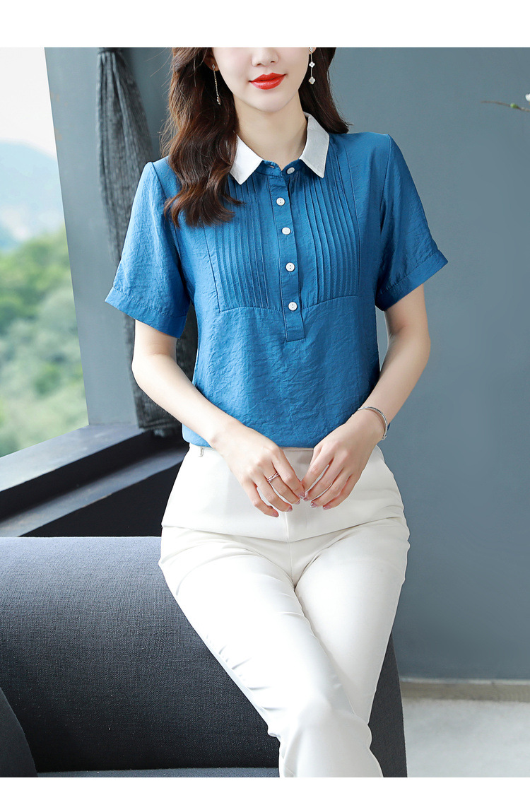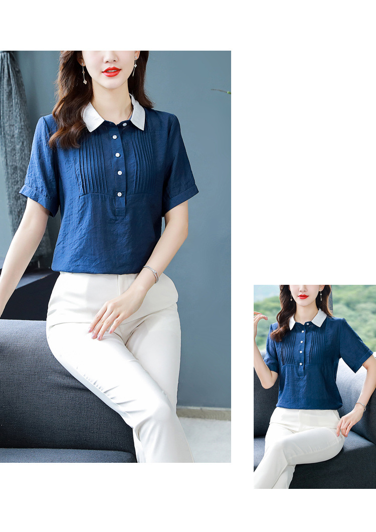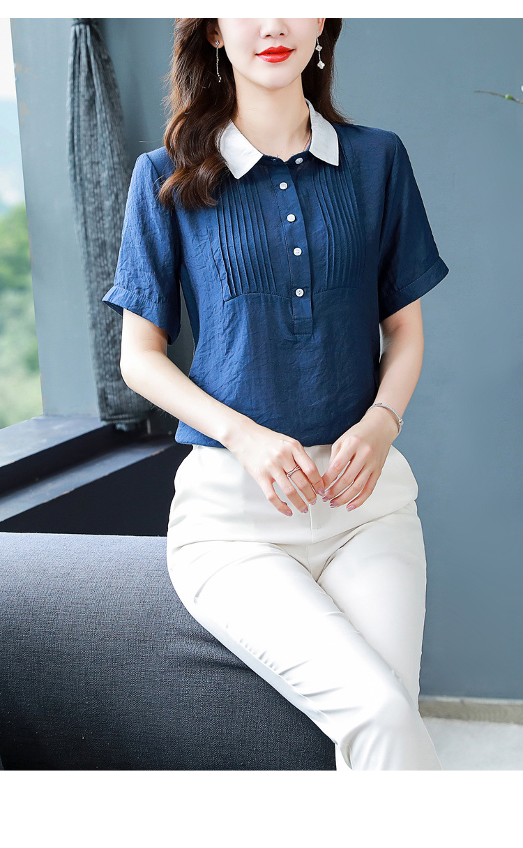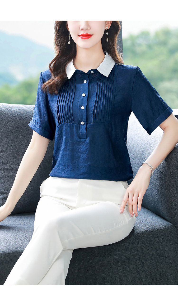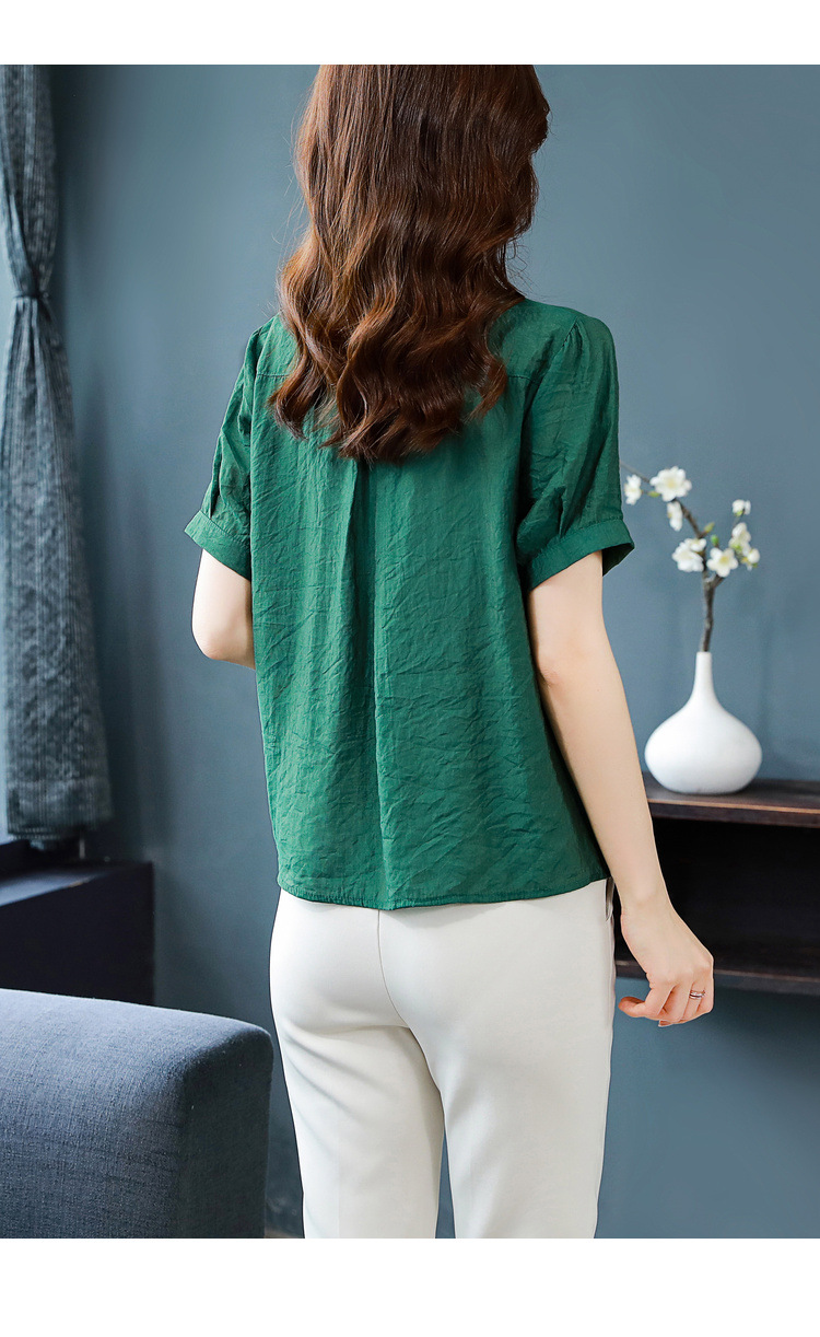 MZ802626 气质通勤宽松款2022夏季新款时尚型修身款棉麻短袖衬衫百搭上衣女