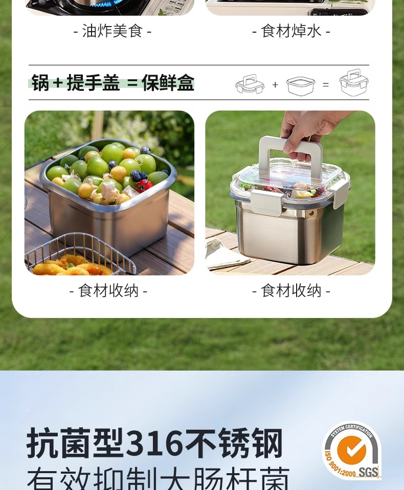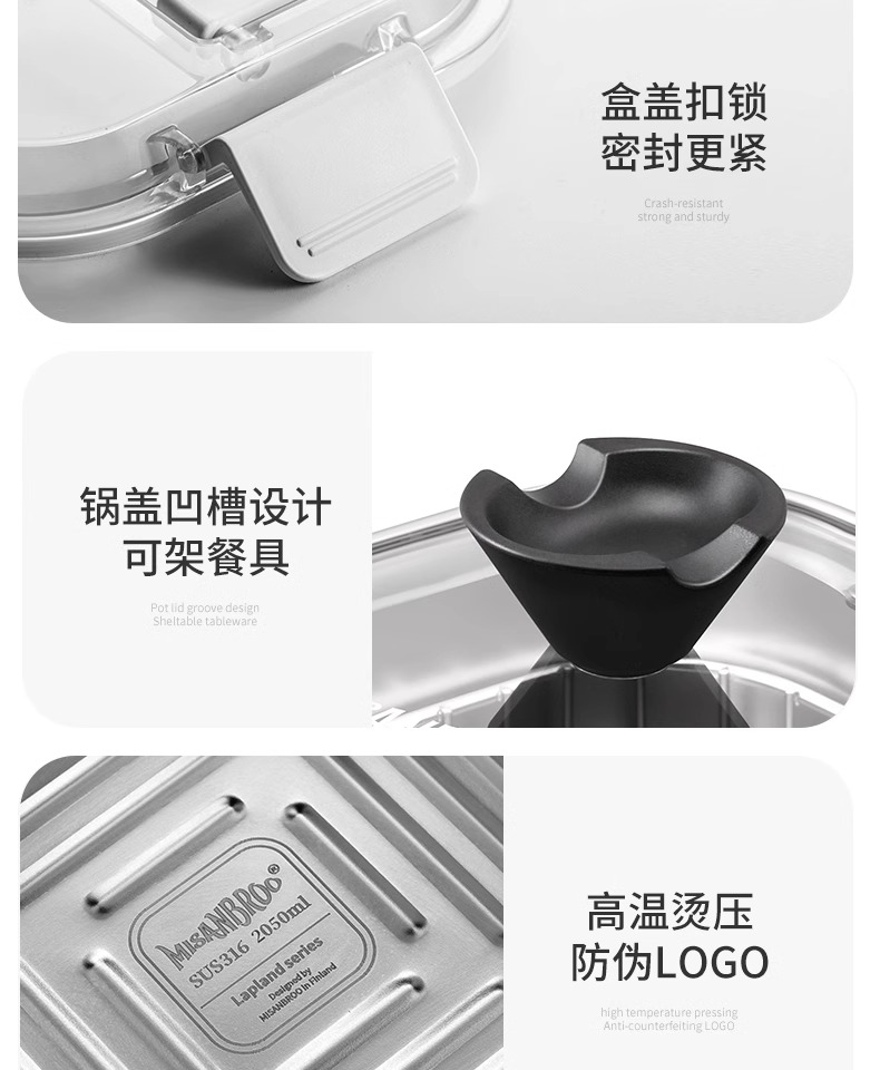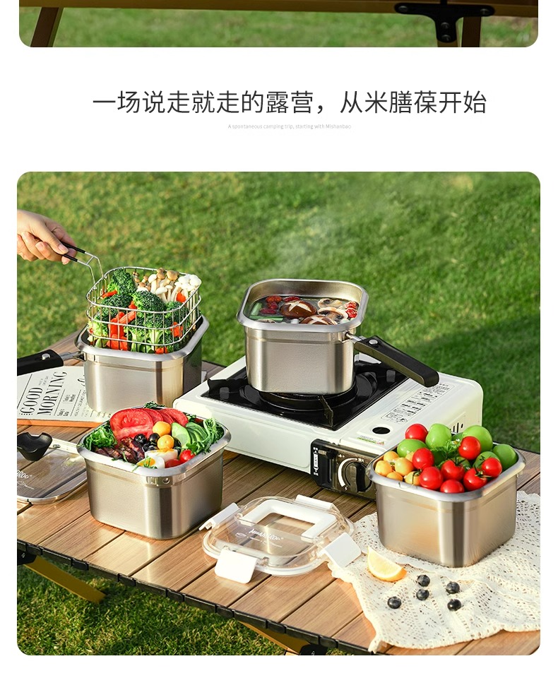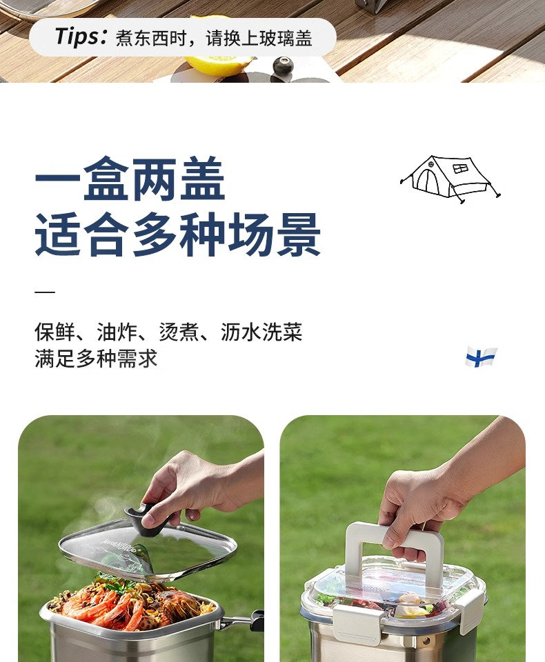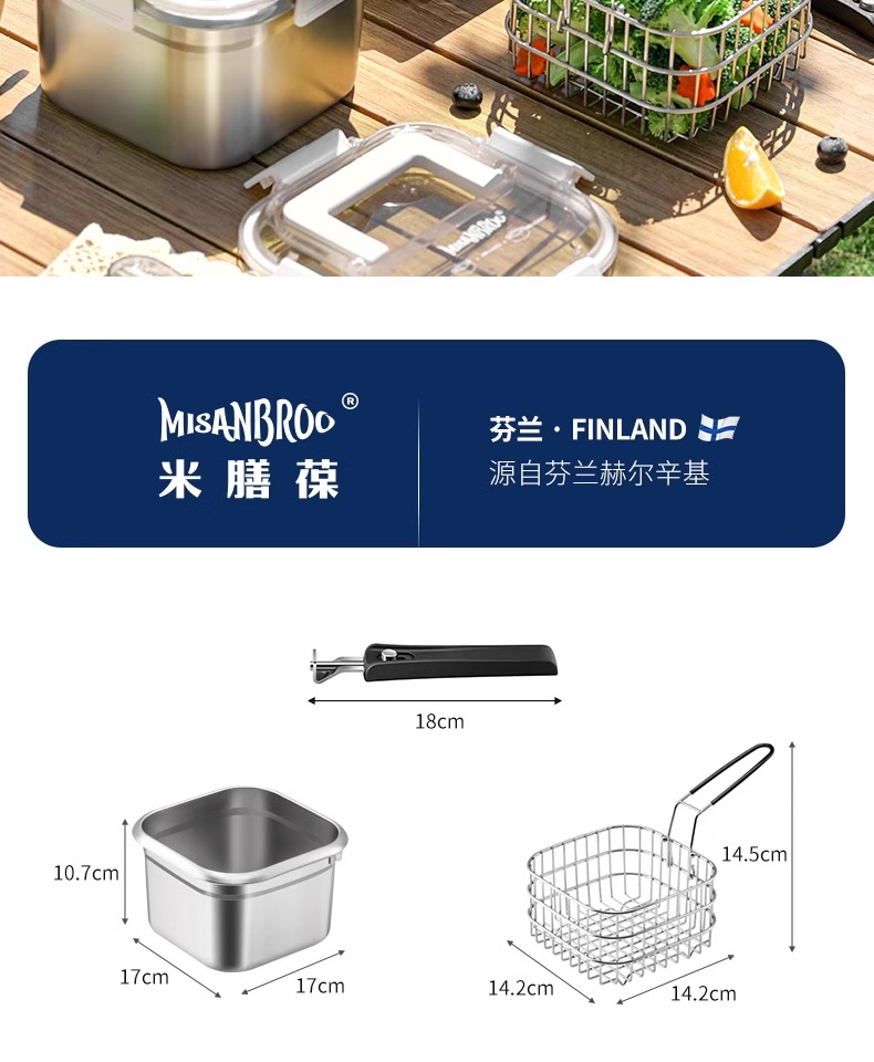 【芬兰MISANBROO】米膳葆抗菌型316不锈钢多功能保鲜盒露营炸锅奶锅