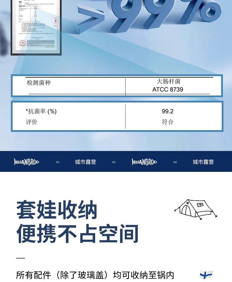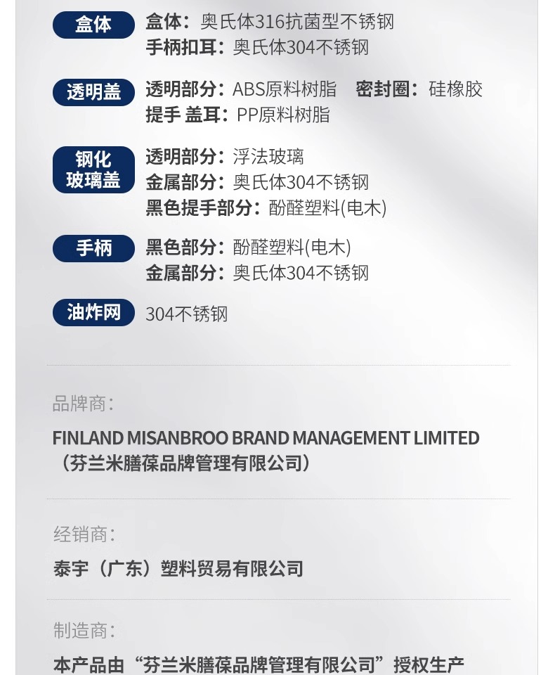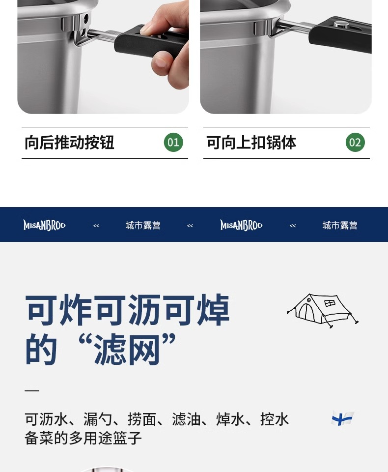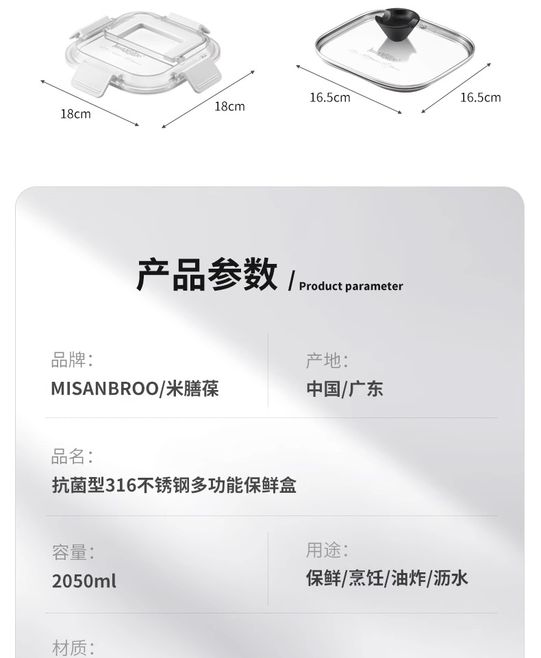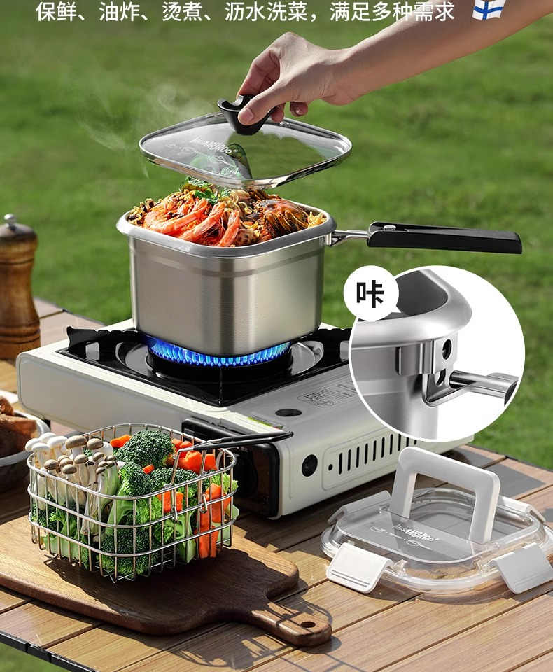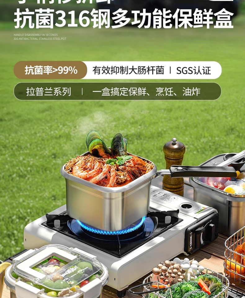 【芬兰MISANBROO】米膳葆抗菌型316不锈钢多功能保鲜盒露营炸锅奶锅