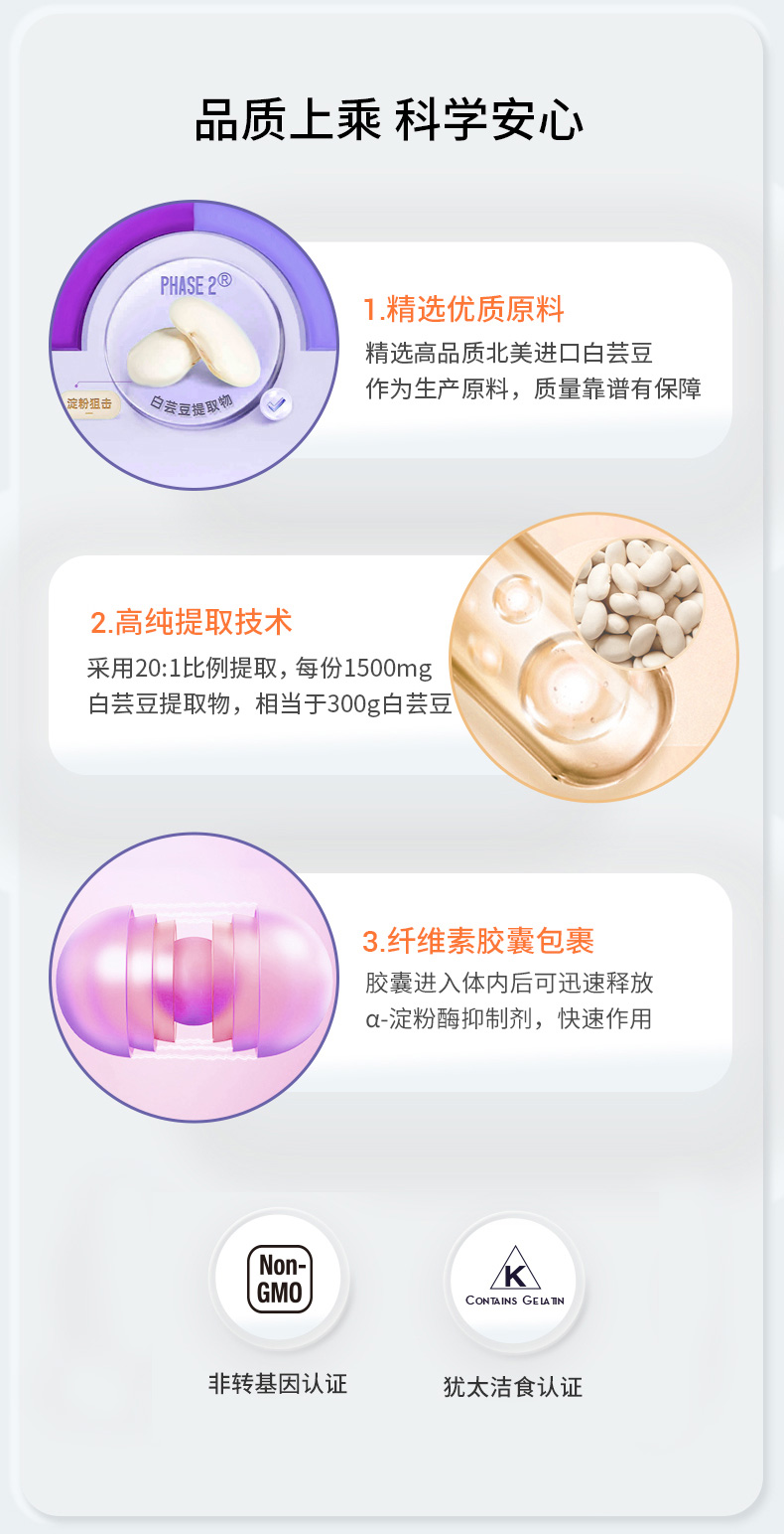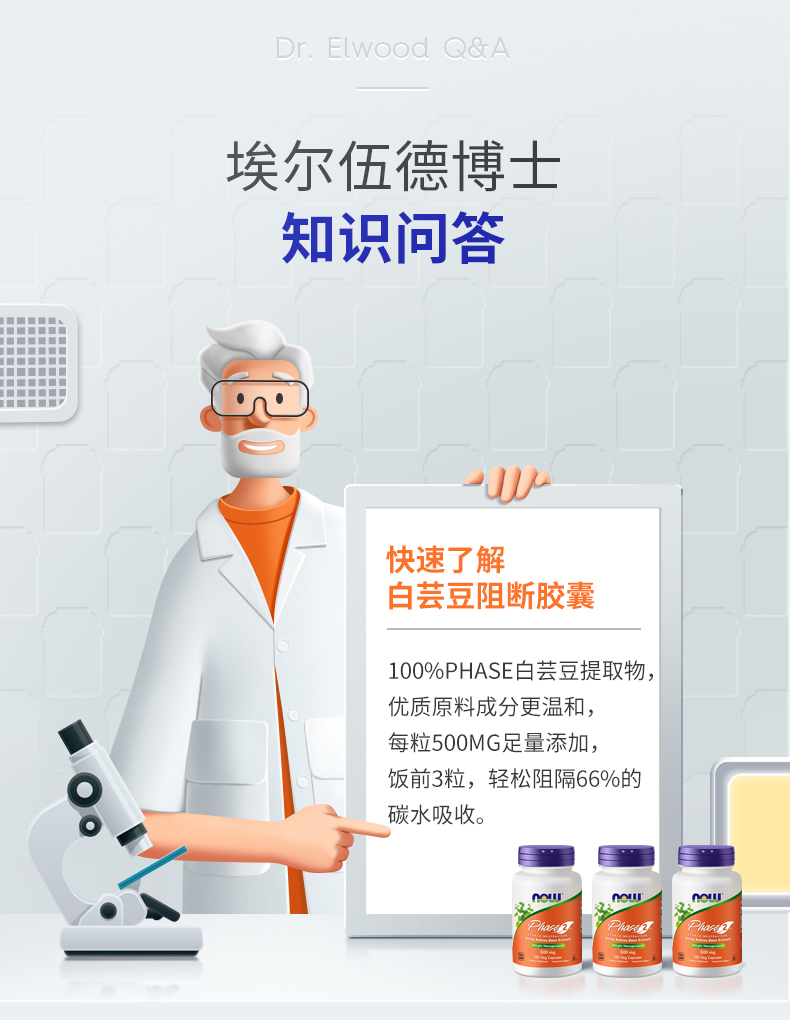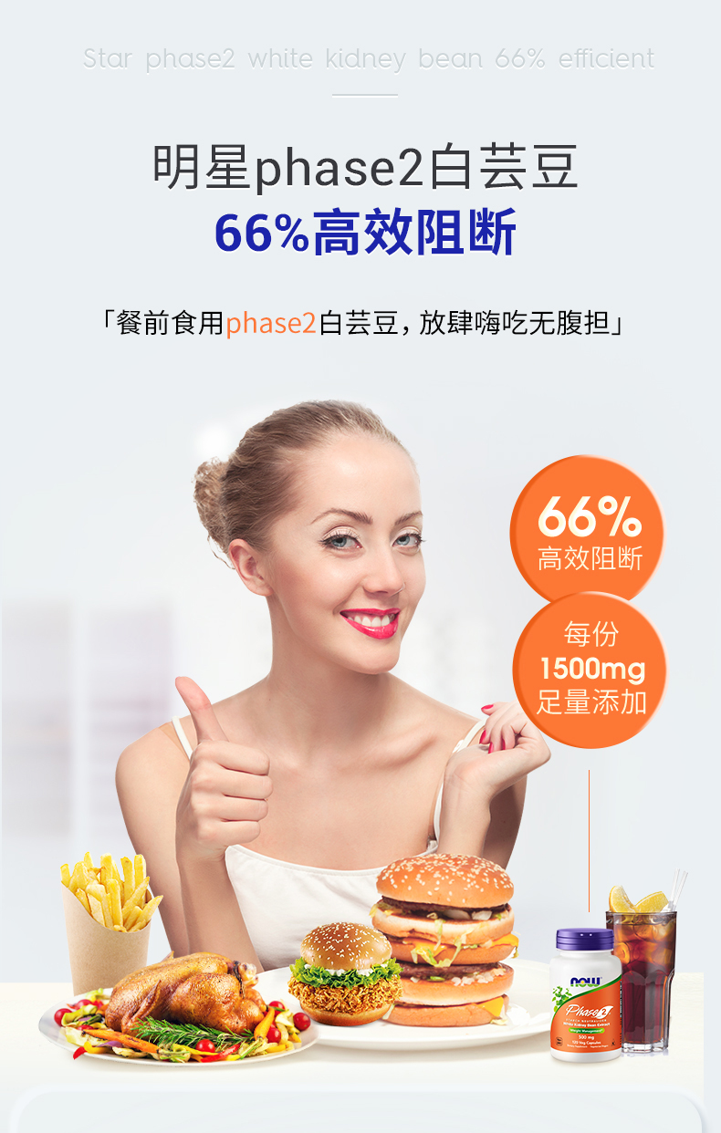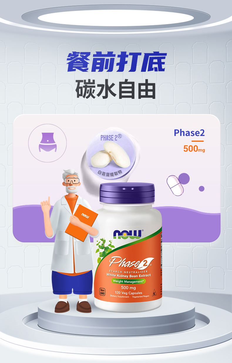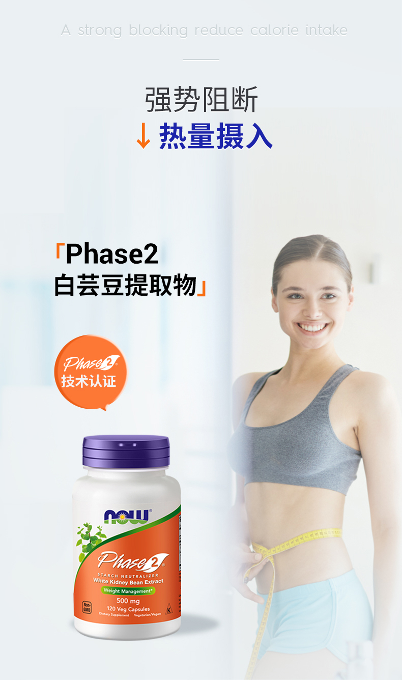 【碳水阻断】白芸豆阻断胶囊120粒 降低淀粉吸收率 NOW Foods诺奥