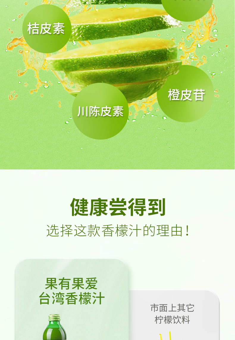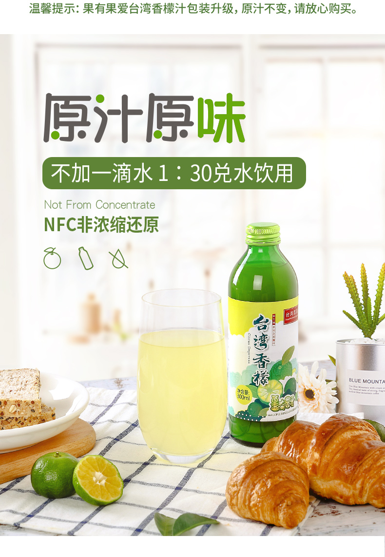 果有果爱柠檬汁进口台湾香檬原汁非浓缩青柠汁无糖果汁无添加原浆