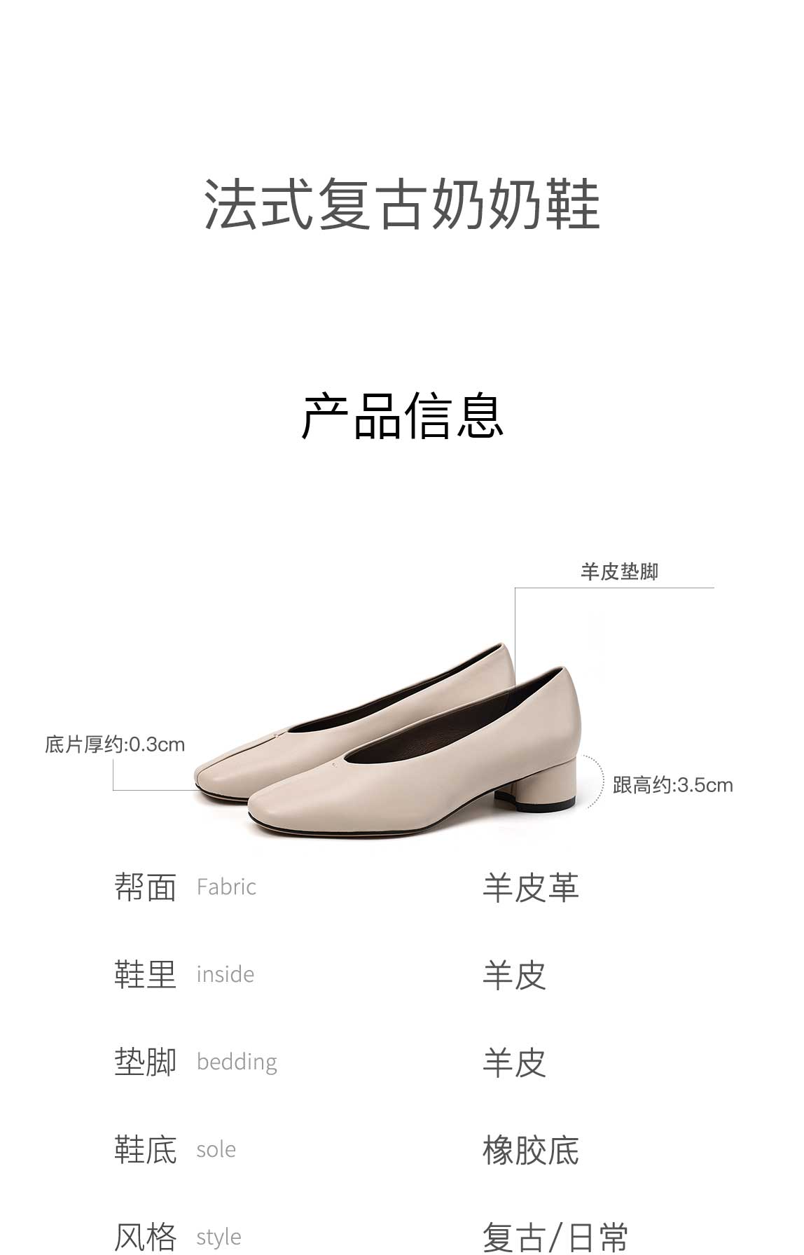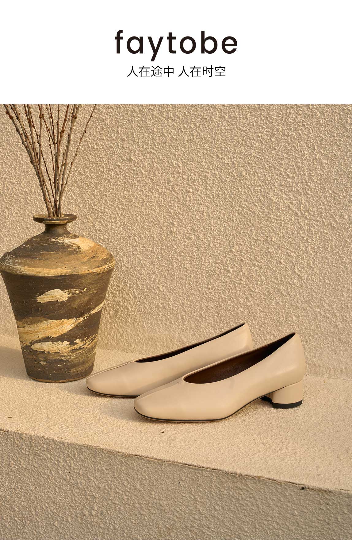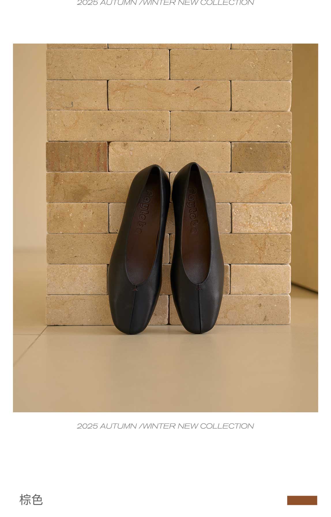 faytobe 鹅蛋玛丽珍法式浅口单鞋外穿方圆头平低舒适羊皮奶奶鞋