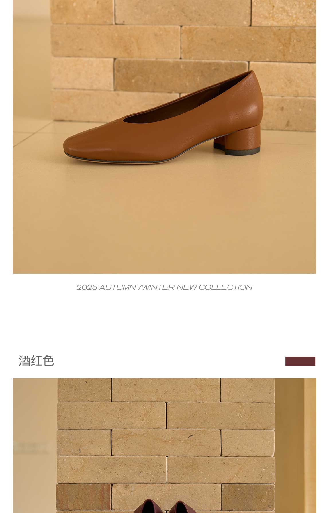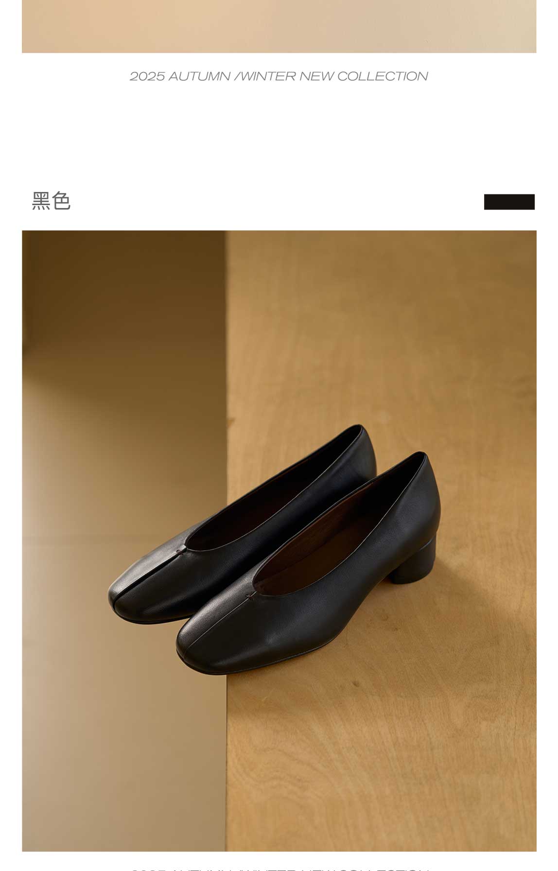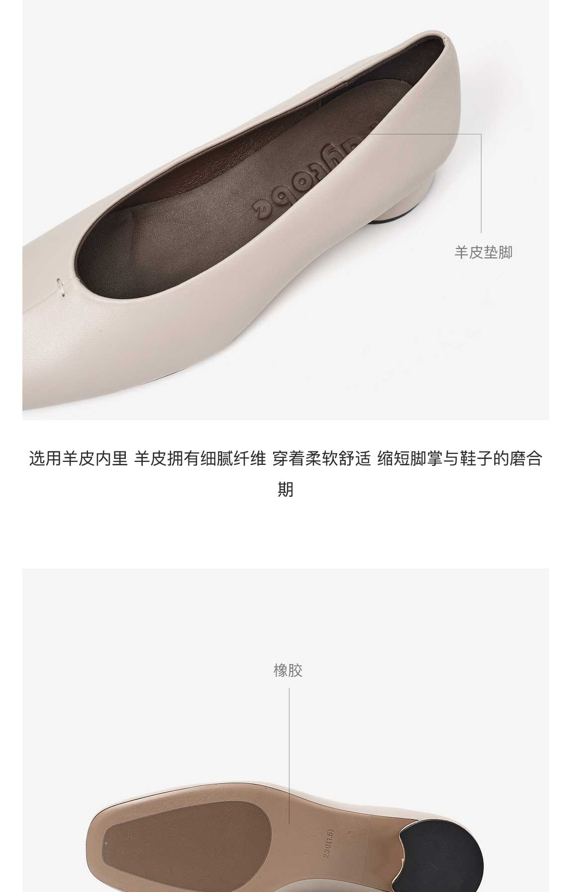 faytobe 鹅蛋玛丽珍法式浅口单鞋外穿方圆头平低舒适羊皮奶奶鞋