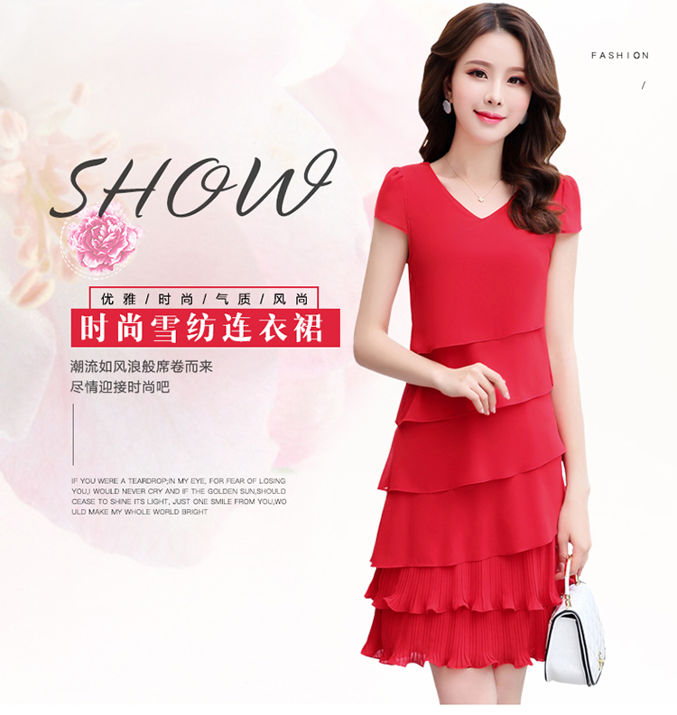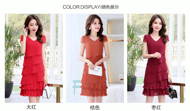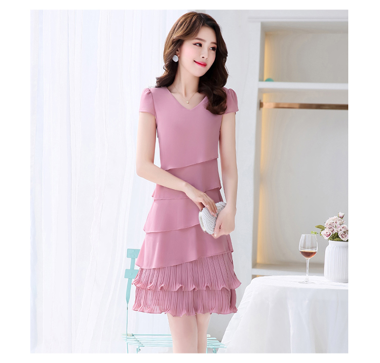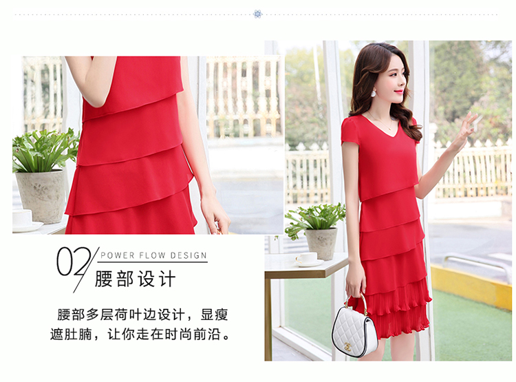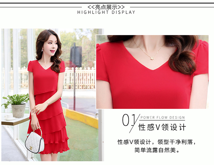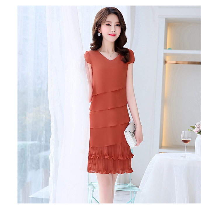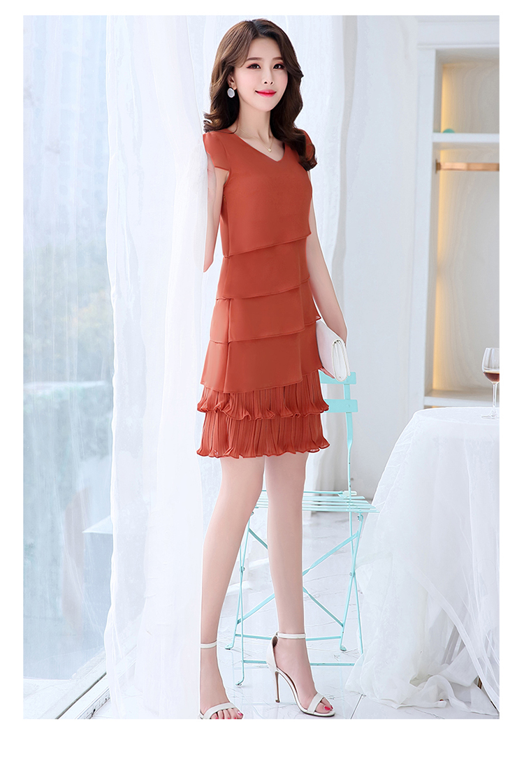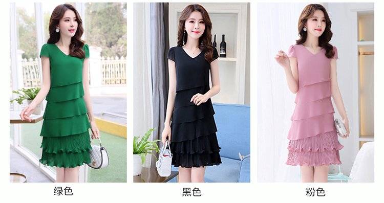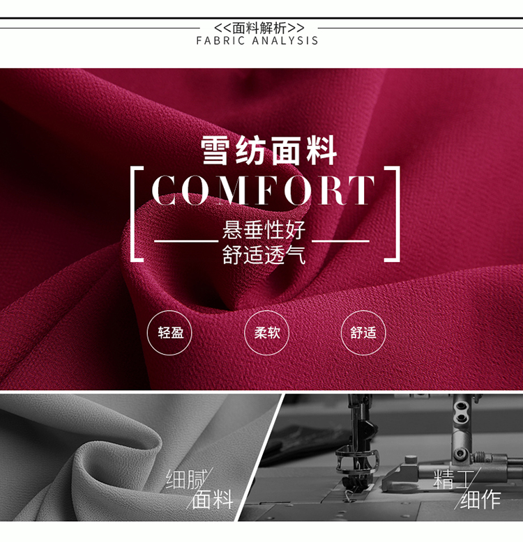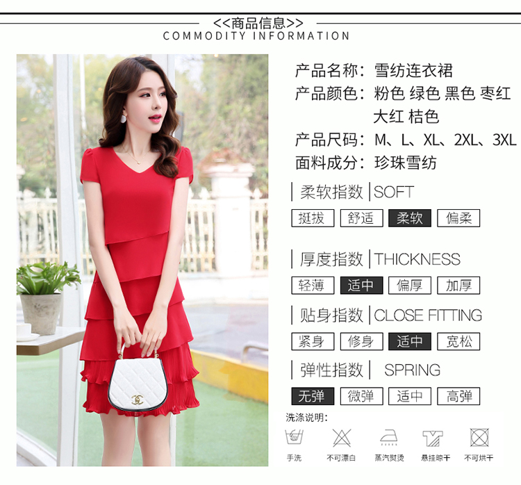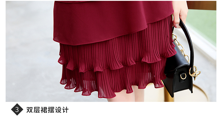 WZNH-MLJL8802新品雪纺纯色V领中腰套头单件一步裙