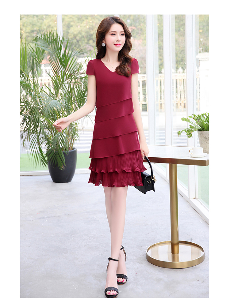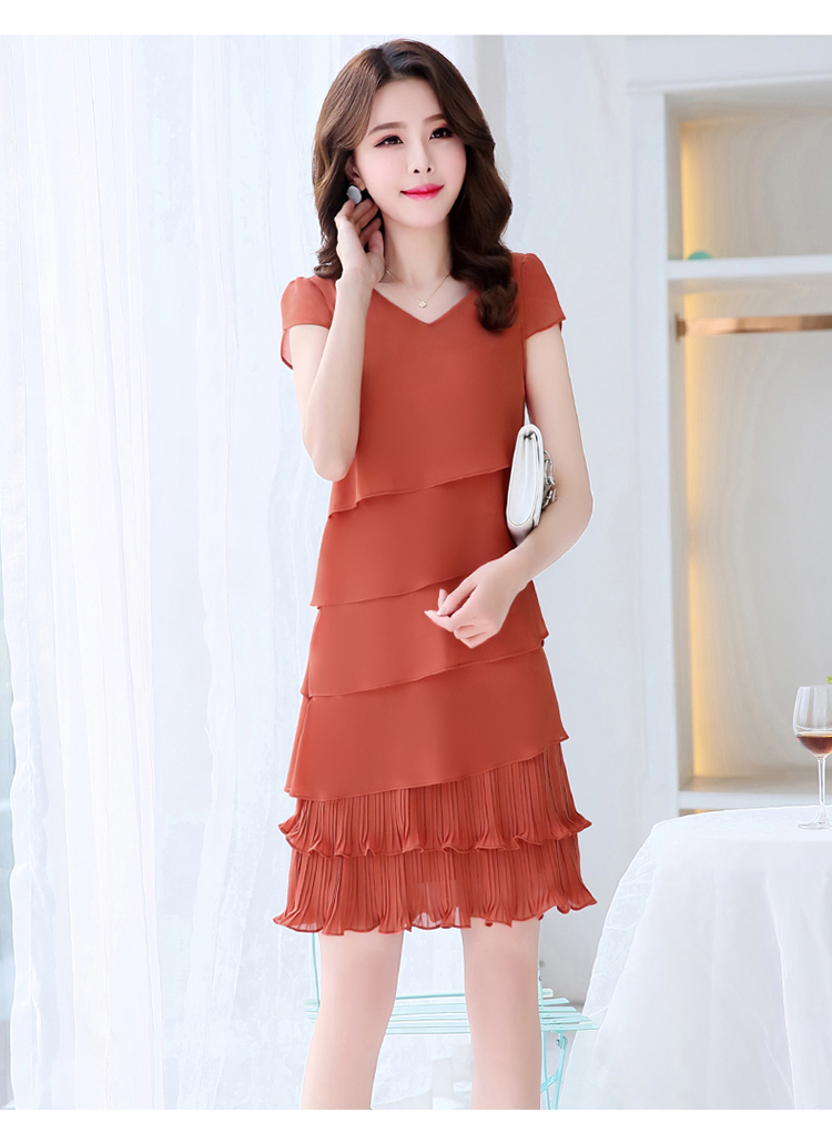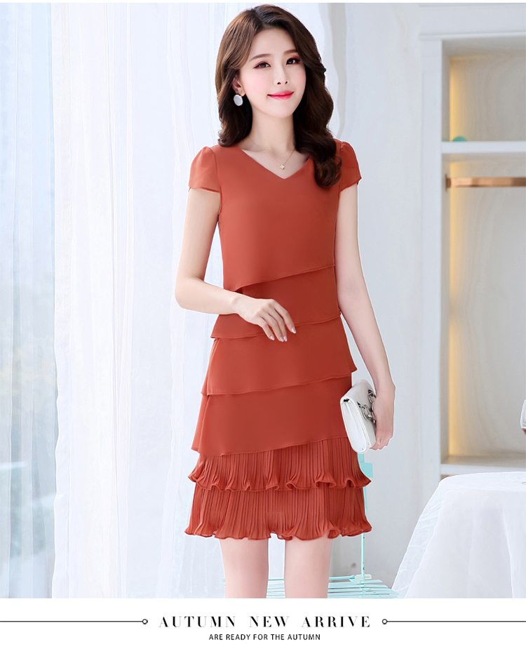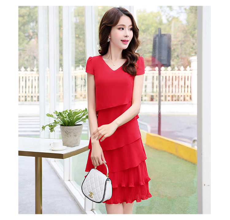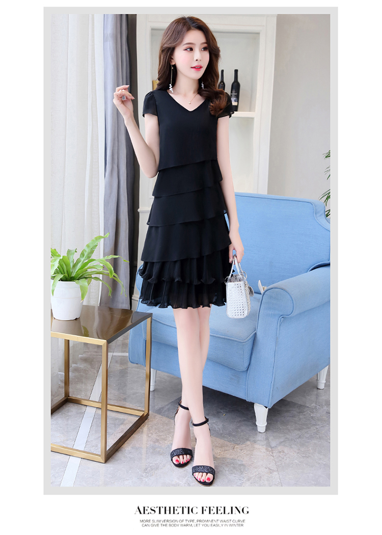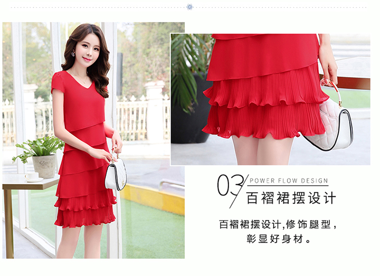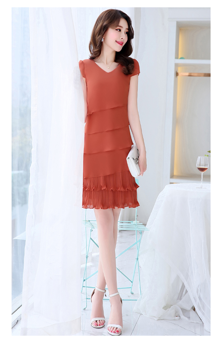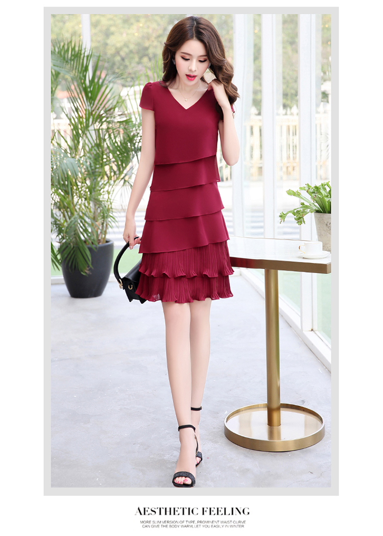 WZNH-MLJL8802新品雪纺纯色V领中腰套头单件一步裙