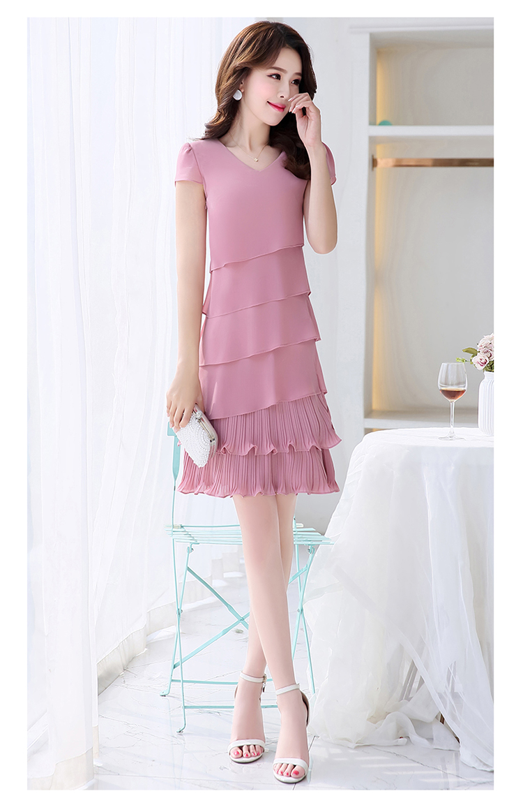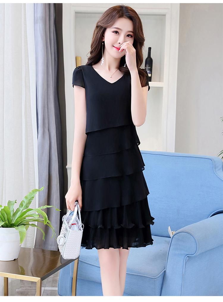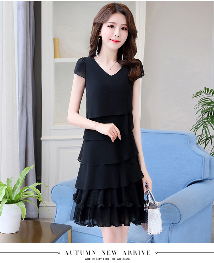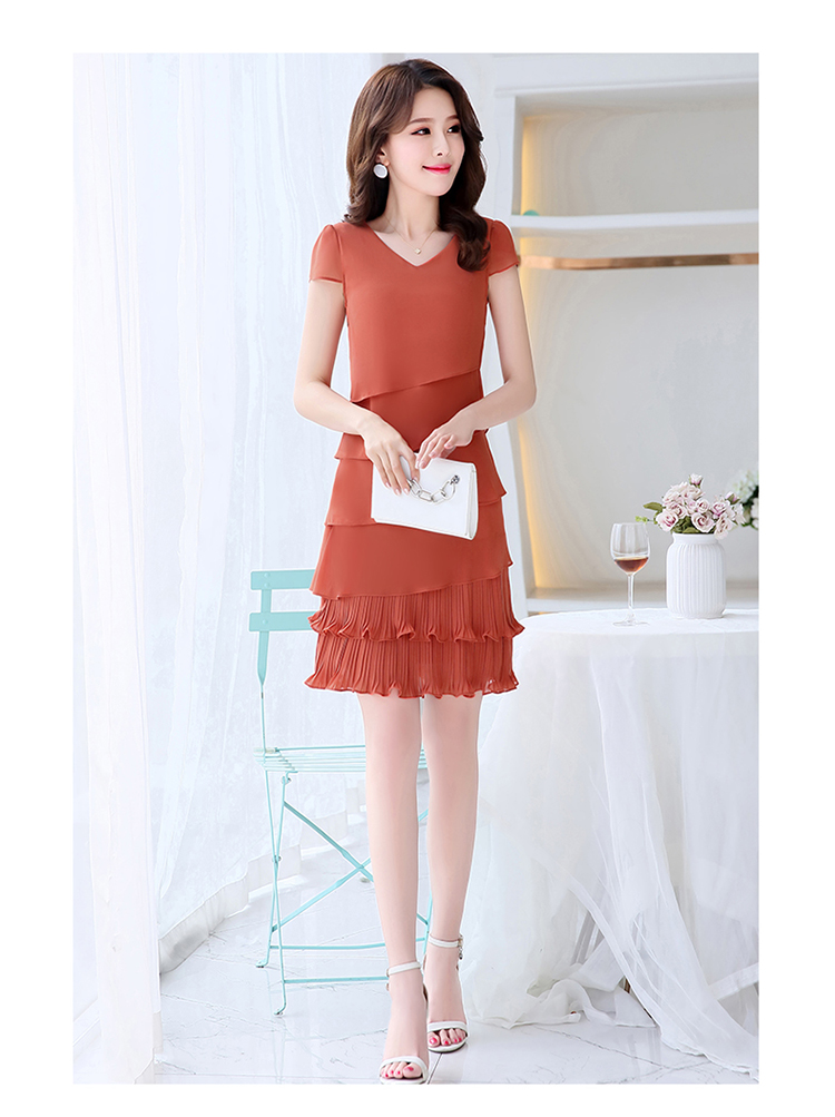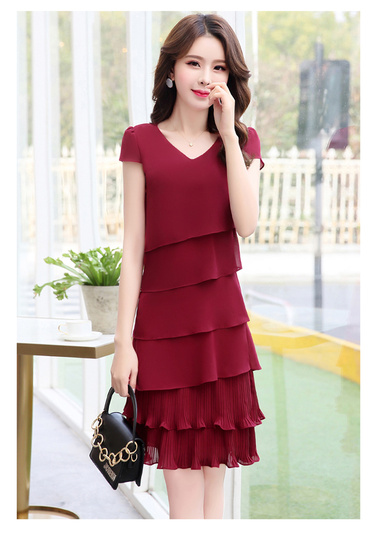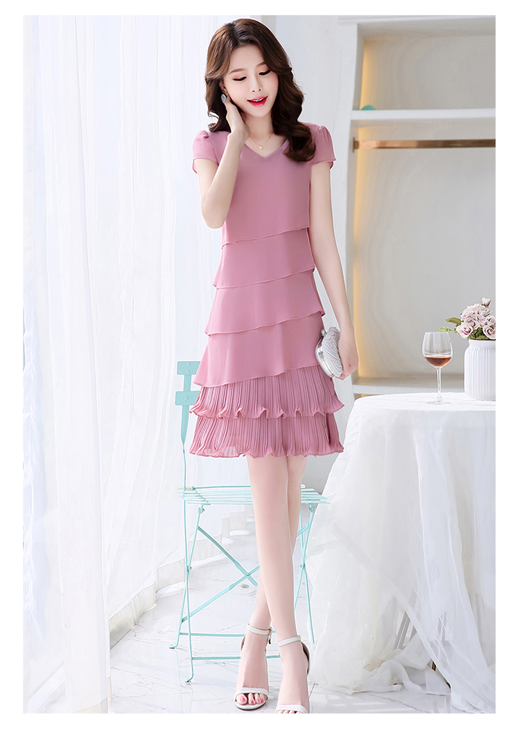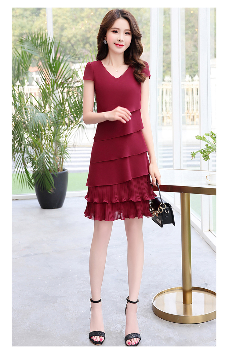 WZNH-MLJL8802新品雪纺纯色V领中腰套头单件一步裙