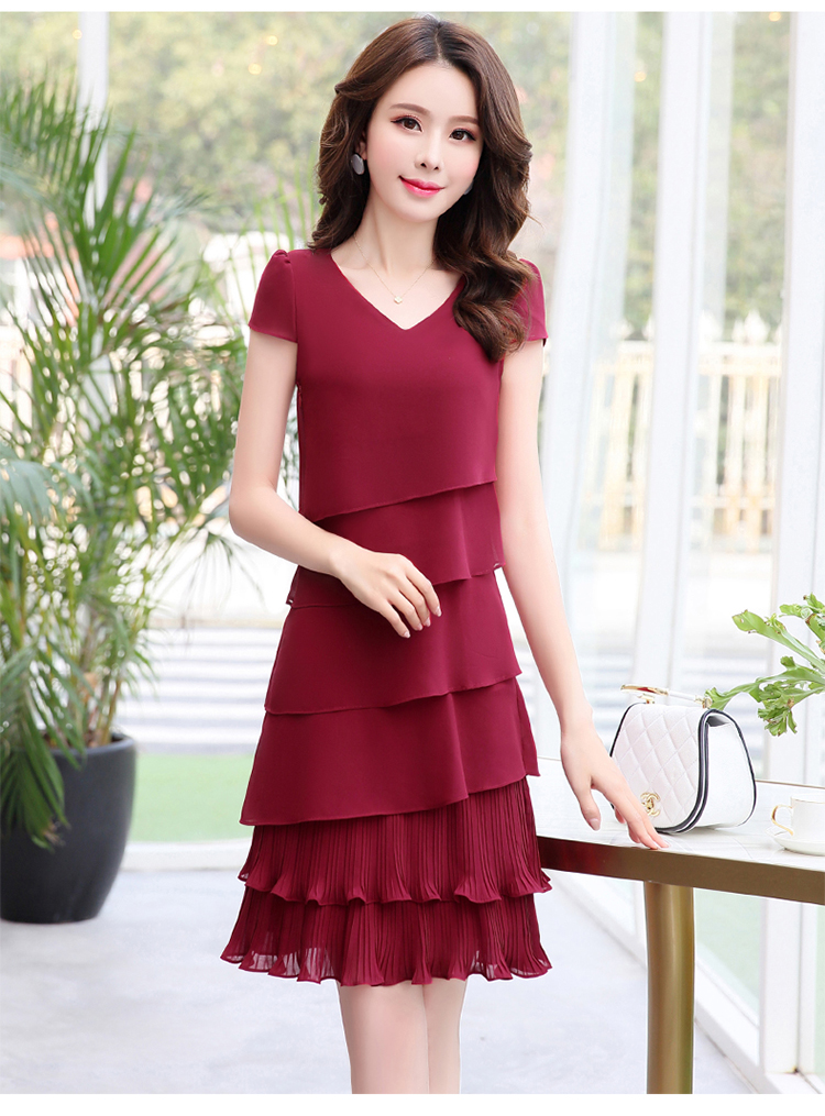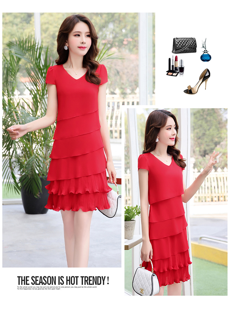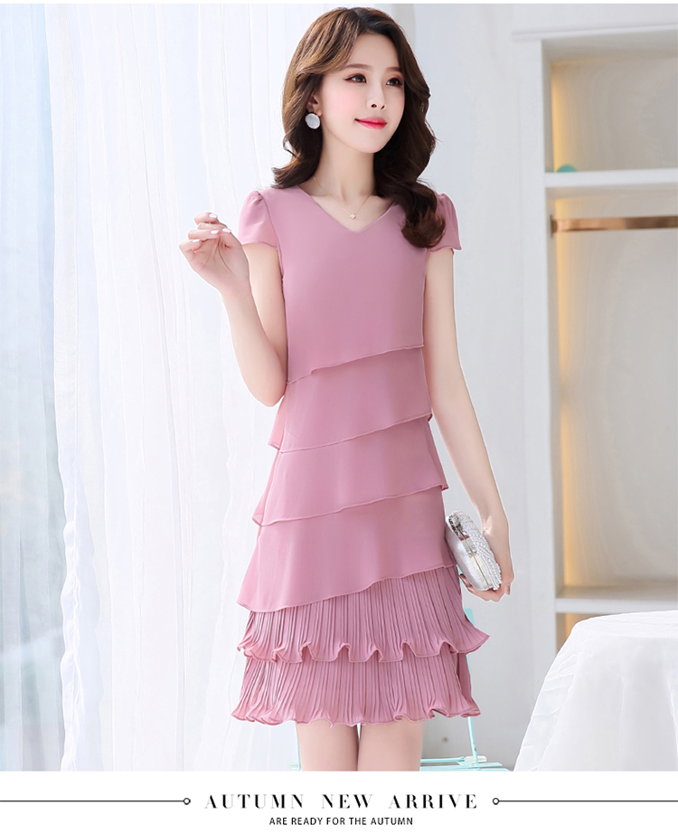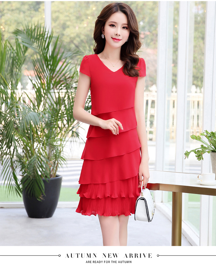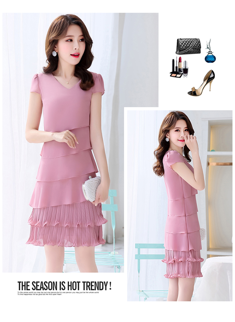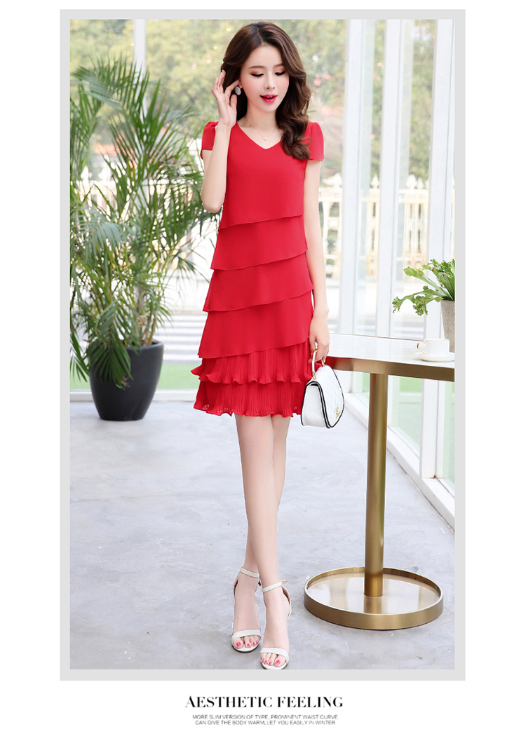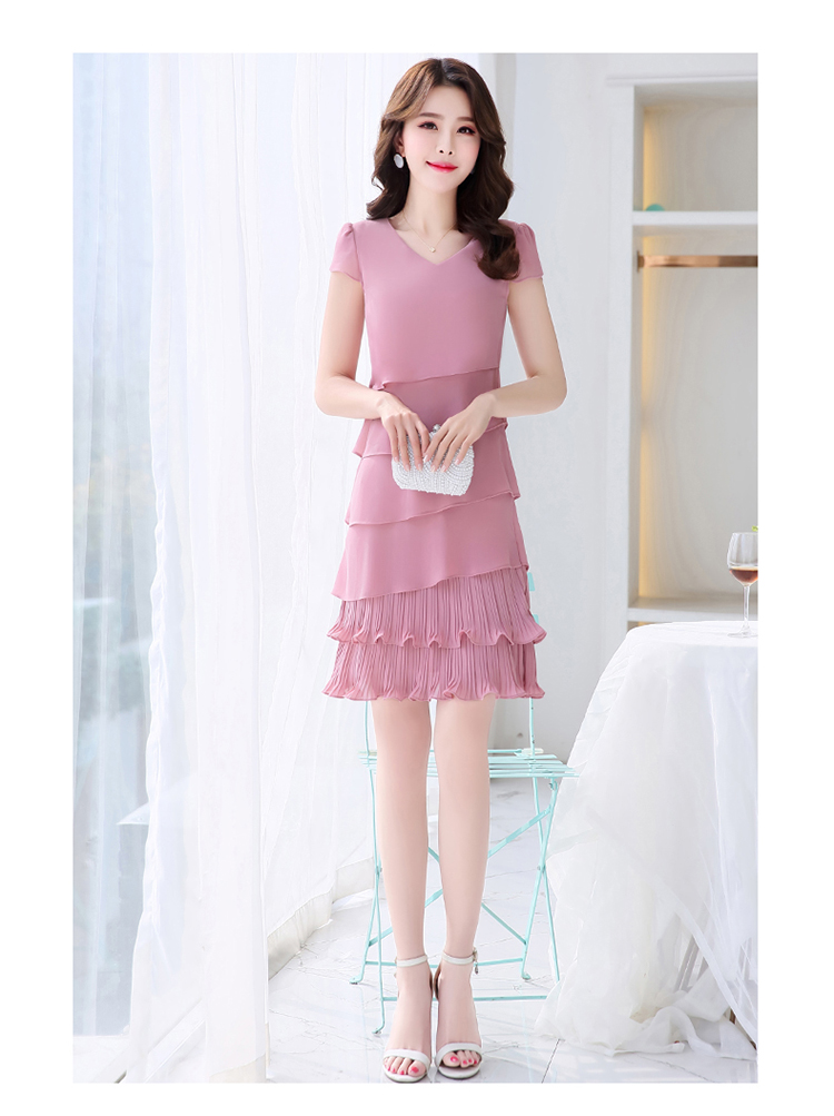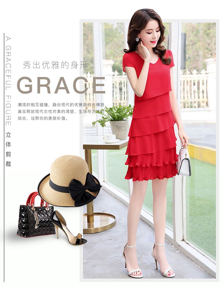 WZNH-MLJL8802新品雪纺纯色V领中腰套头单件一步裙