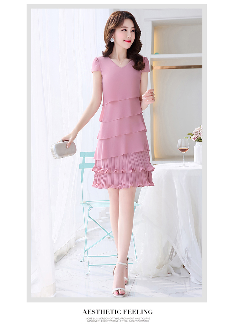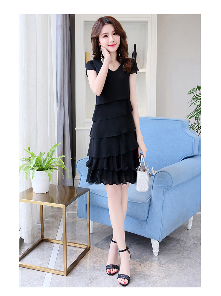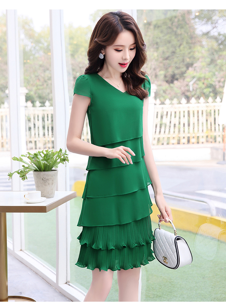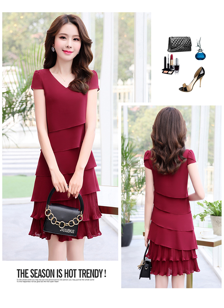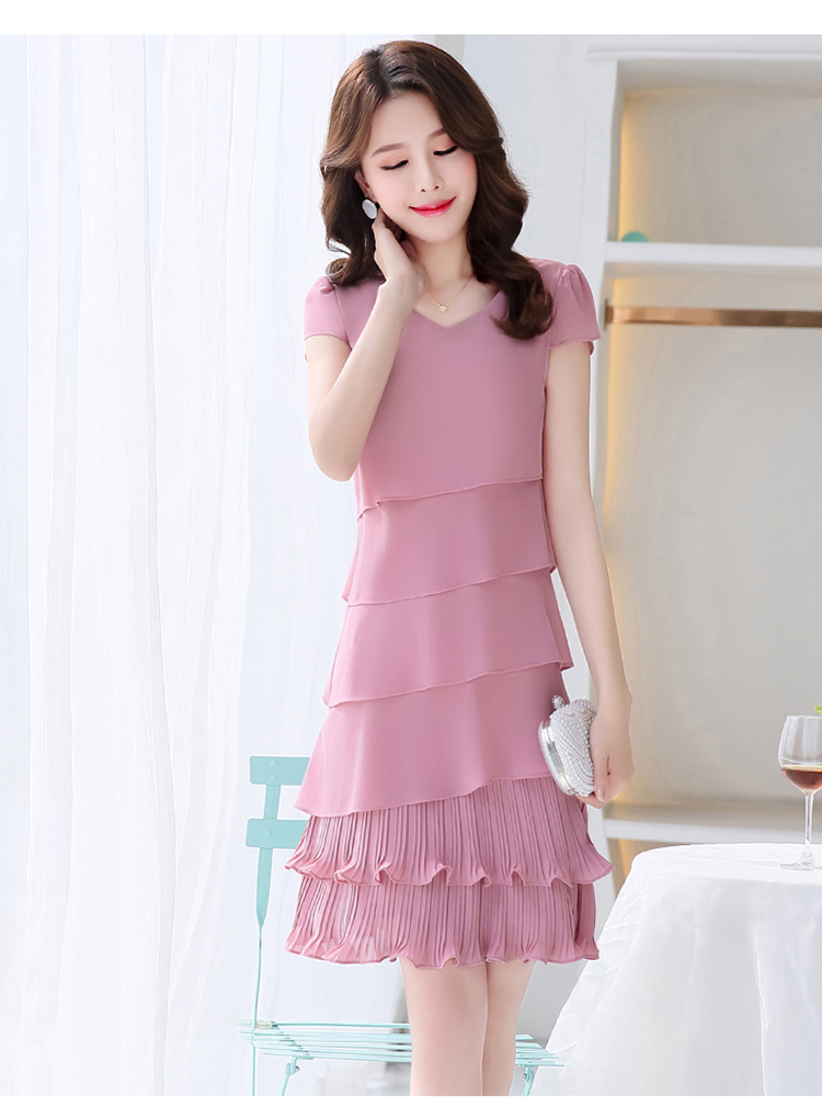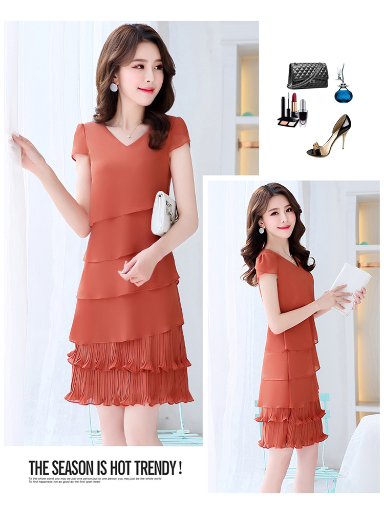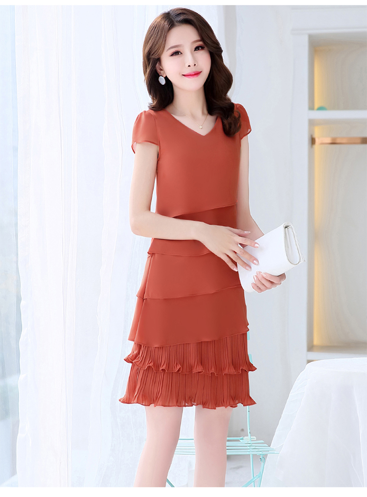 WZNH-MLJL8802新品雪纺纯色V领中腰套头单件一步裙