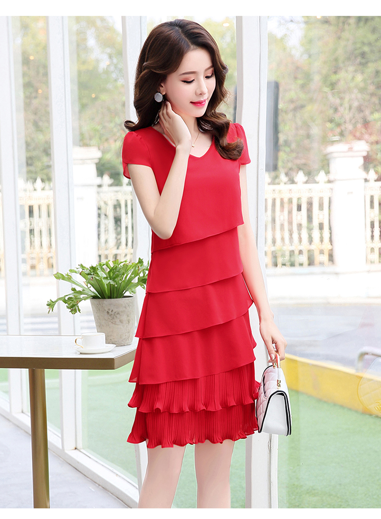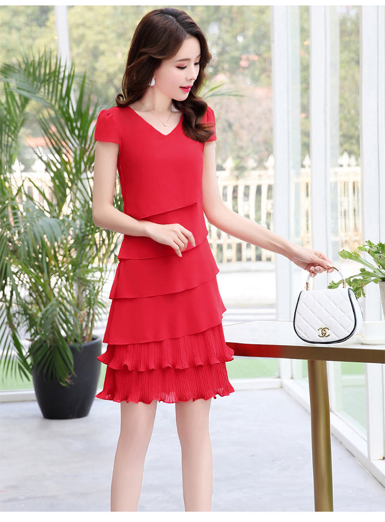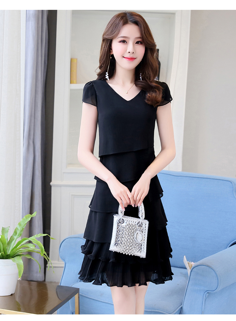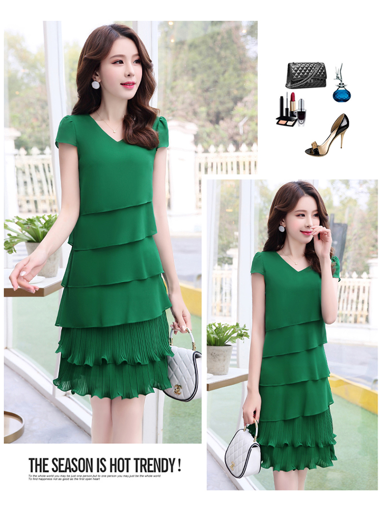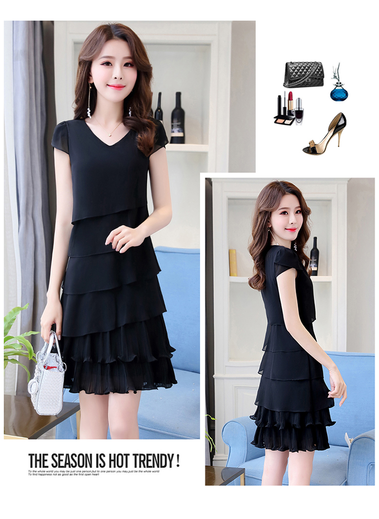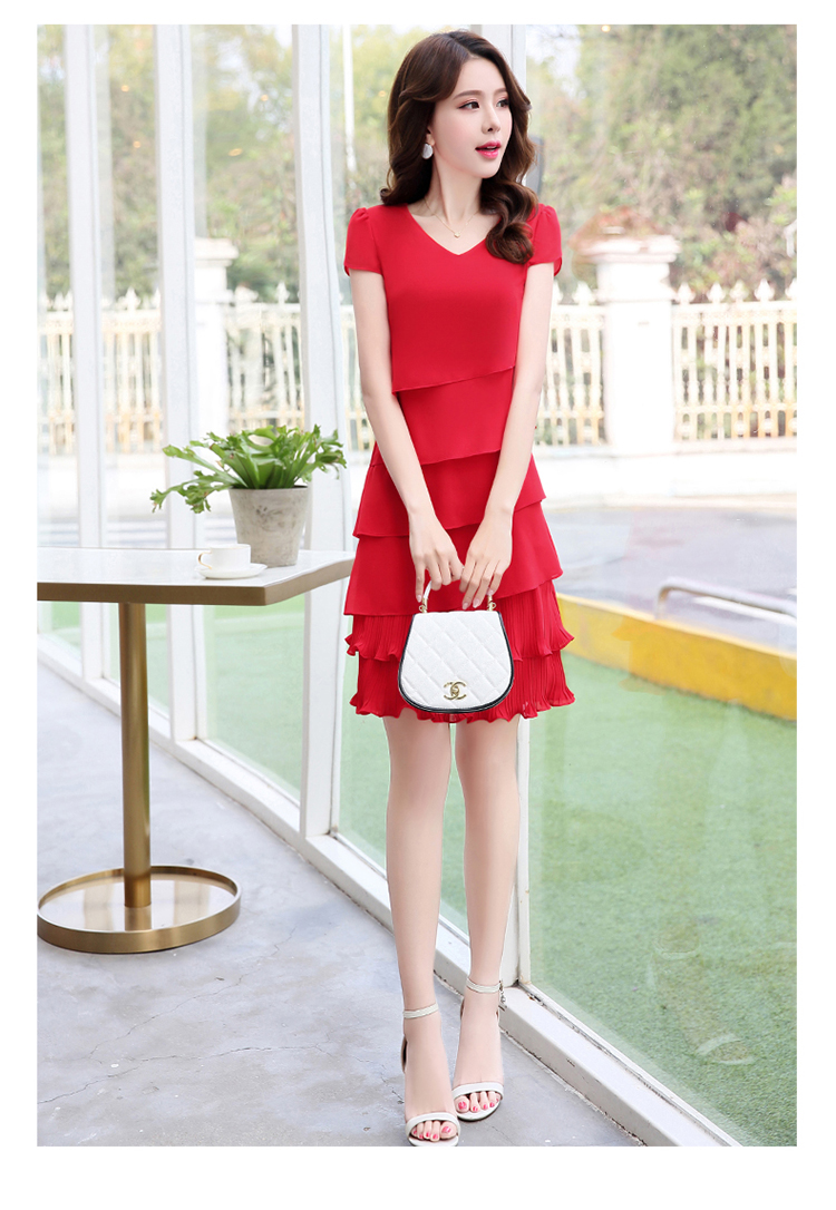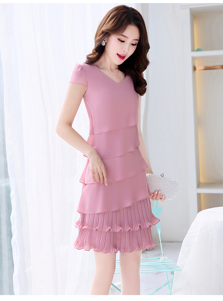 WZNH-MLJL8802新品雪纺纯色V领中腰套头单件一步裙