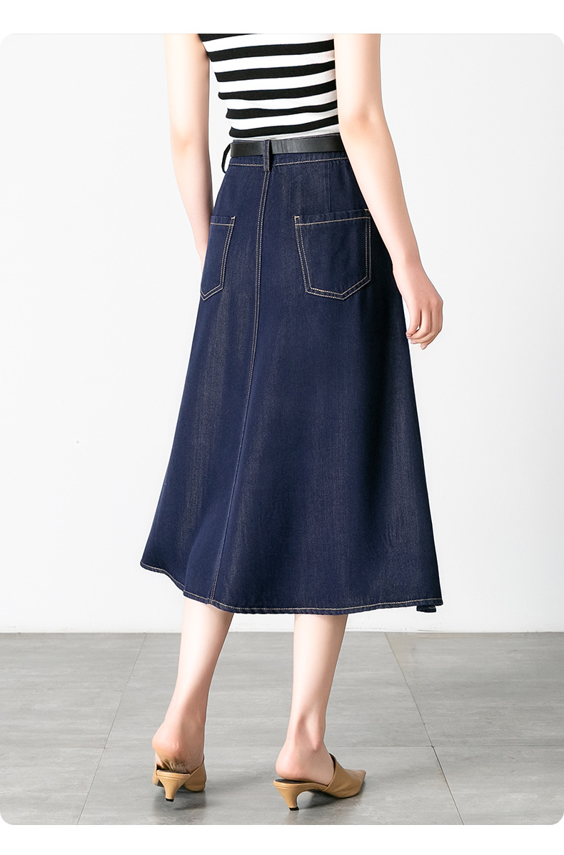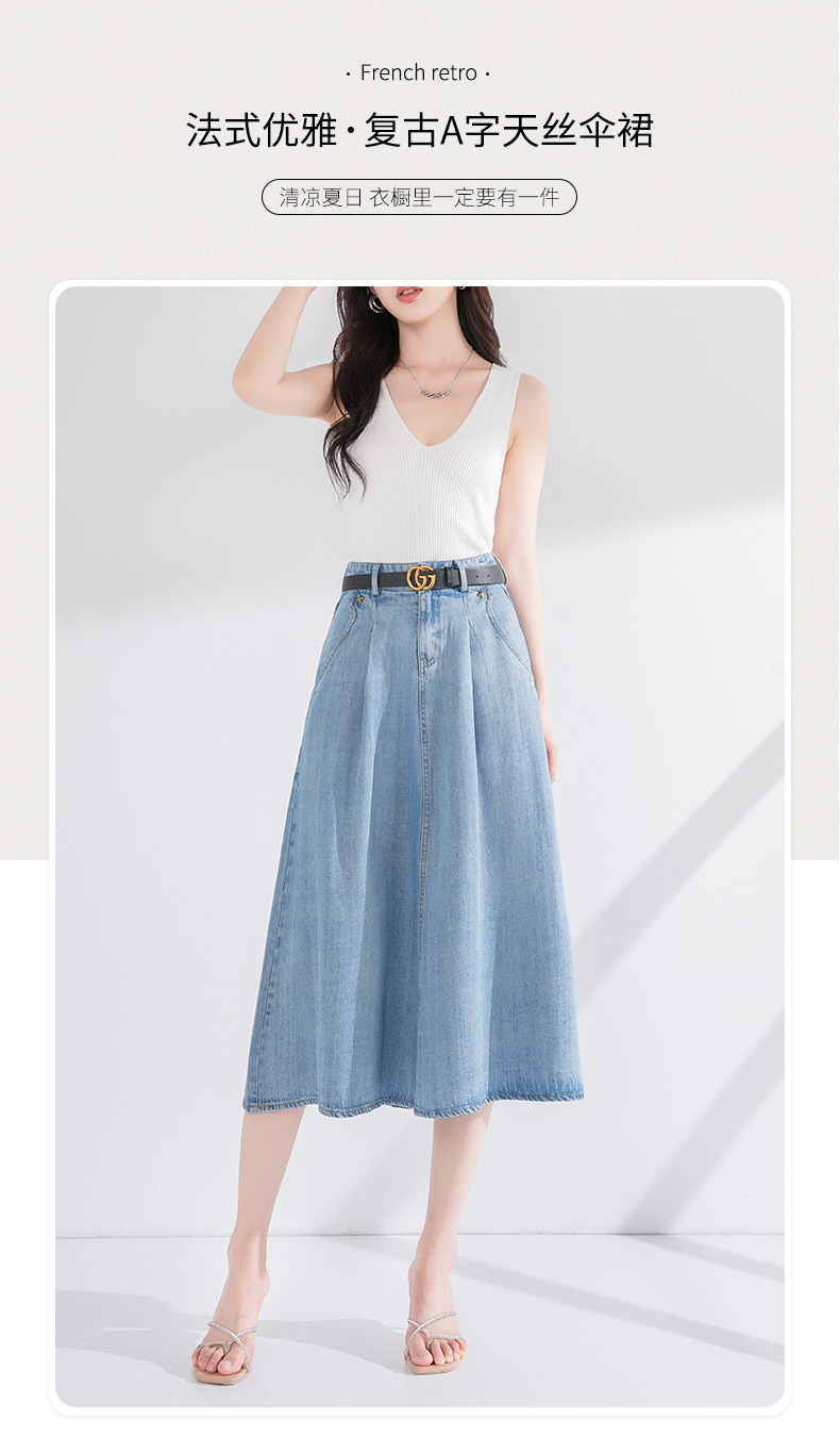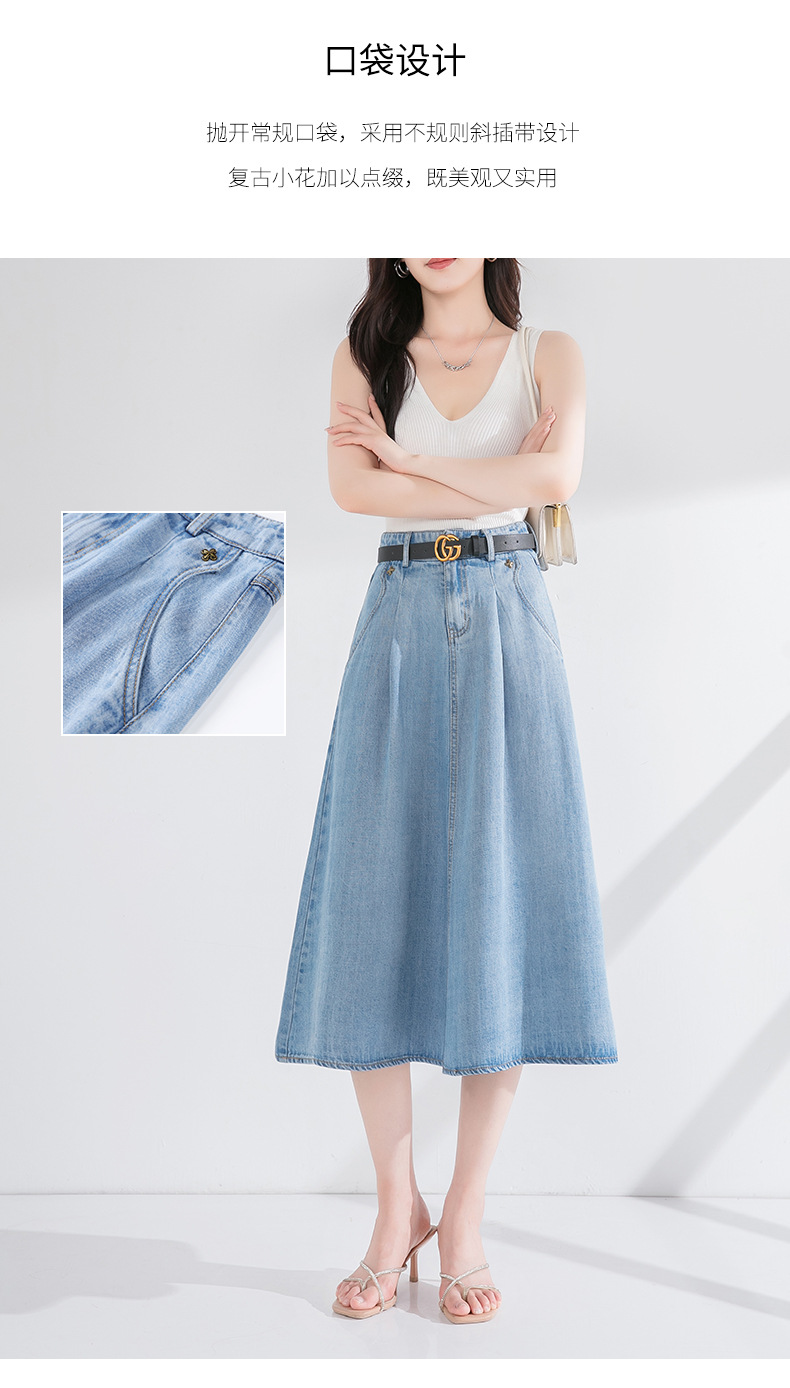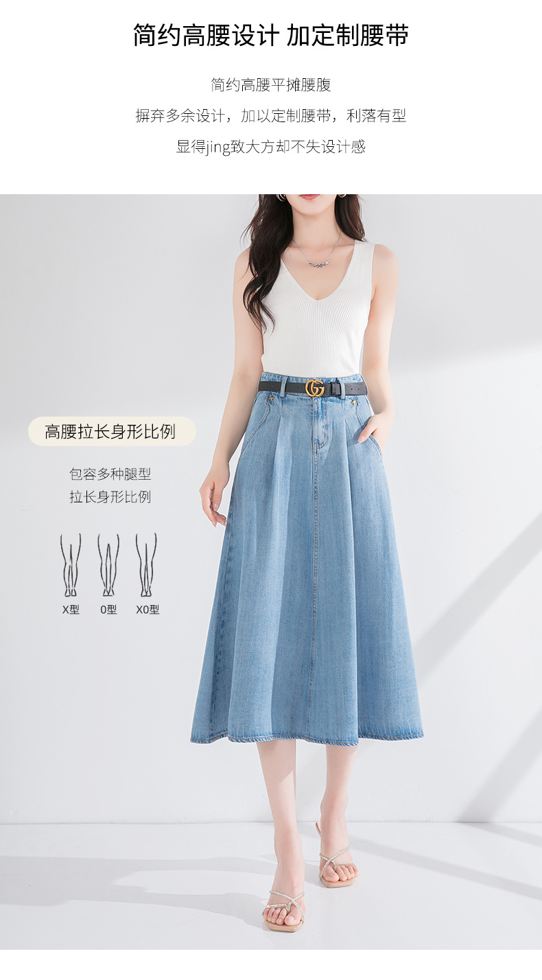 丁摩 天丝牛仔半身裙女式高腰遮胯显瘦大摆中长款伞裙(不含腰带)2615