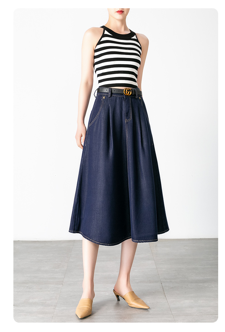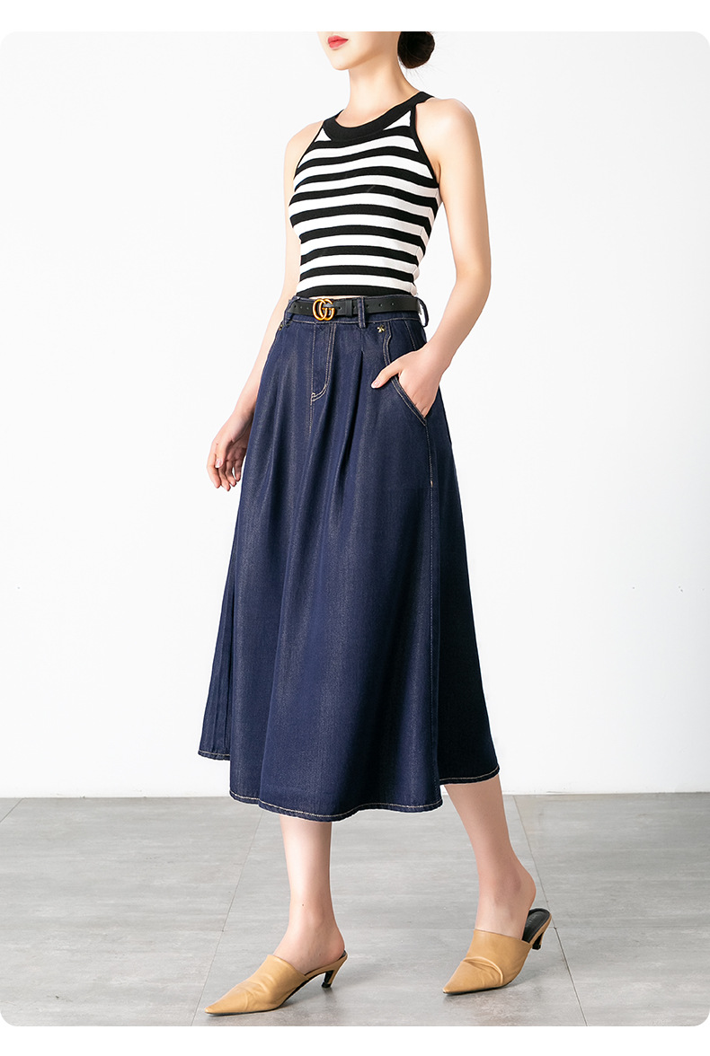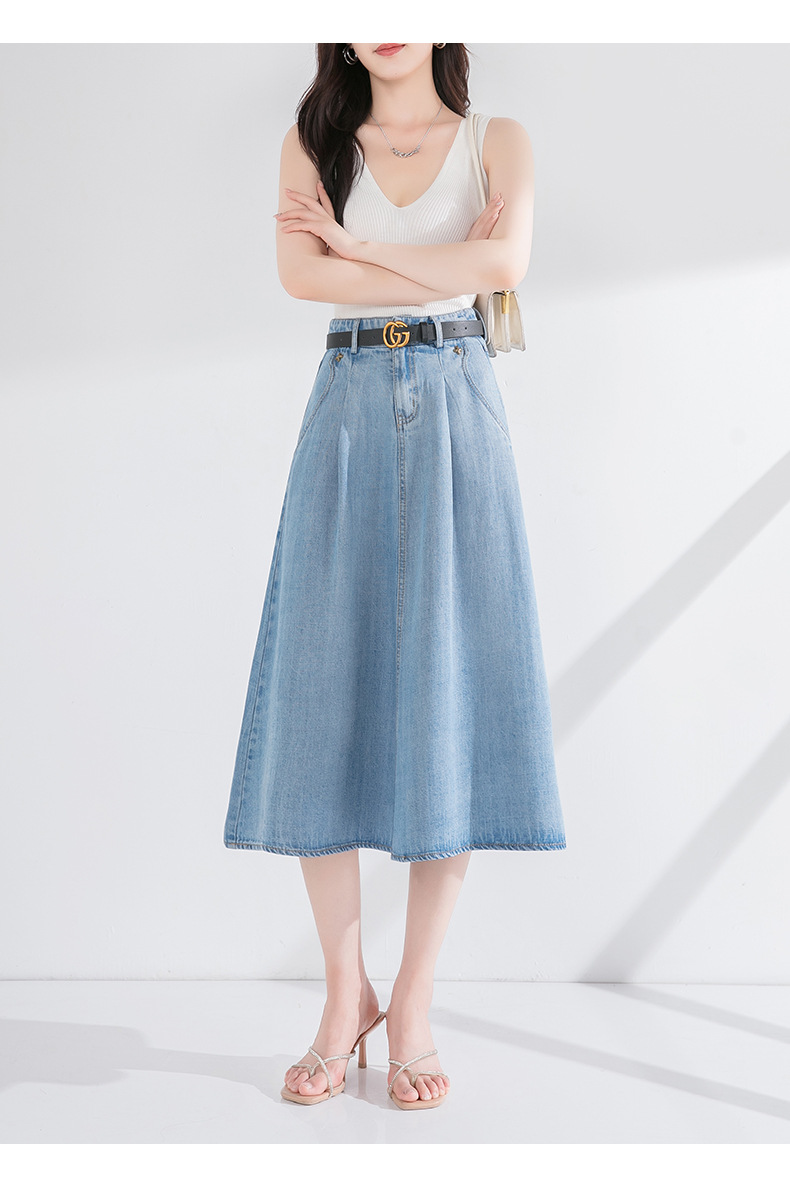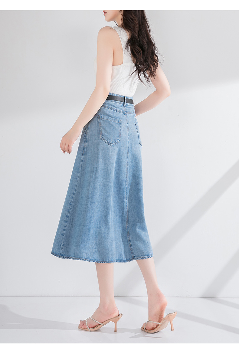 丁摩 天丝牛仔半身裙女式高腰遮胯显瘦大摆中长款伞裙(不含腰带)2615
