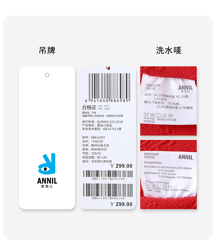 【实体店同款】男童翻领长袖卫衣春季新款安奈儿童装XB611007