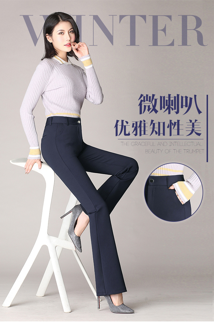 YH-772332新款大码微喇叭直筒高腰长裤西裤TZW
