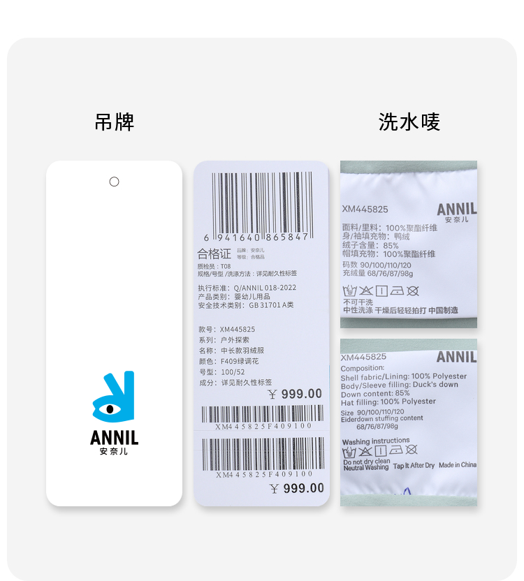 【御寒-5~5℃】男女童萌趣绣花羽绒外套冬季新款安奈儿童装实体店同款XM445825