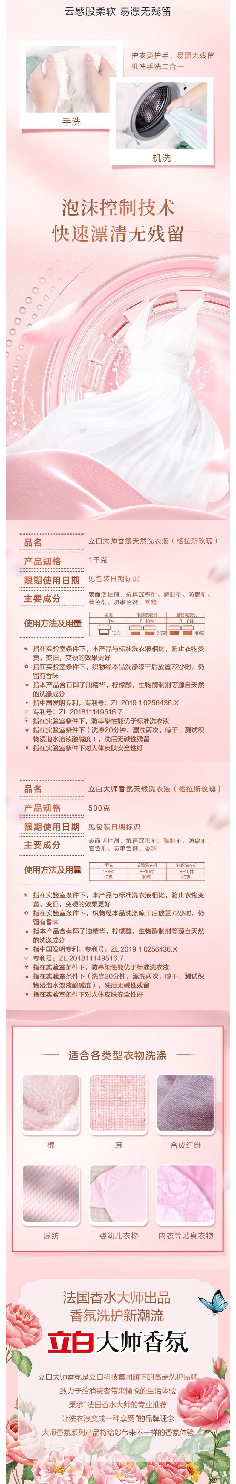 立白 大师香氛格拉斯玫瑰洗衣液1kg*2瓶+500g*2袋 BS2PM2TJ