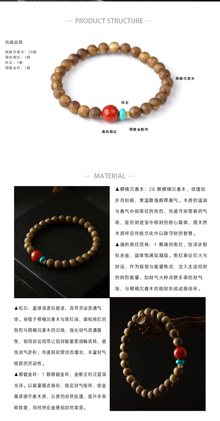 一念七宝 招财进宝 | 棋楠沉香木南红松石手串