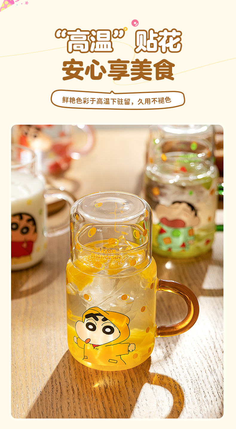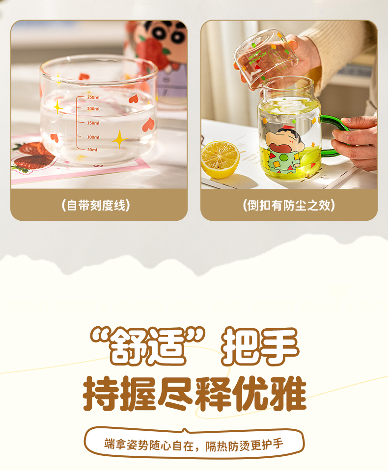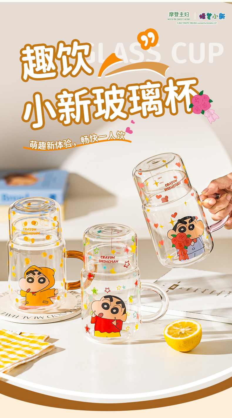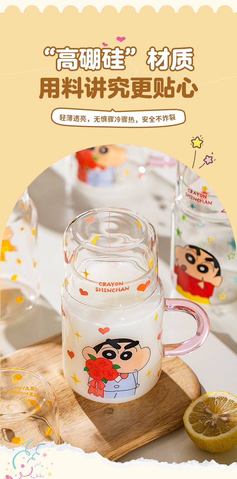 摩登主妇&蜡笔小新 高硼硅玻璃水杯女家用带把手2024新款杯子