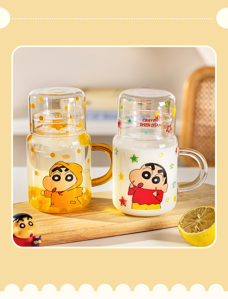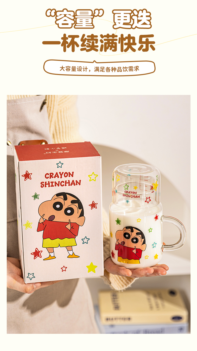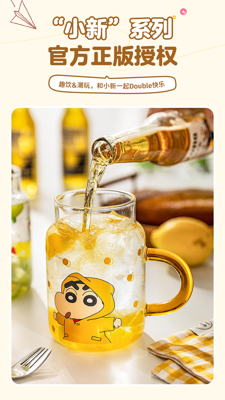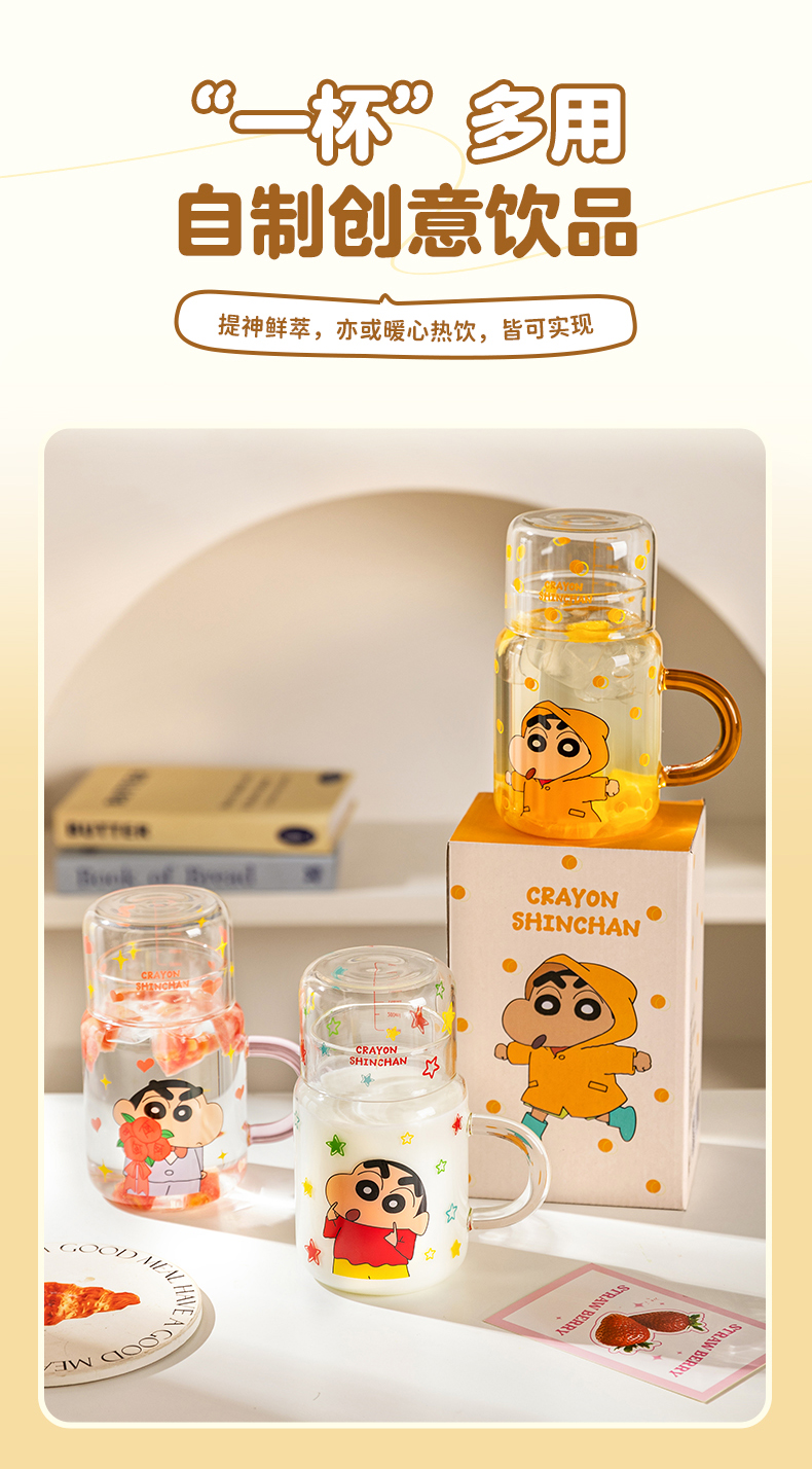 摩登主妇&蜡笔小新 高硼硅玻璃水杯女家用带把手2024新款杯子