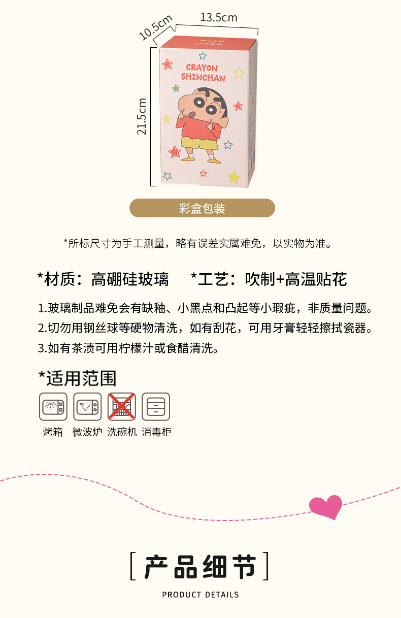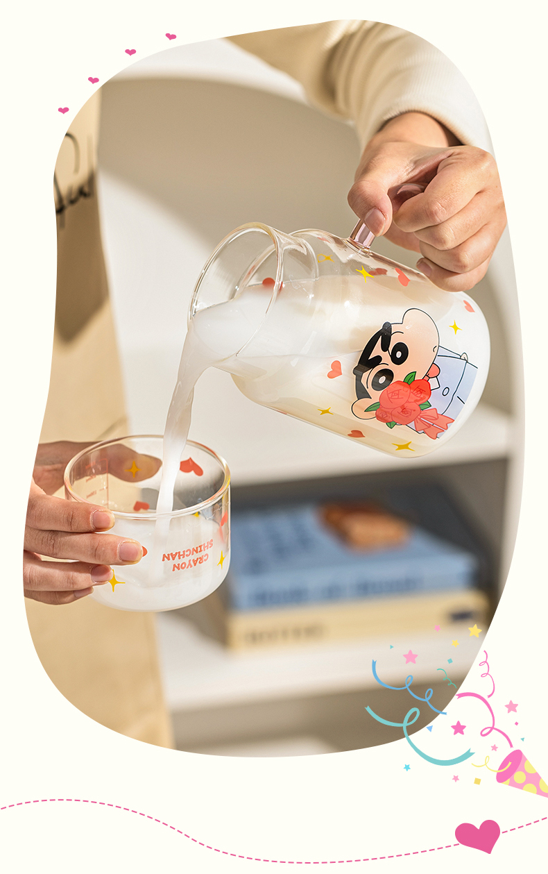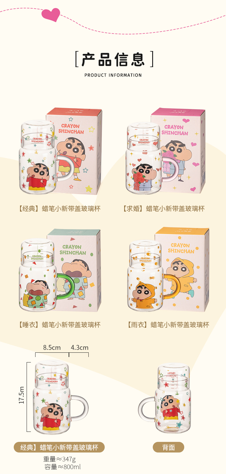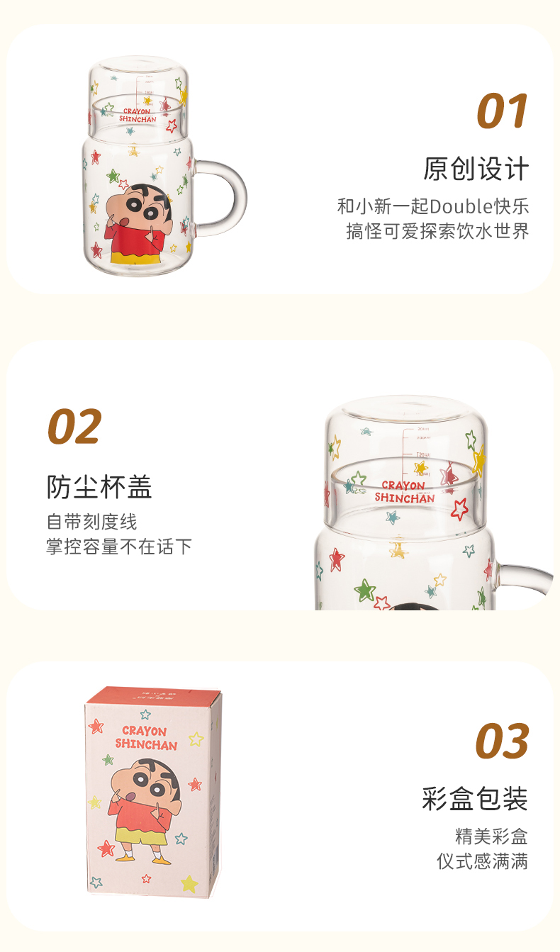摩登主妇&蜡笔小新 高硼硅玻璃水杯女家用带把手2024新款杯子