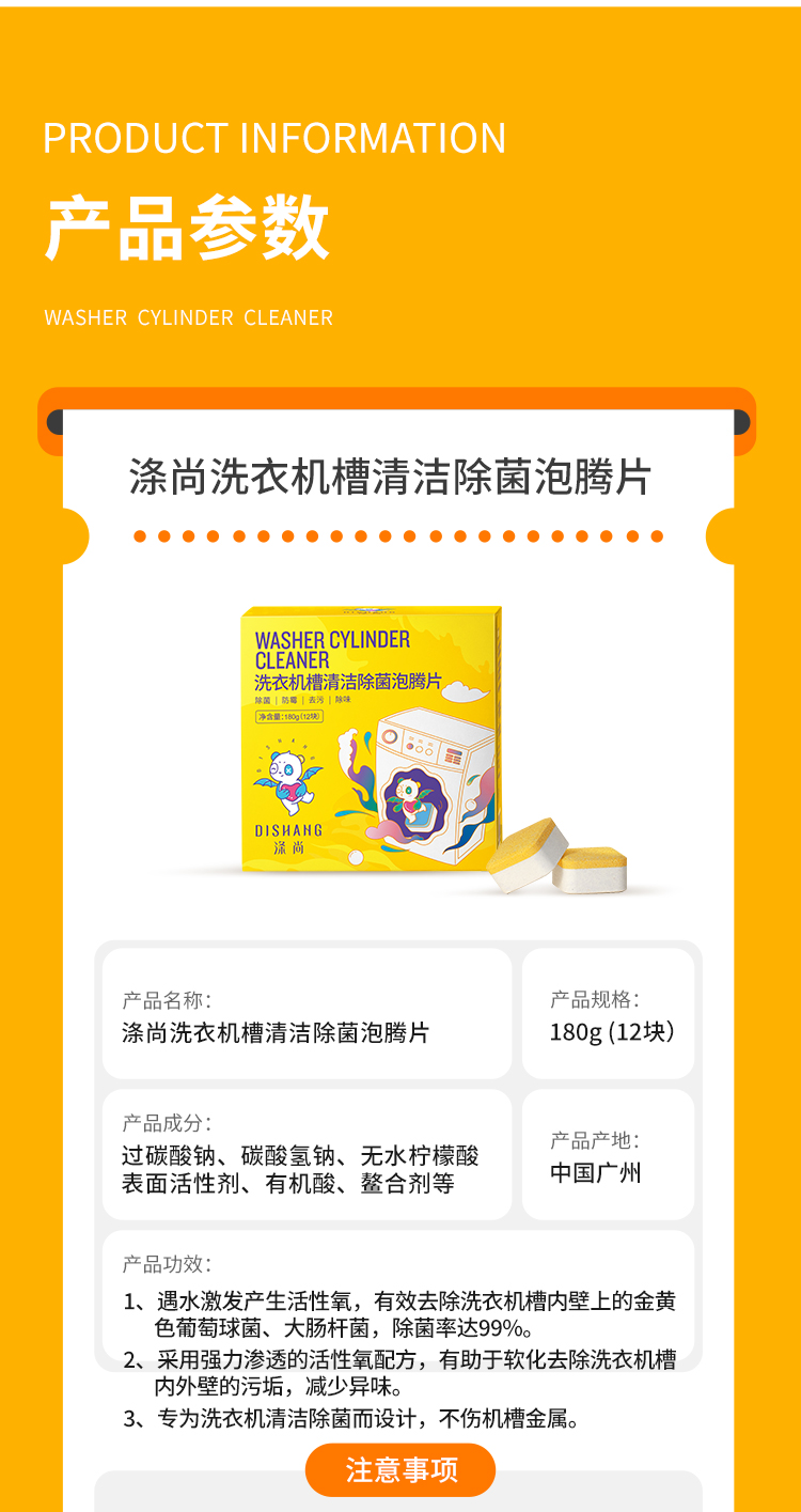 涤尚洗衣机槽清洁泡腾片12块/盒*3盒装
