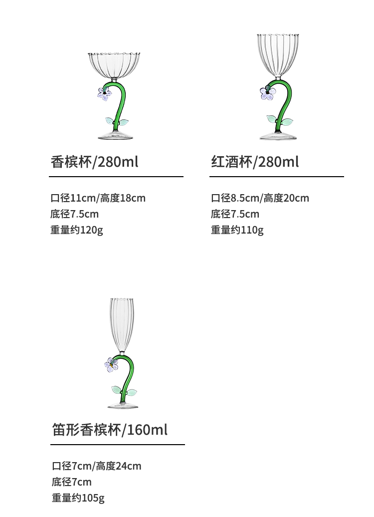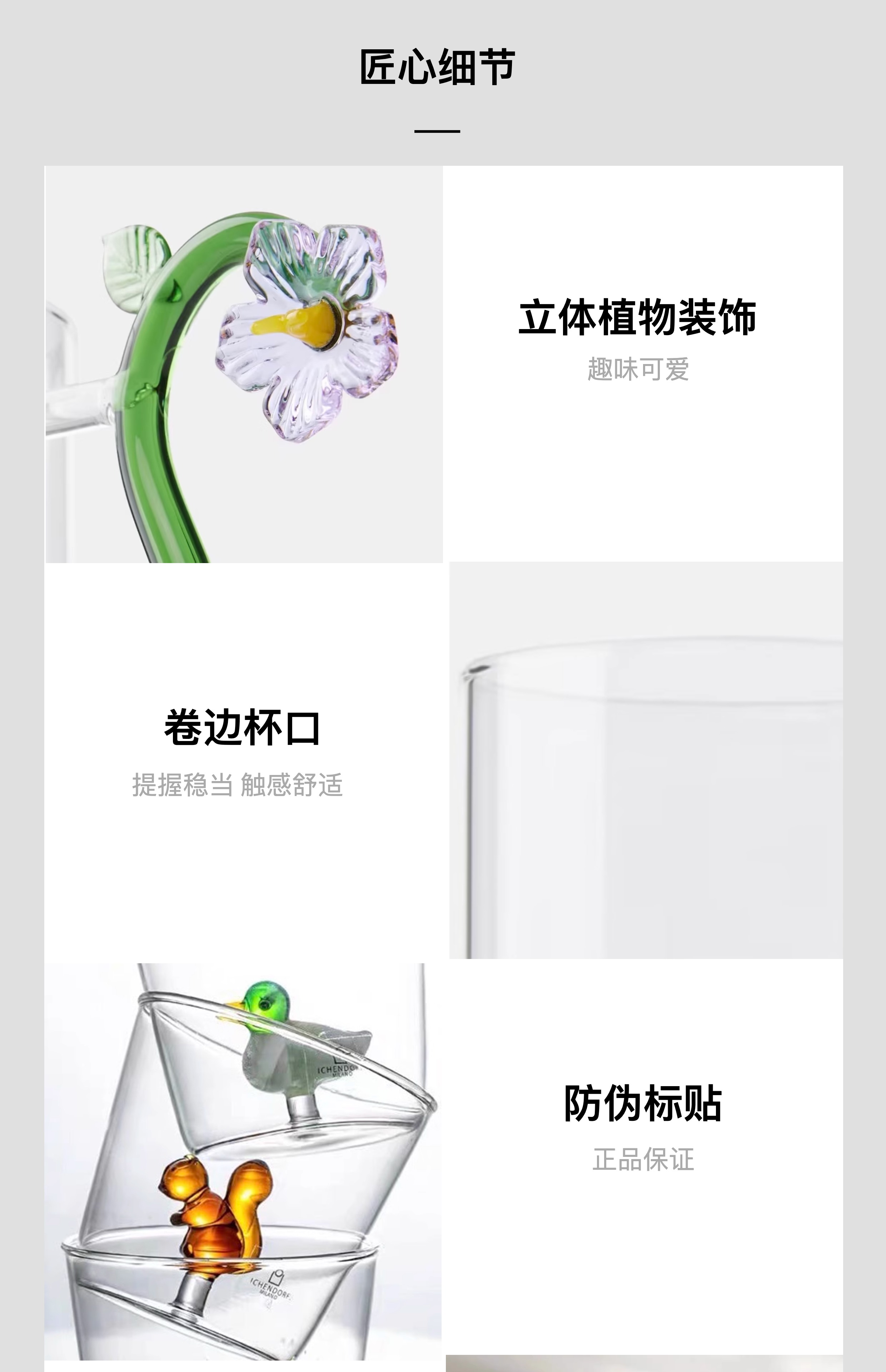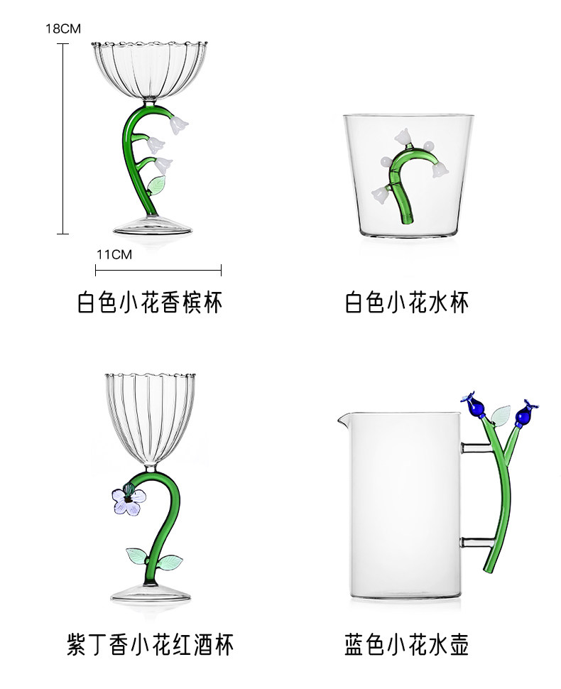 ichendorf 植物园系列意大利进口手工可爱立体花型耐热玻璃水杯