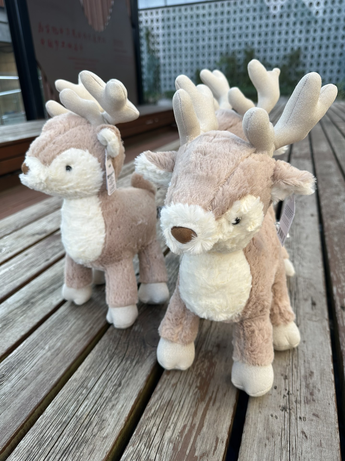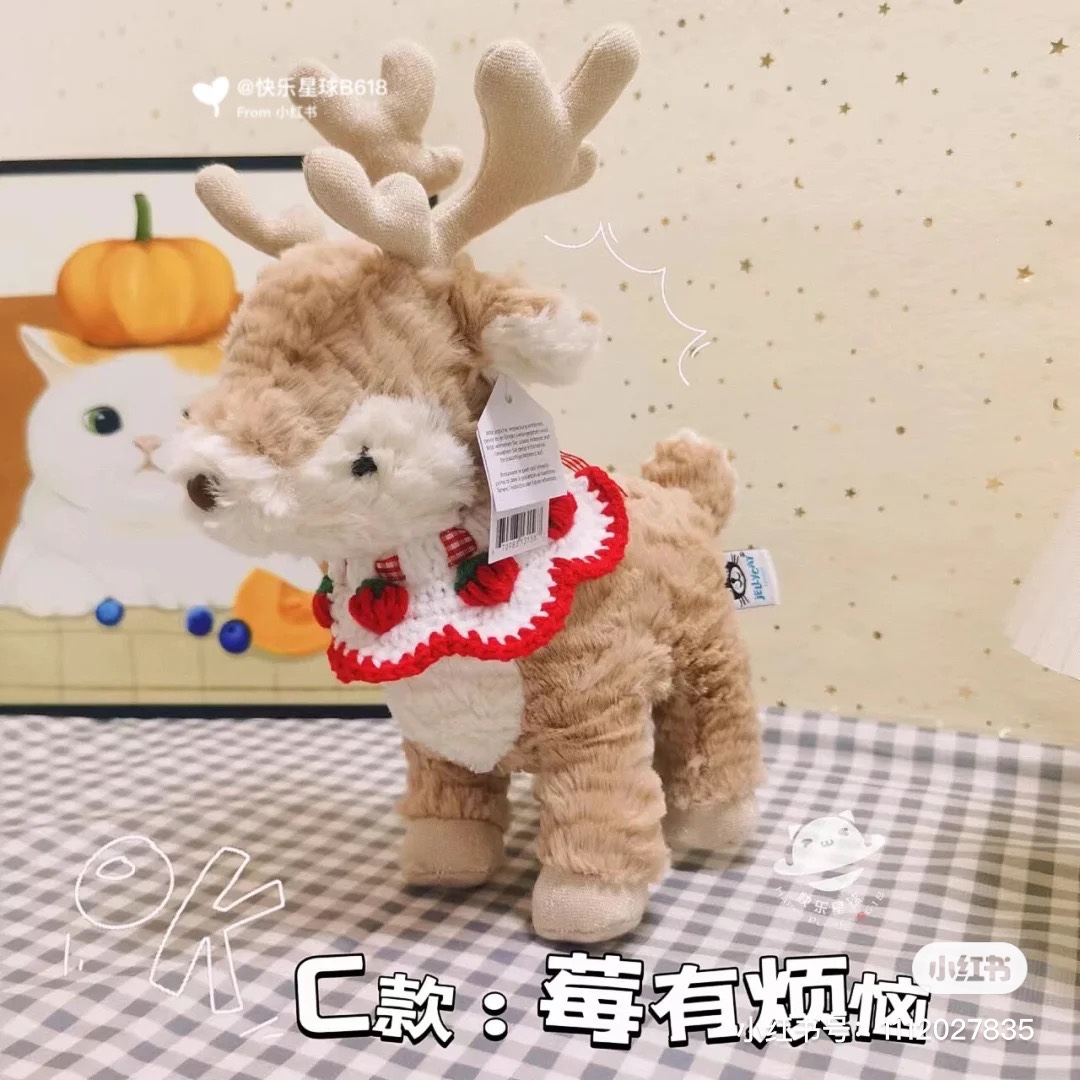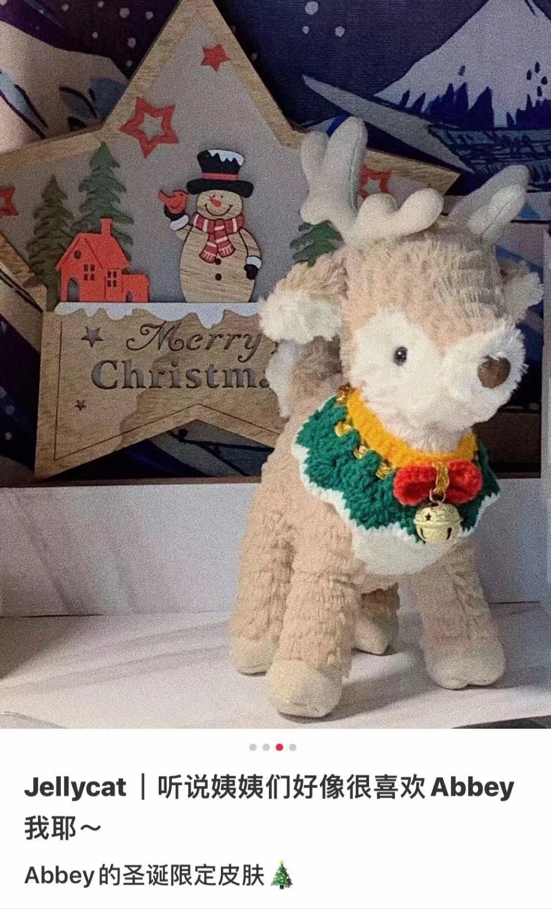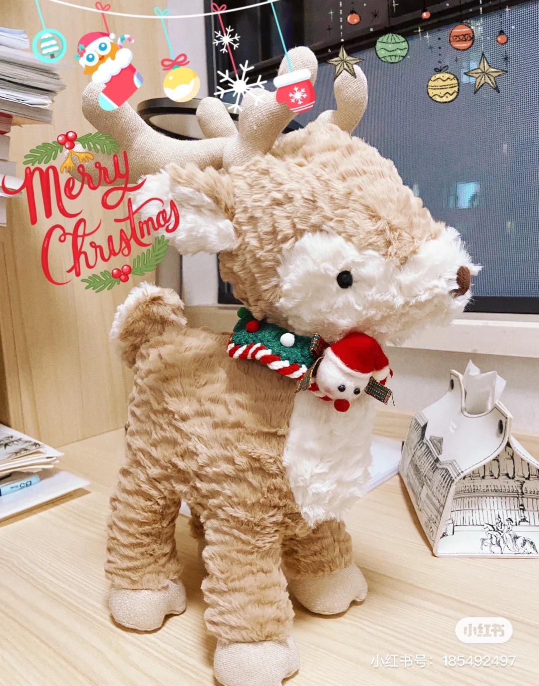 JC代工zheng品‼️天猫499 麋鹿真的是每年jelly*cat的爆款🔥太可爱了🤩,必须拥有,圣诞氛围满满!官网价格¥499~!他家的小鹿真的是迪士尼在逃小鹿,超级可爱!可以站的小驯鹿 腿部有颗粒填充,软而有型,当摆件也超萌哟~!真的谁错过我都会伤心的!!这么萌!谁会不爱啊😭!眼睛、耳朵、鹿角简直不要太可爱!!! 脚脚填充颗粒~ 捏起来都有颗粒珠子的声音 内里填充物 基本有这种填充物的公仔都不便宜。常买的应该都知道 反正就是很好很好很好 很可爱很可爱的存在!!