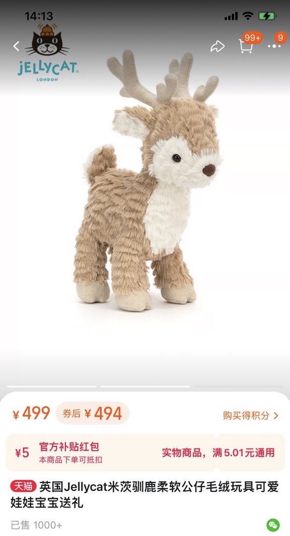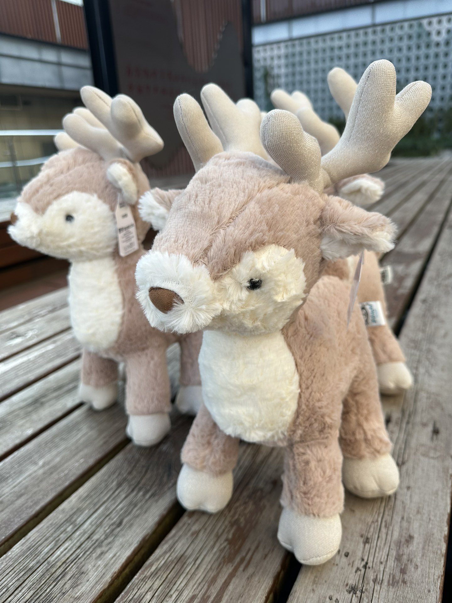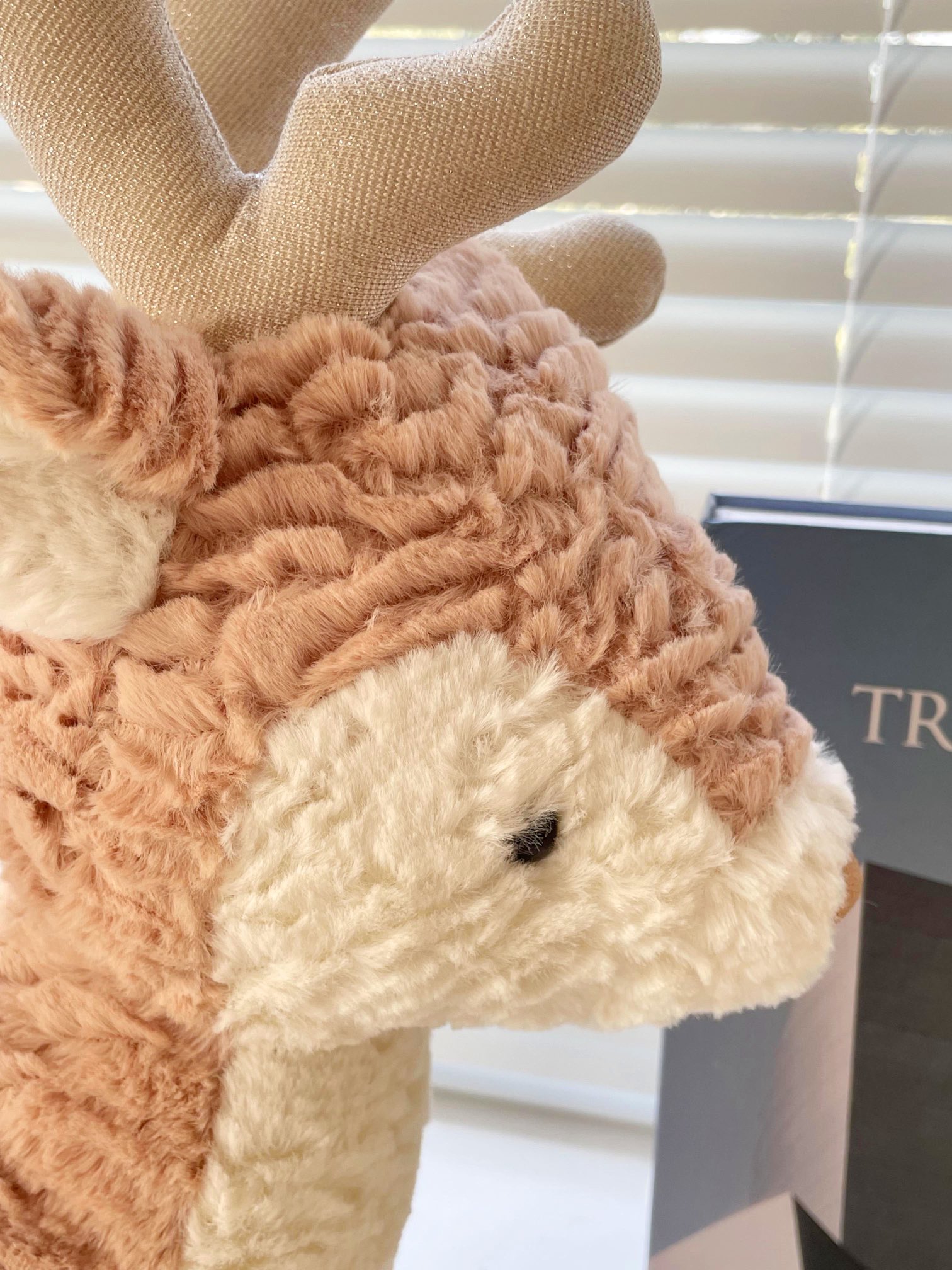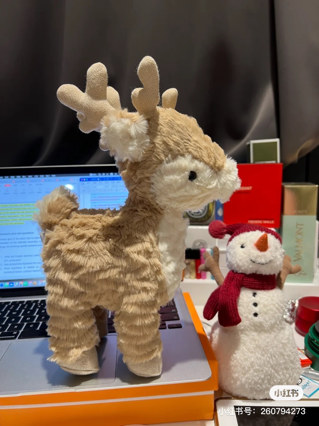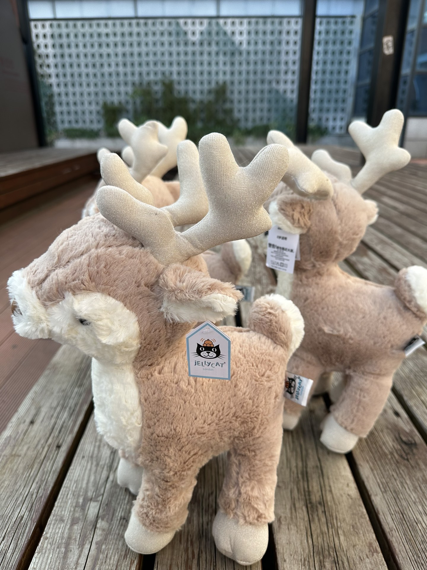JC代工zheng品‼️天猫499 麋鹿真的是每年jelly*cat的爆款🔥太可爱了🤩,必须拥有,圣诞氛围满满!官网价格¥499~!他家的小鹿真的是迪士尼在逃小鹿,超级可爱!可以站的小驯鹿 腿部有颗粒填充,软而有型,当摆件也超萌哟~!真的谁错过我都会伤心的!!这么萌!谁会不爱啊😭!眼睛、耳朵、鹿角简直不要太可爱!!! 脚脚填充颗粒~ 捏起来都有颗粒珠子的声音 内里填充物 基本有这种填充物的公仔都不便宜。常买的应该都知道 反正就是很好很好很好 很可爱很可爱的存在!!