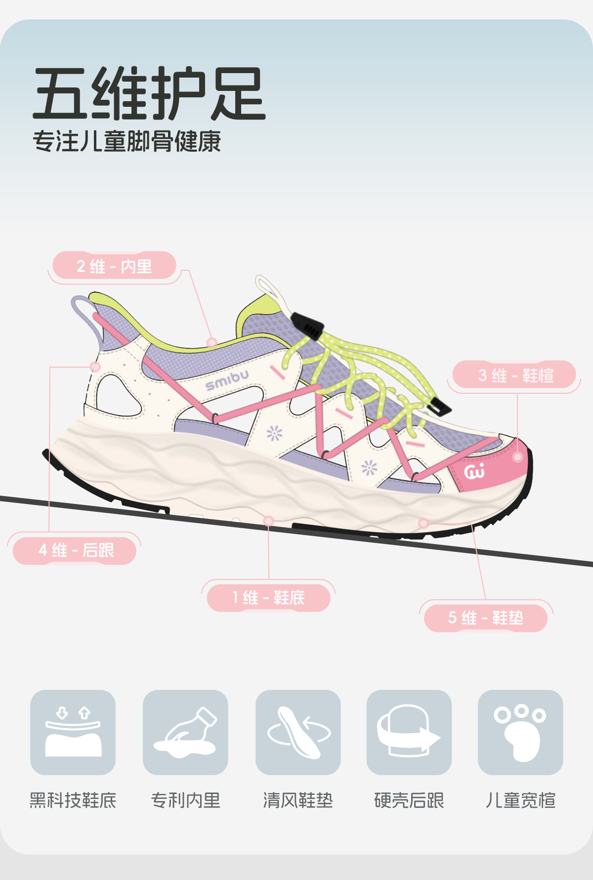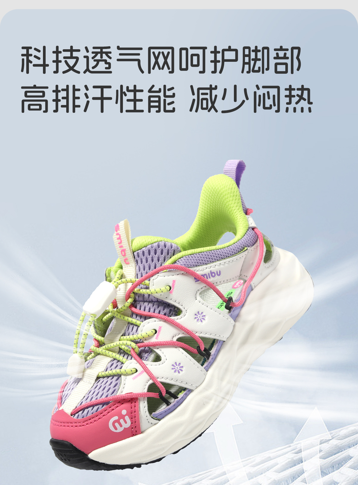 【0压感系列】SMIBU男女中大童网面透气日常运动户外拼色凉鞋Z52FY3402【种草号团购】