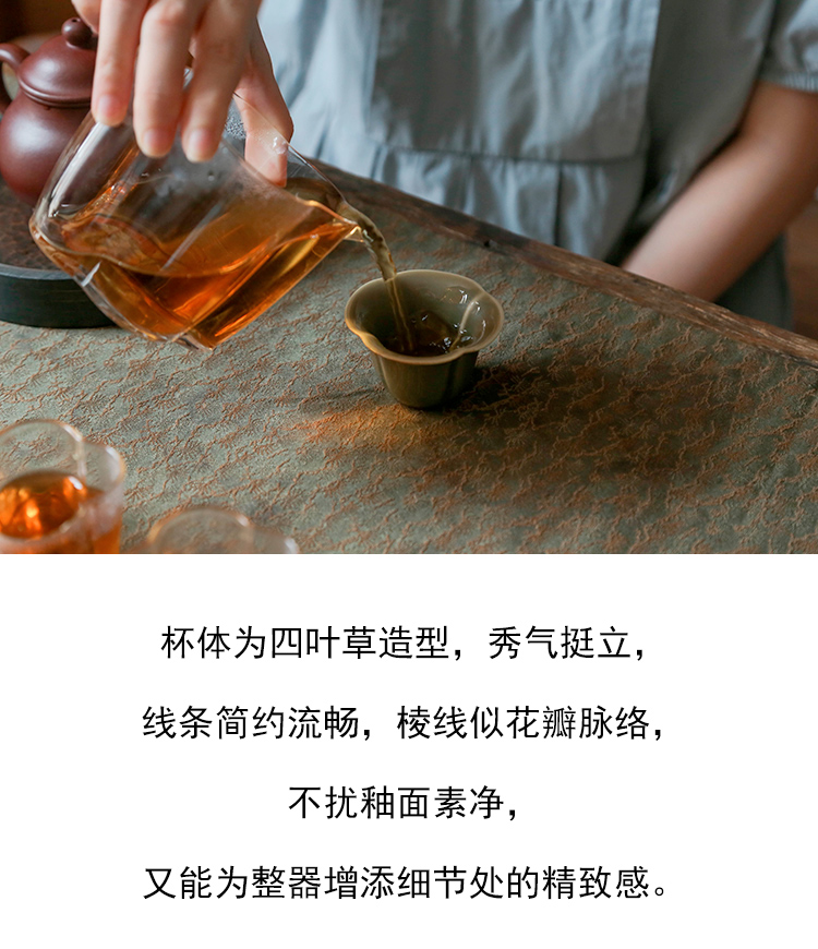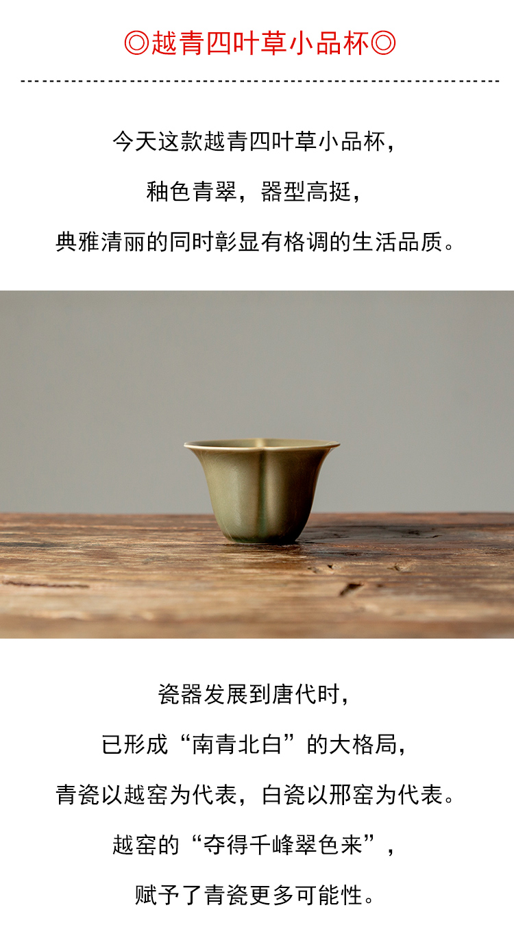 茶香记 越青四叶草小品杯越窑青釉四叶草杯型30ml清秀雅致茶杯