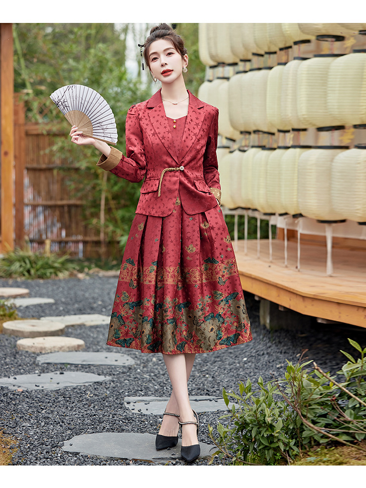 QYMTB-FD0071-Y时尚国风马面裙小西装套装 商品图1