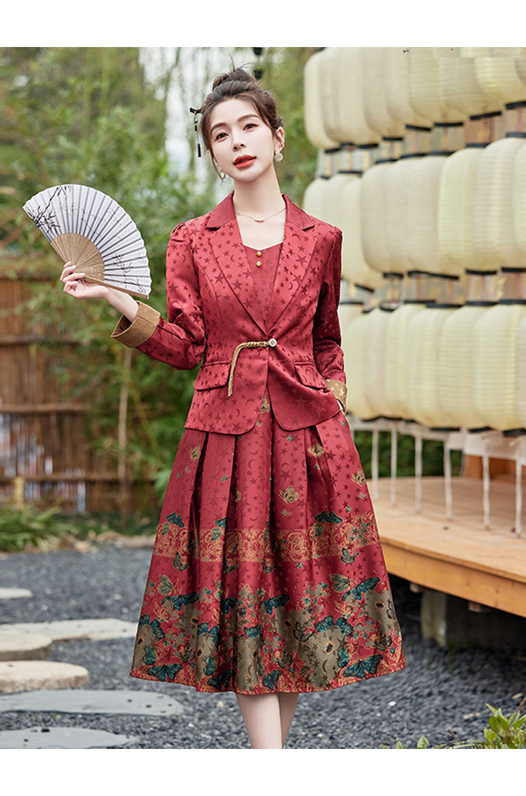 QYMTB-FD0071-Y时尚国风马面裙小西装套装 商品图0