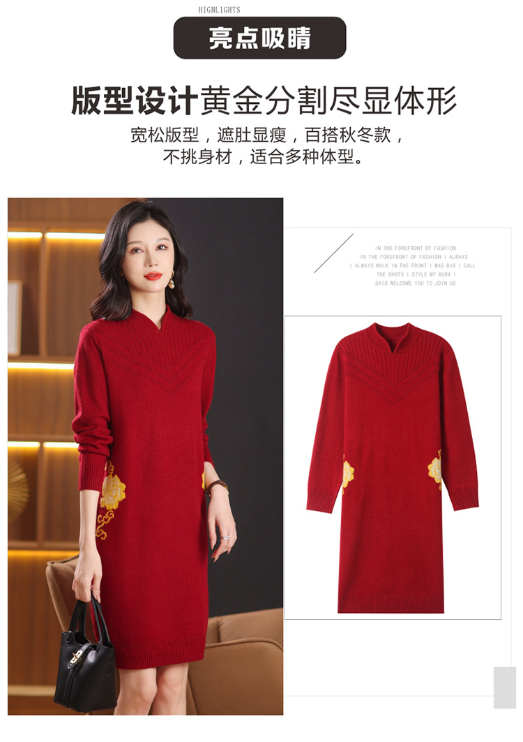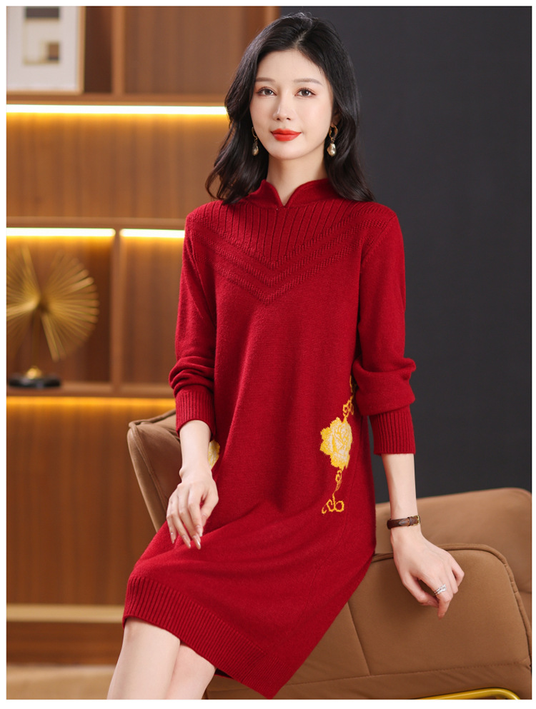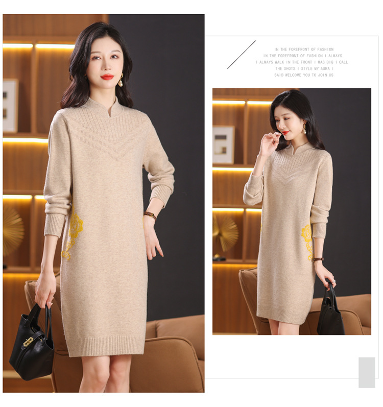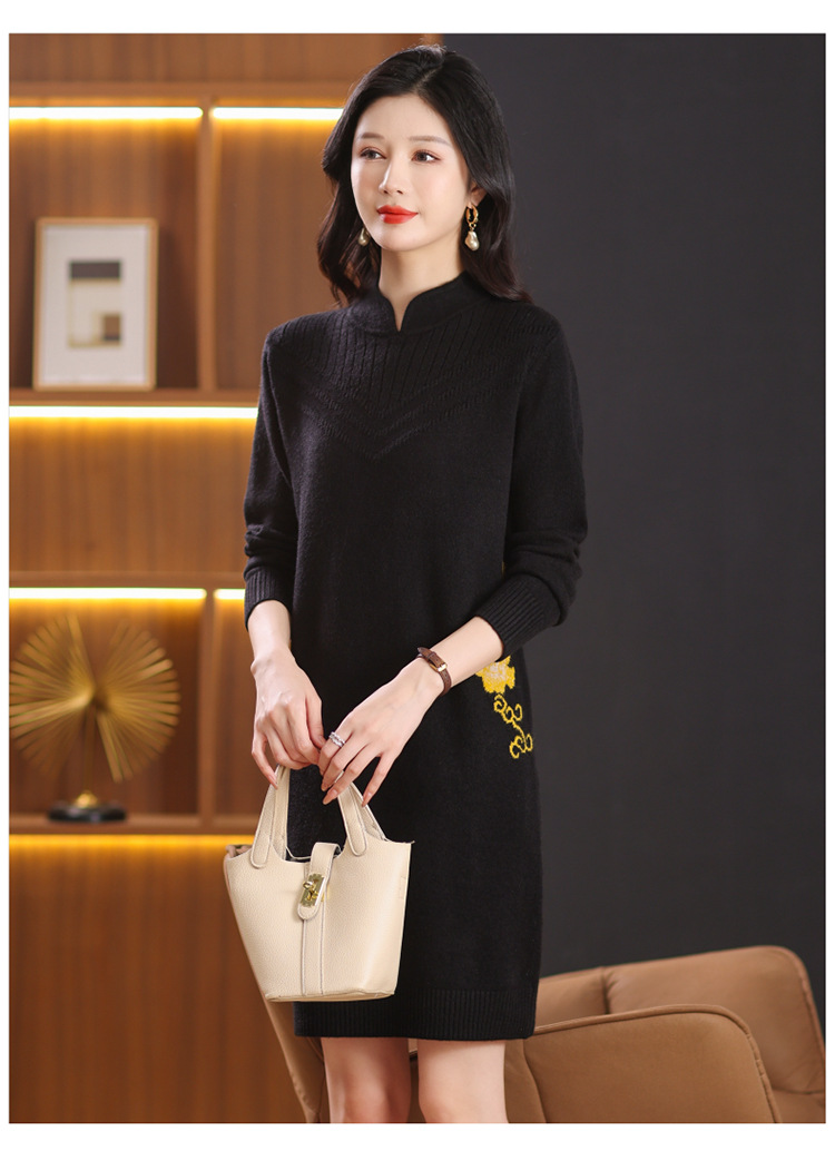 CC-101-68229中式国风针织打底衫毛衣2024冬季新款中长款立领羊毛保暖裙